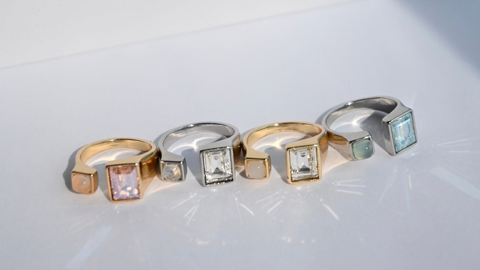 Dual Gem Square Ring <Gold / Moonlit Clear>