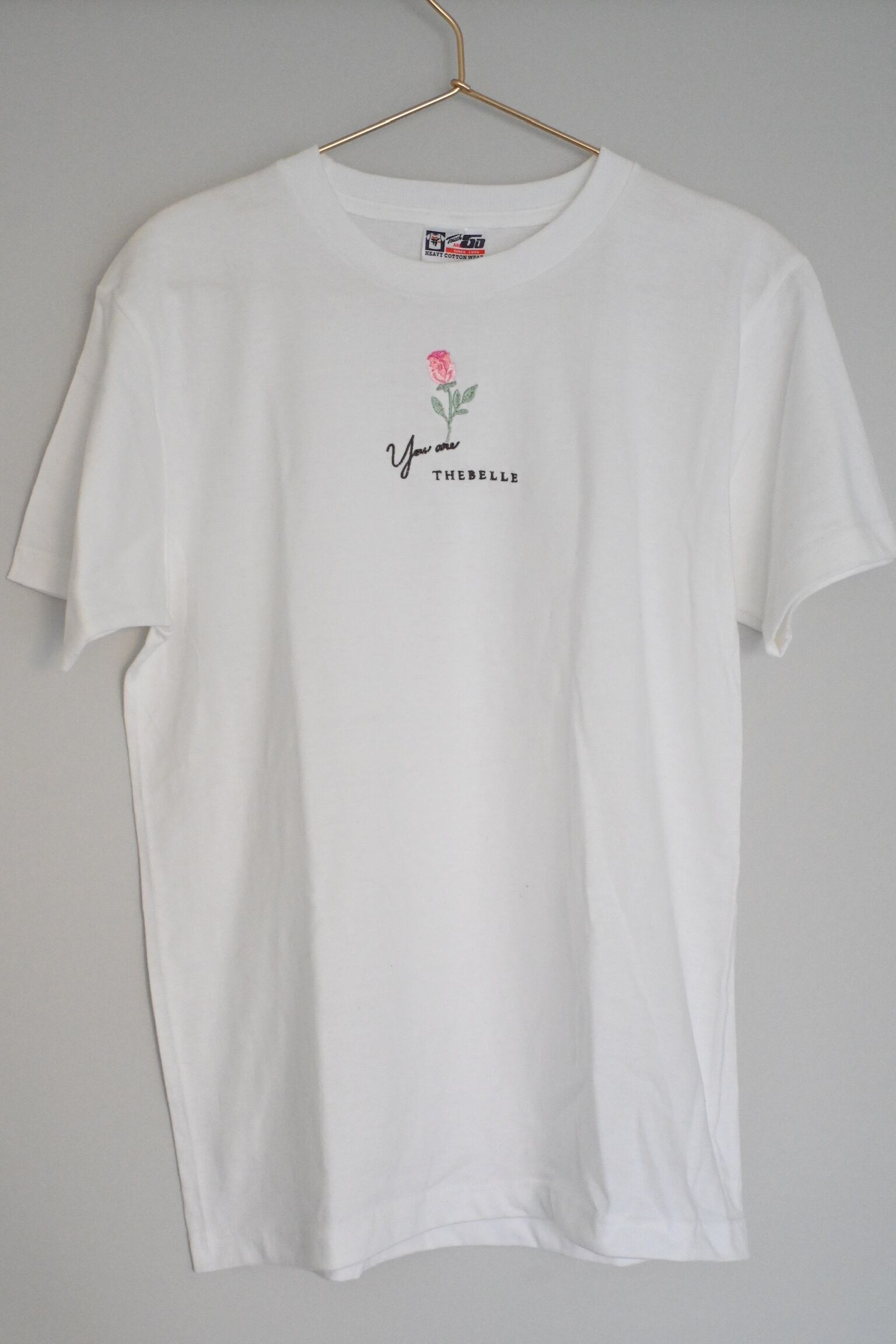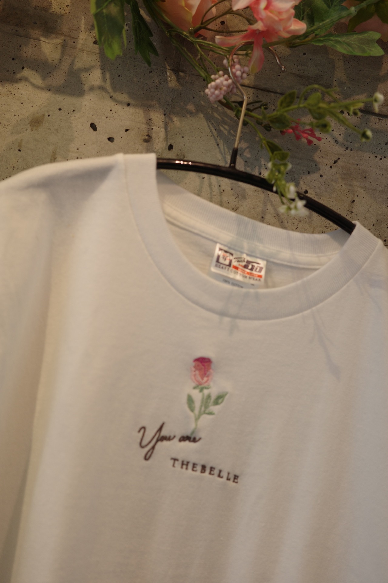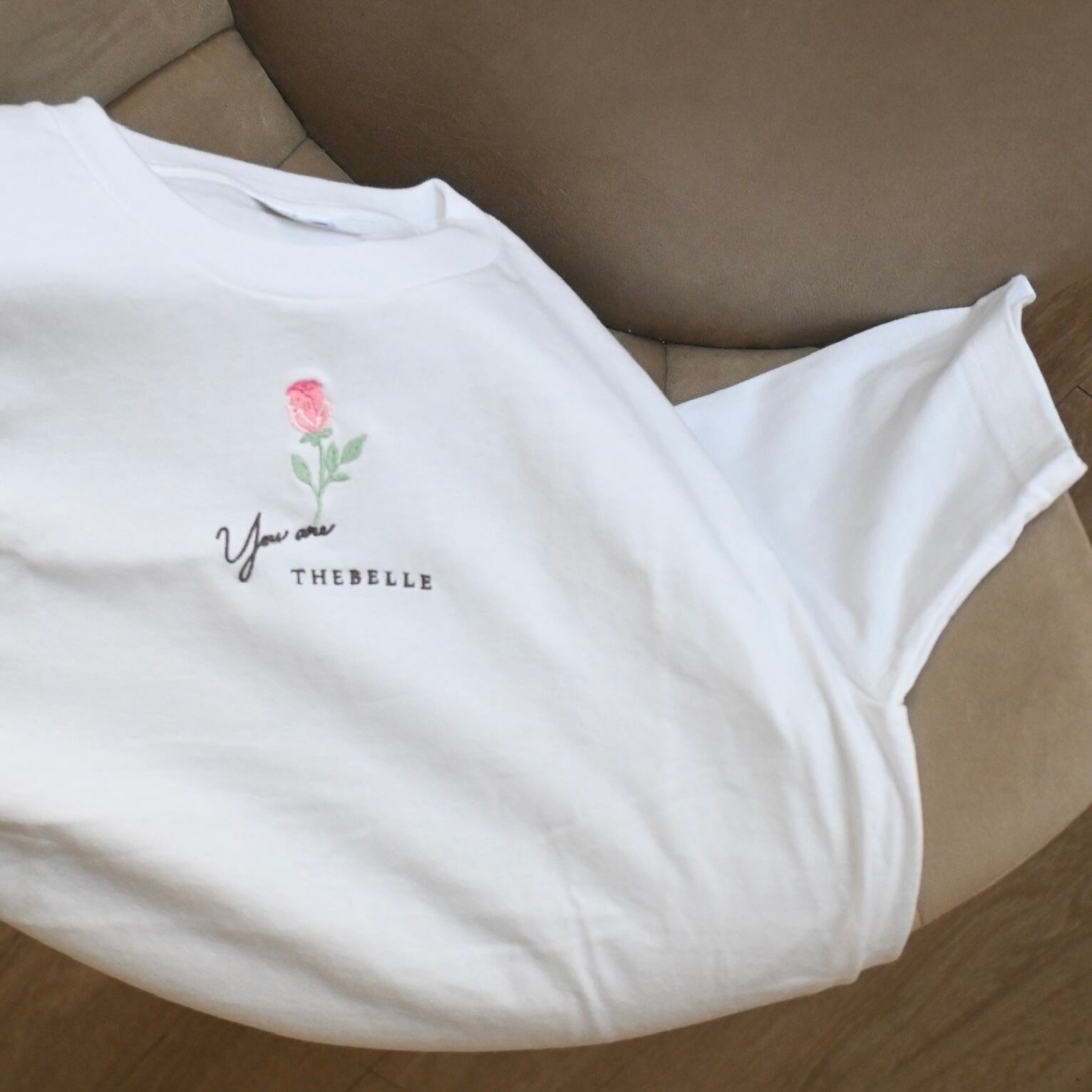 Roseの刺繍が目を惹く、オリジナルデザインのTシャツです。