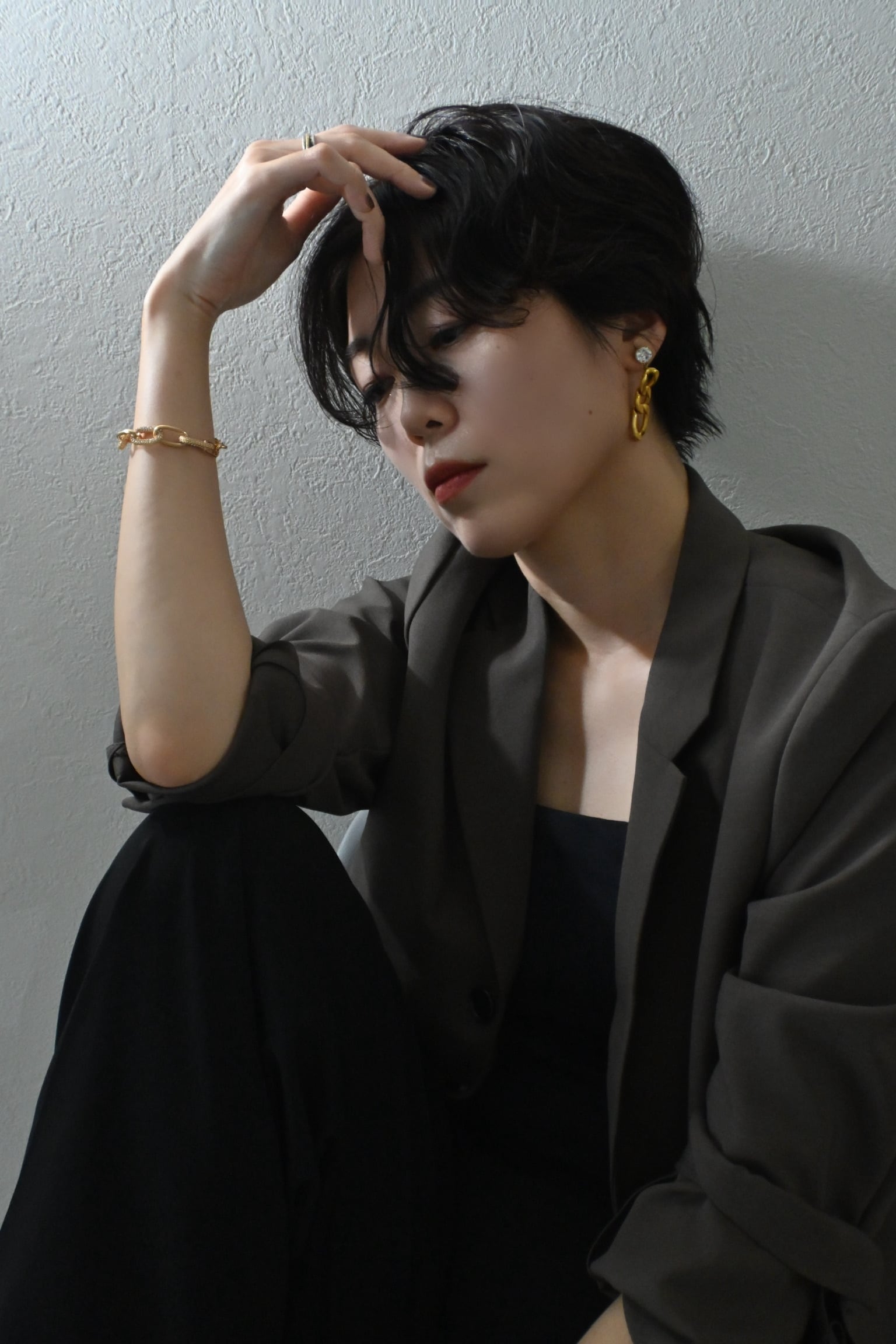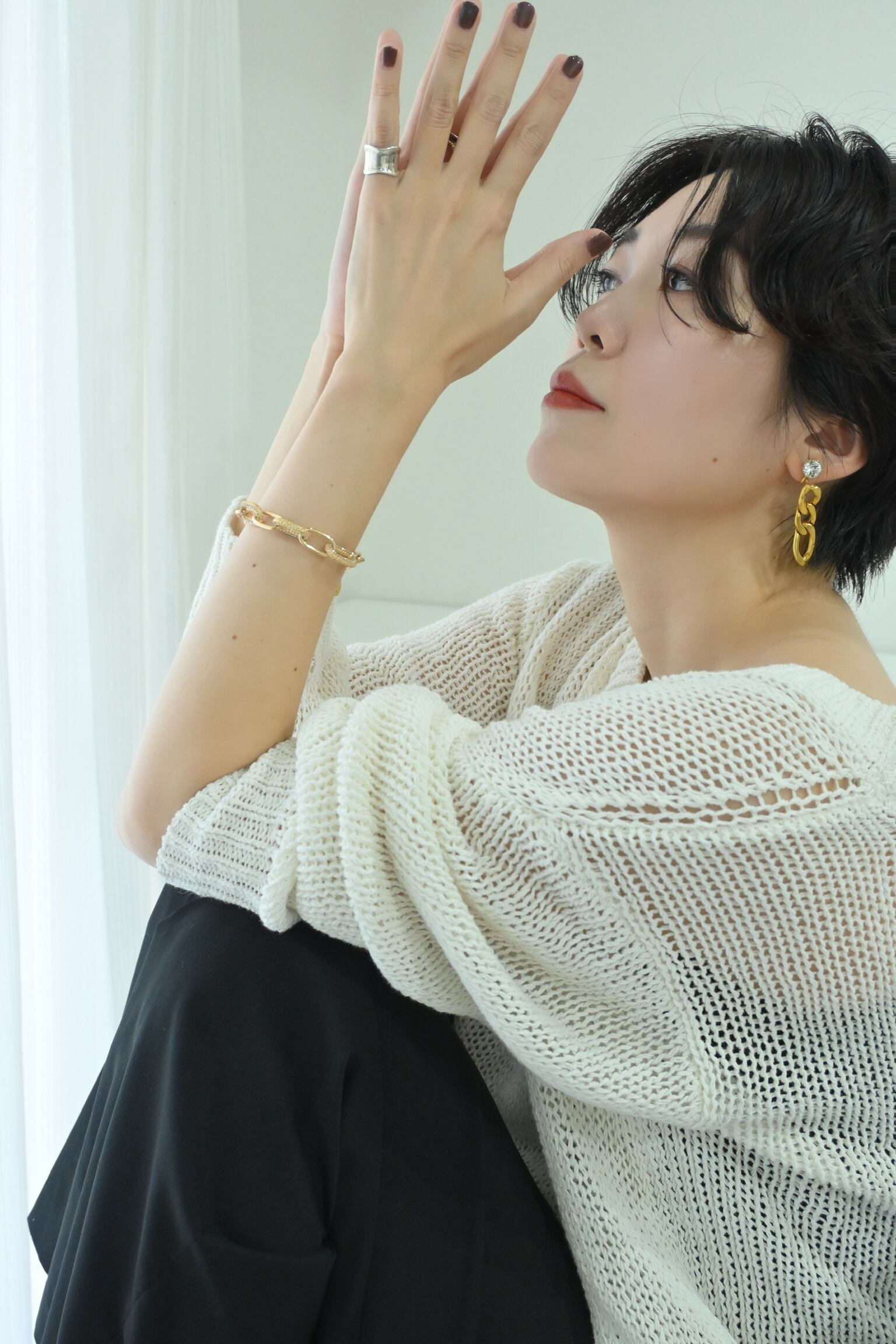 重ね付けにも映える絶妙なボリューム感で、どんなスタイリングにもモードな華やぎをプラスします。