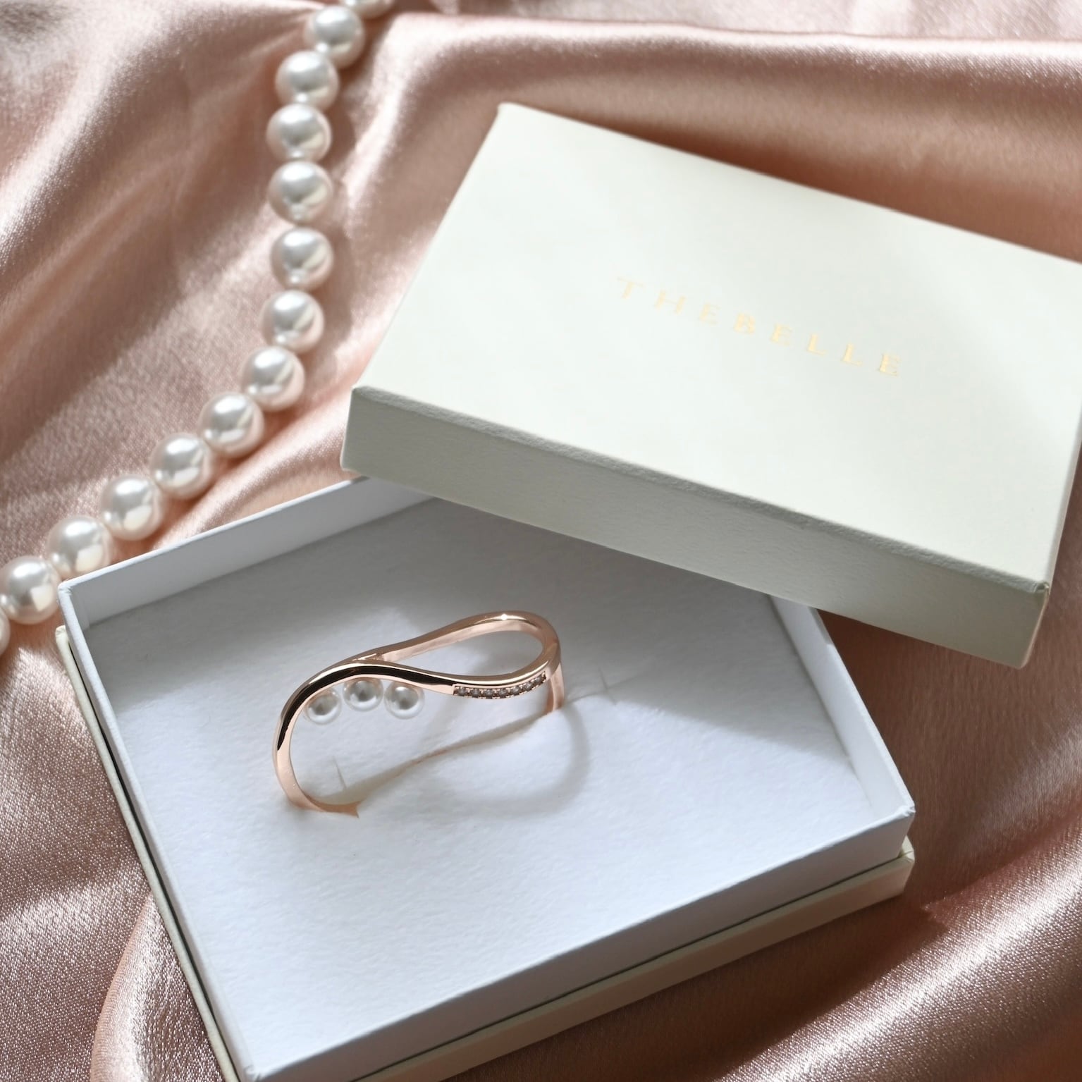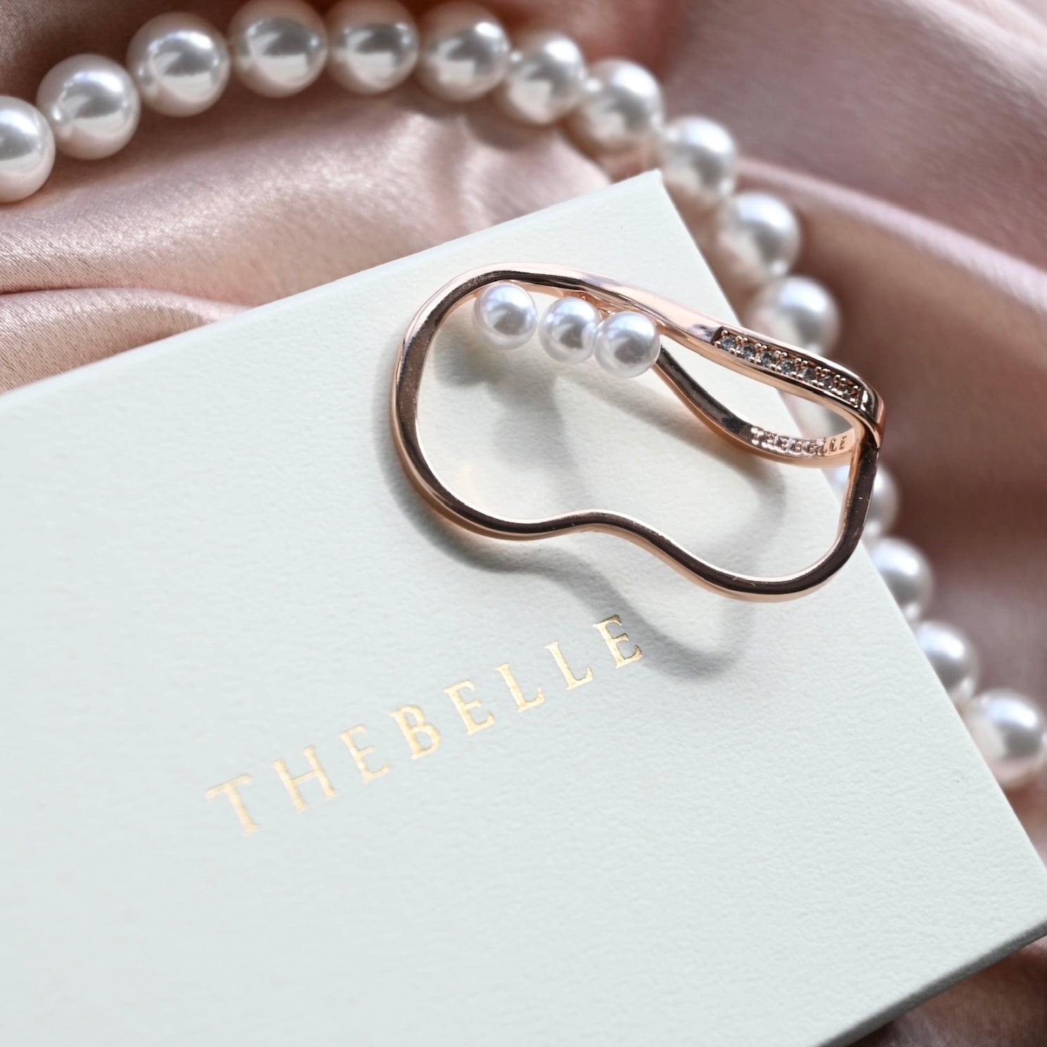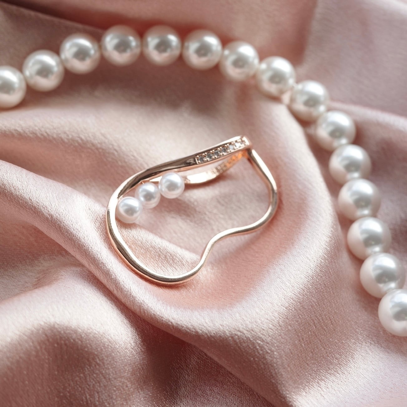 しなやかな曲線に寄り添うように並んだパールが、