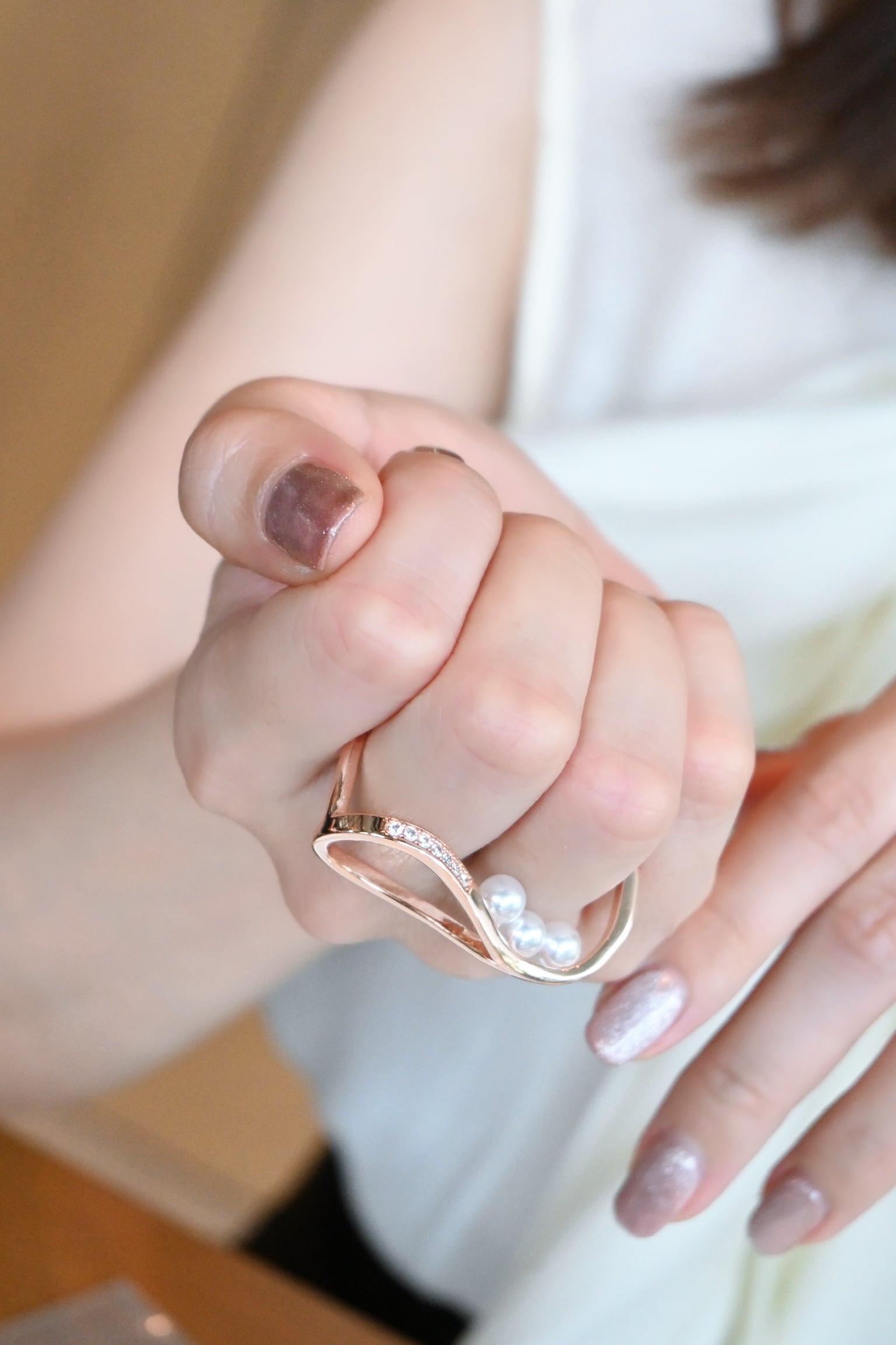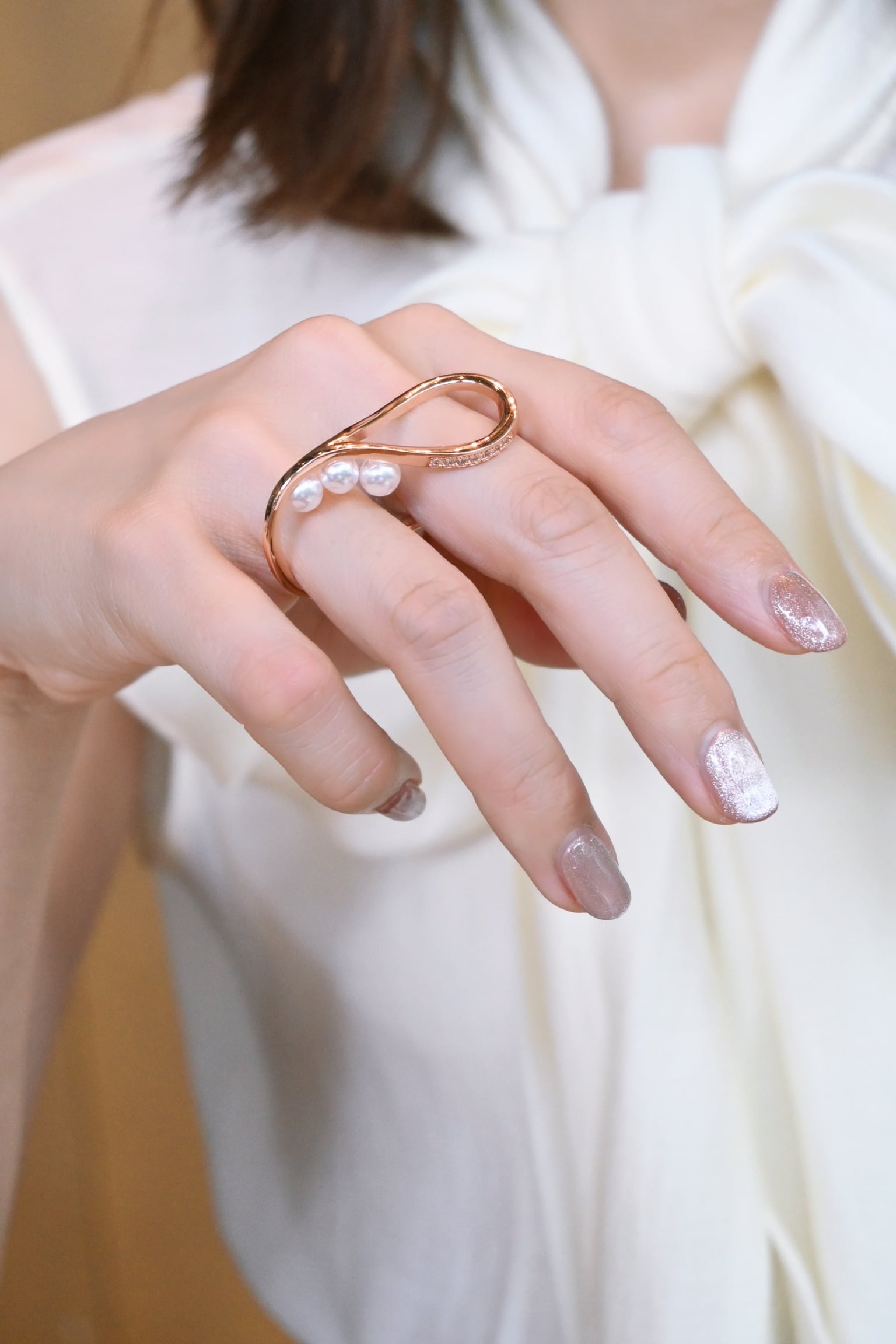 Pearl Embrace Double Finger Ring<Pink Gold>