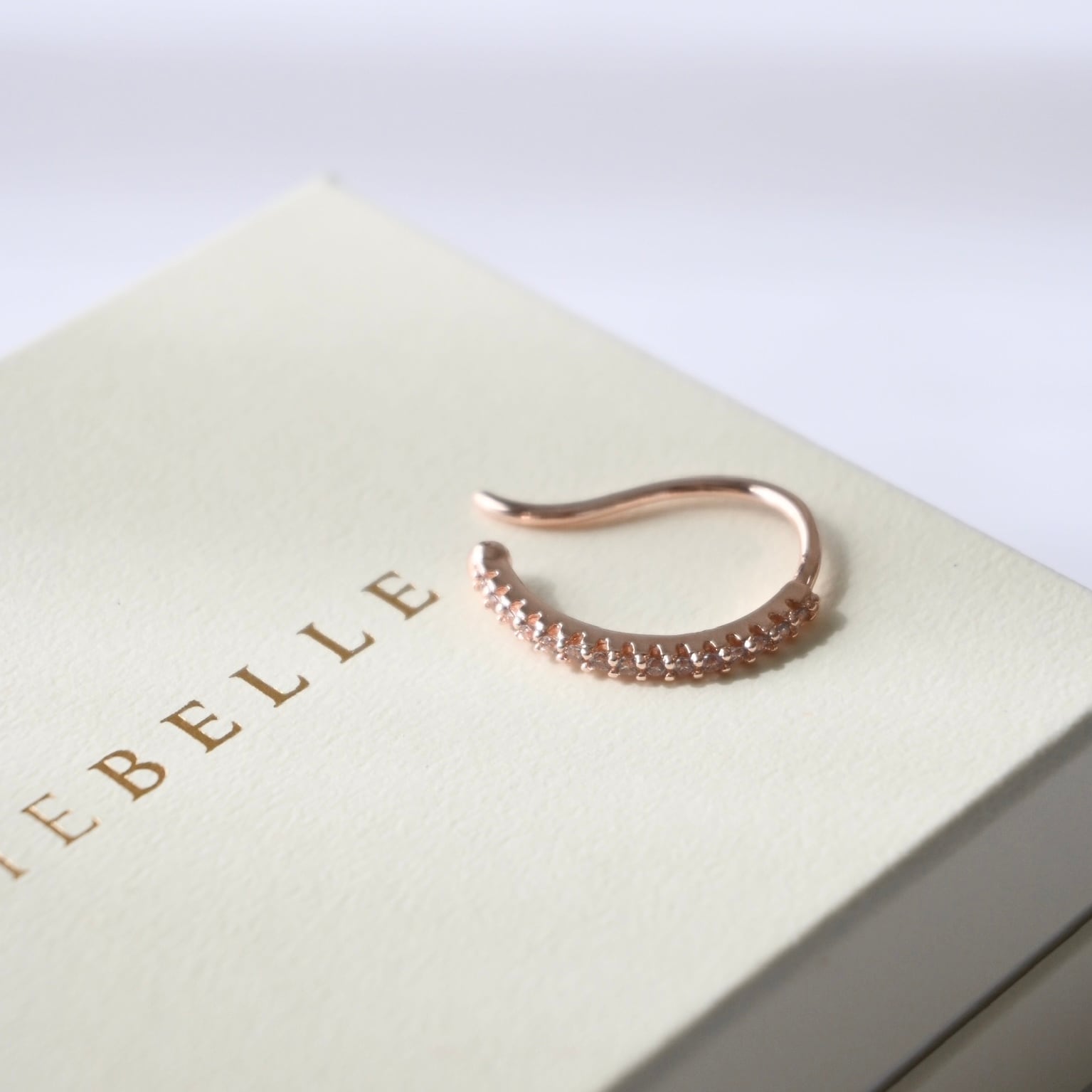 きらめくストーンを繊細に並べた、洗練されたデザインのイヤカフ。
