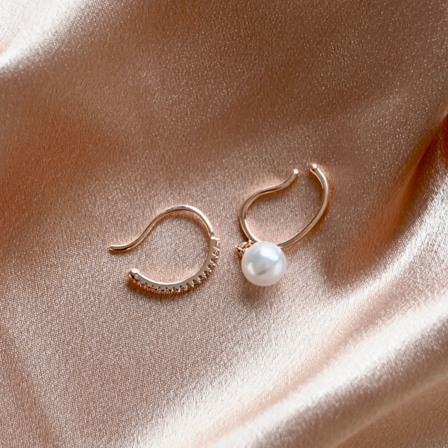 Pearl Drop & Shimmer Line Ear Cuff SET