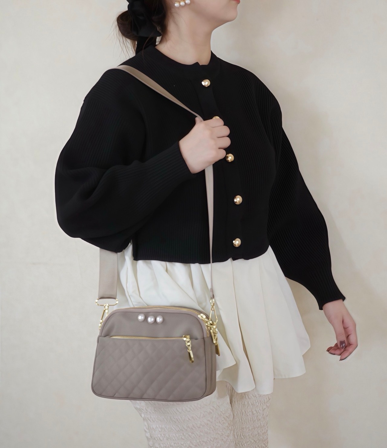 キルティングとパールがポイントで、見た目はエレガントなのに、