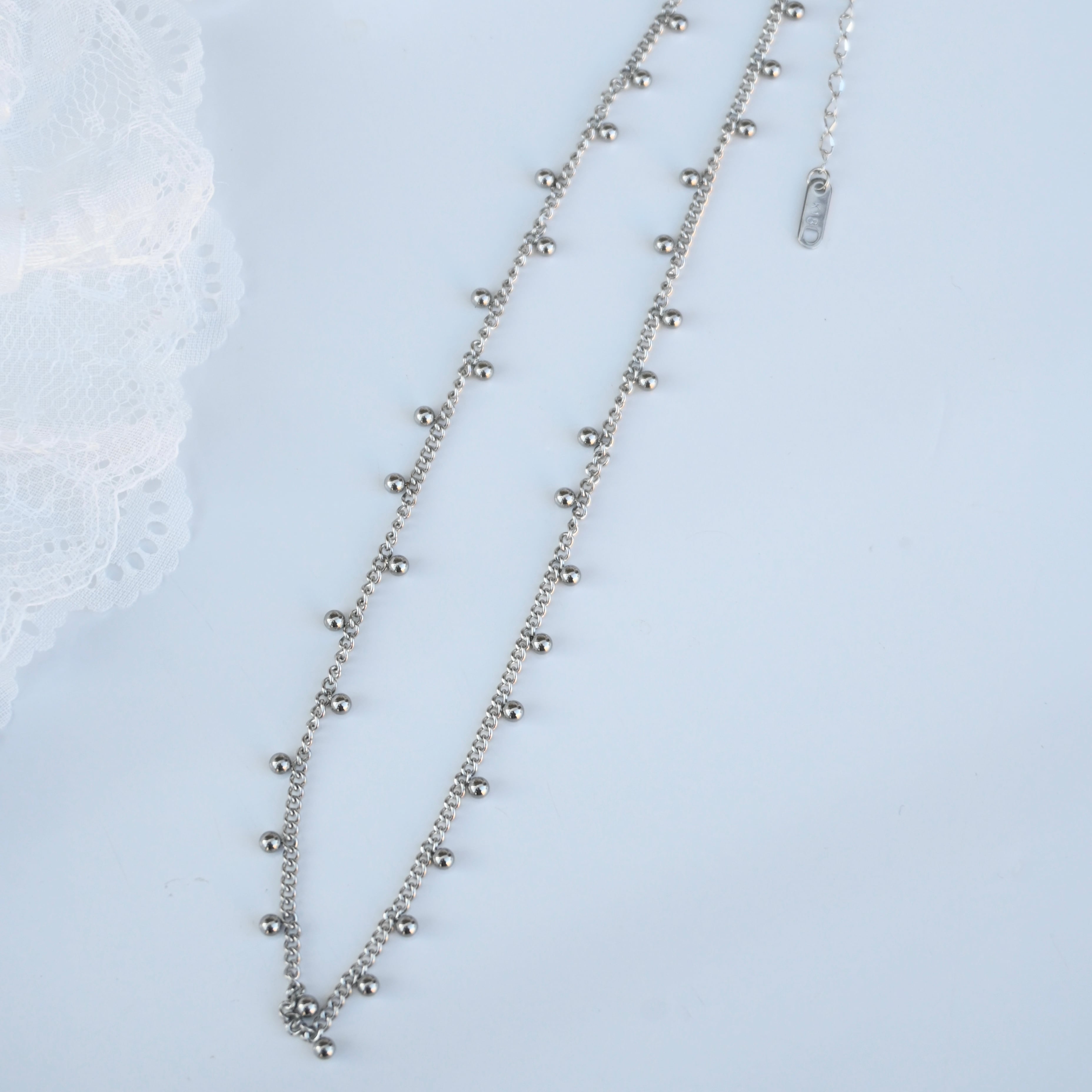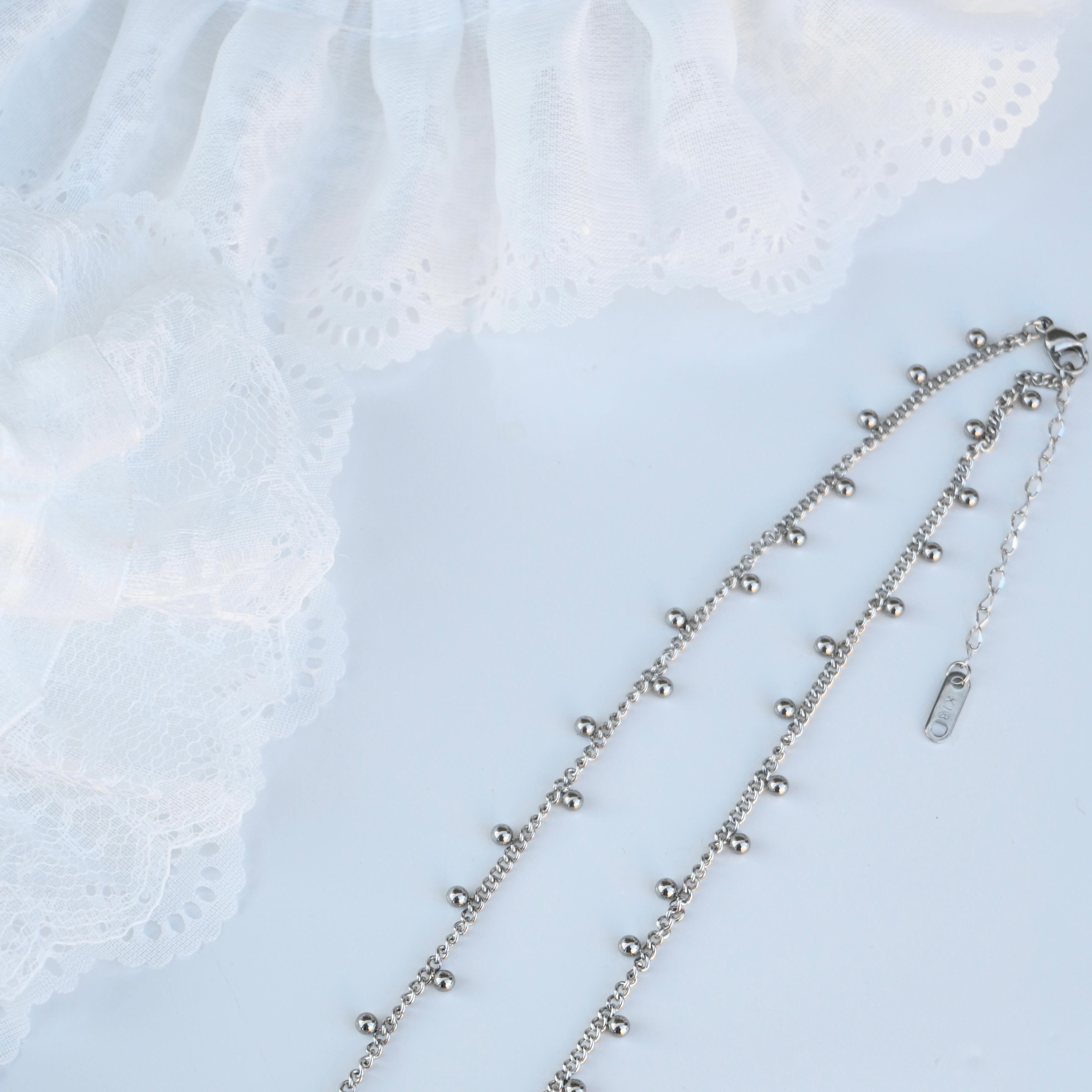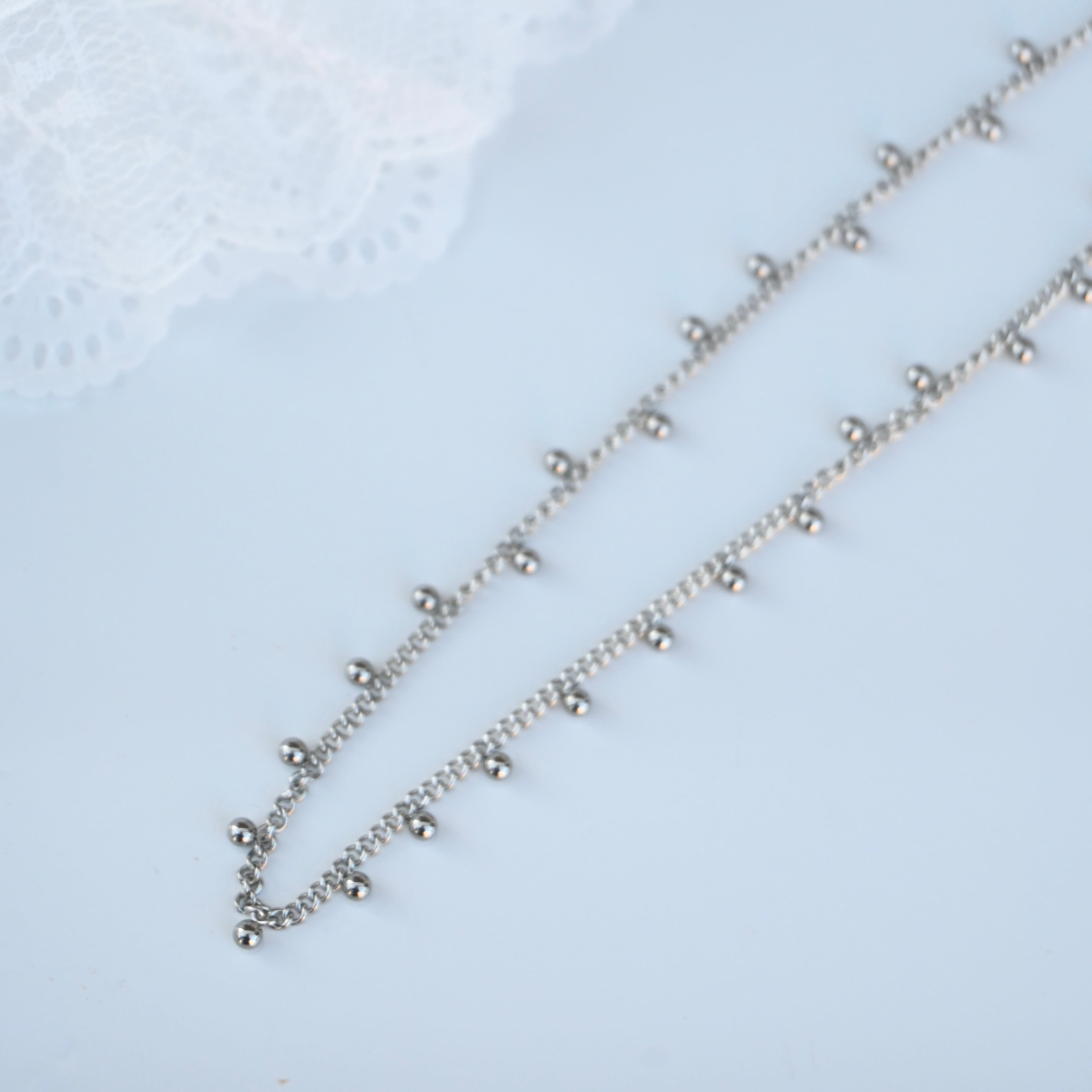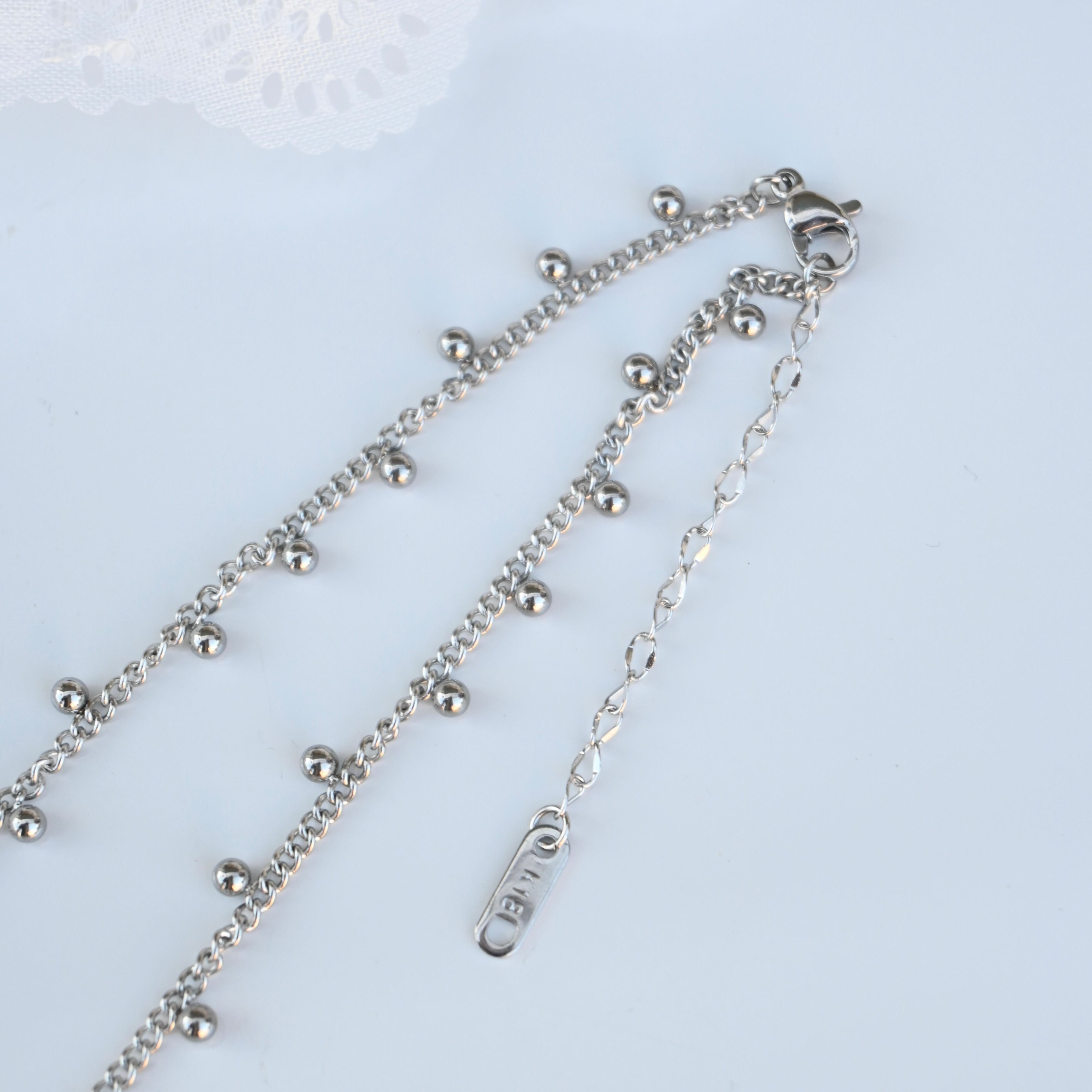 小さな光の粒が、首元に静かに舞い降りるように並んだ繊細なチェーンネックレス。