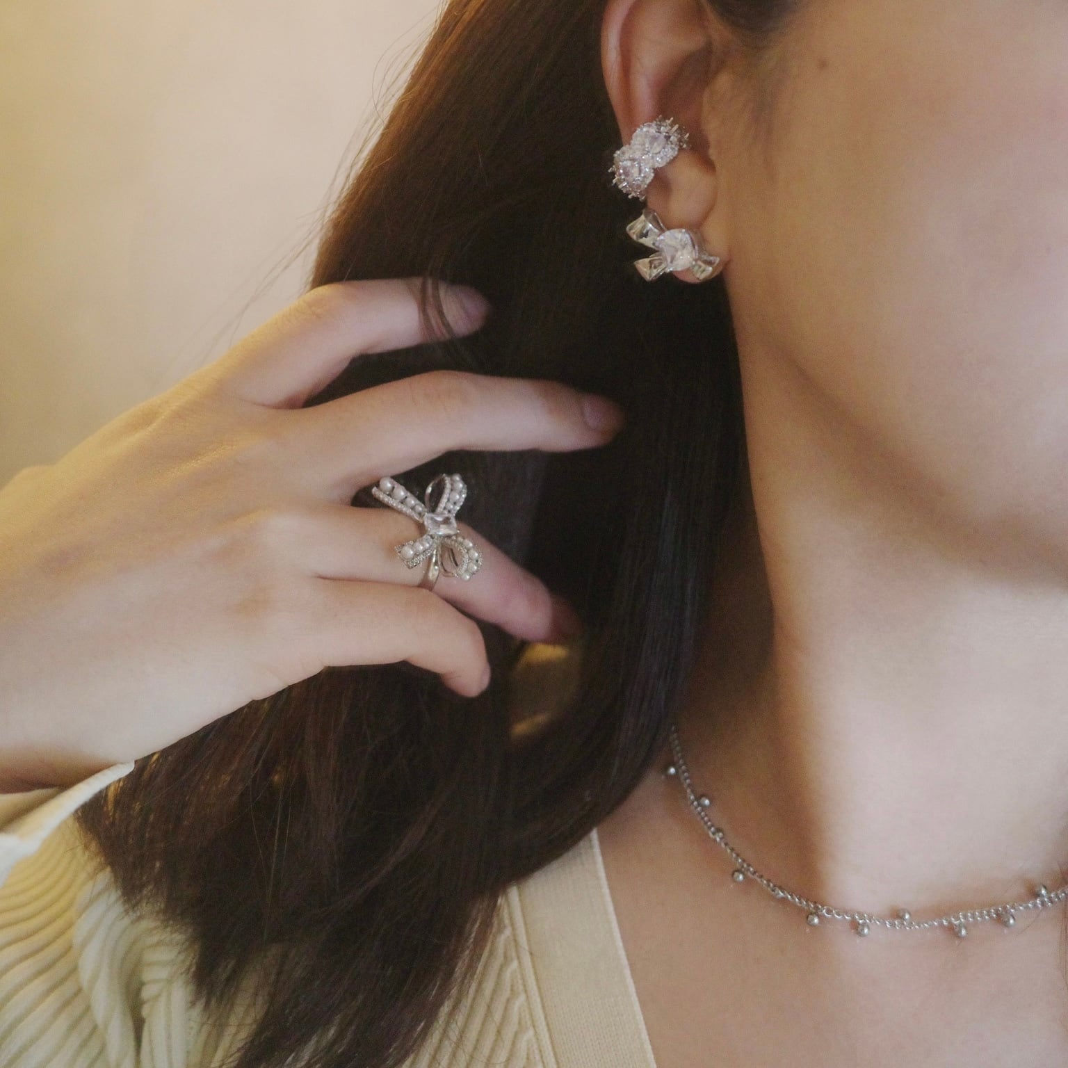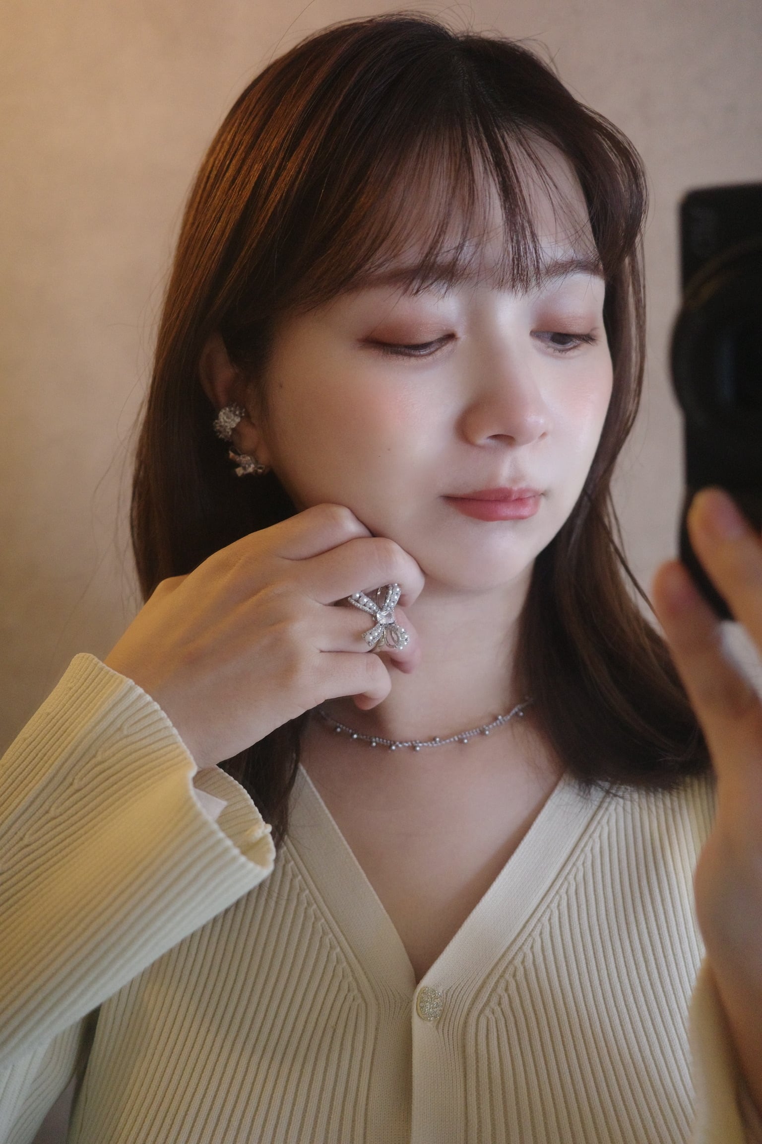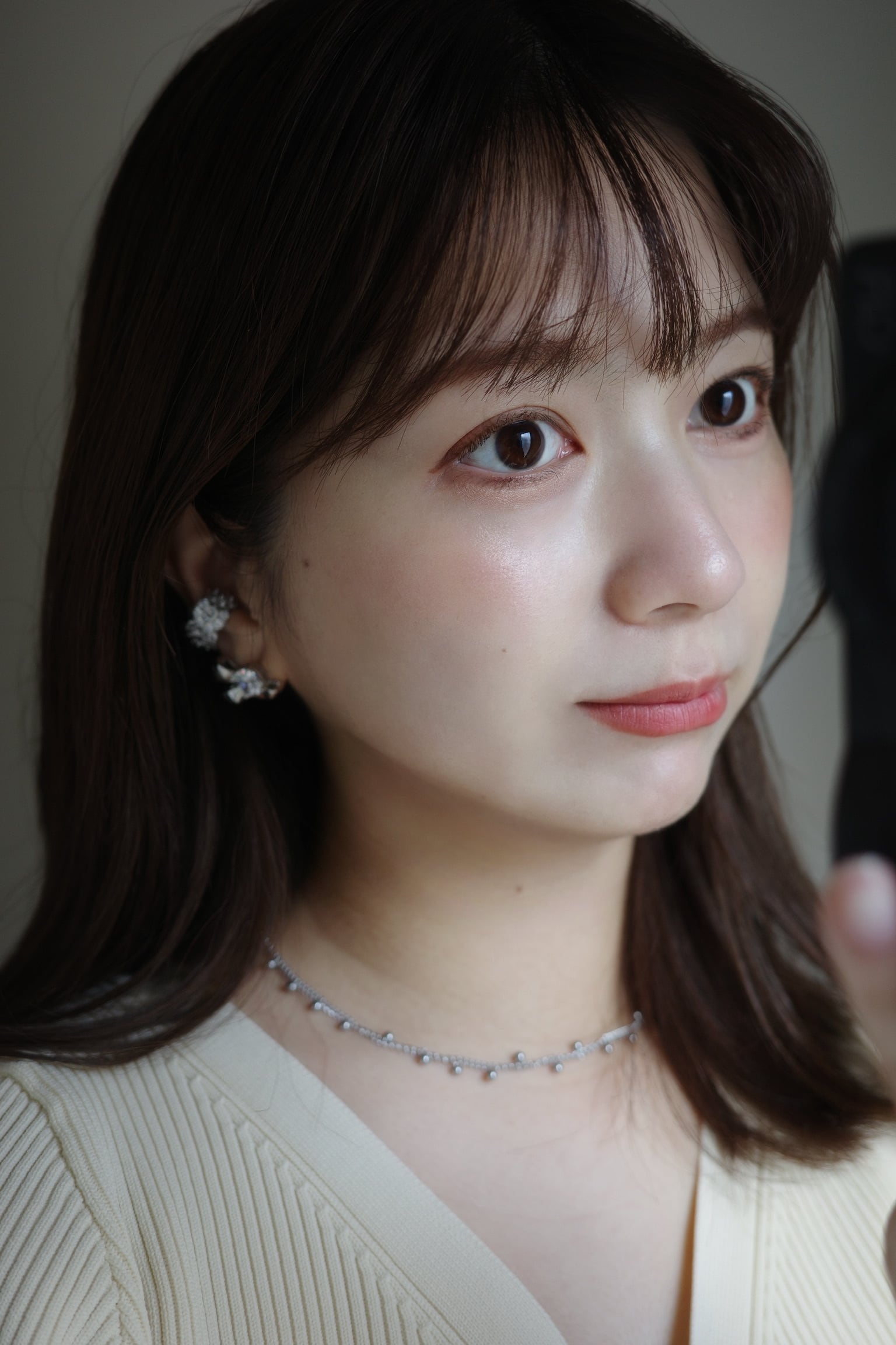 動くたびに控えめな輝きがふわっと揺れ、肌そのものを美しく見せてくれます。