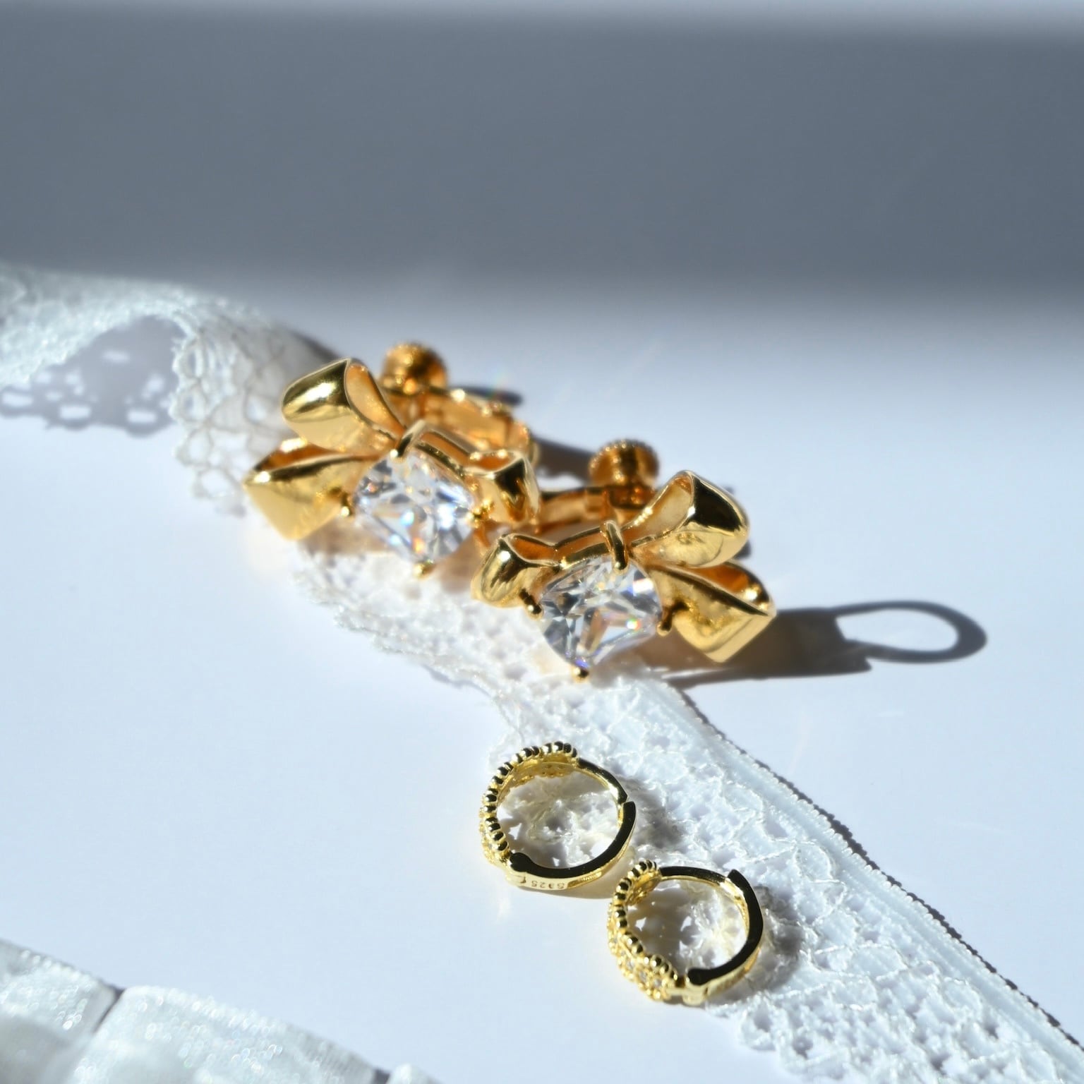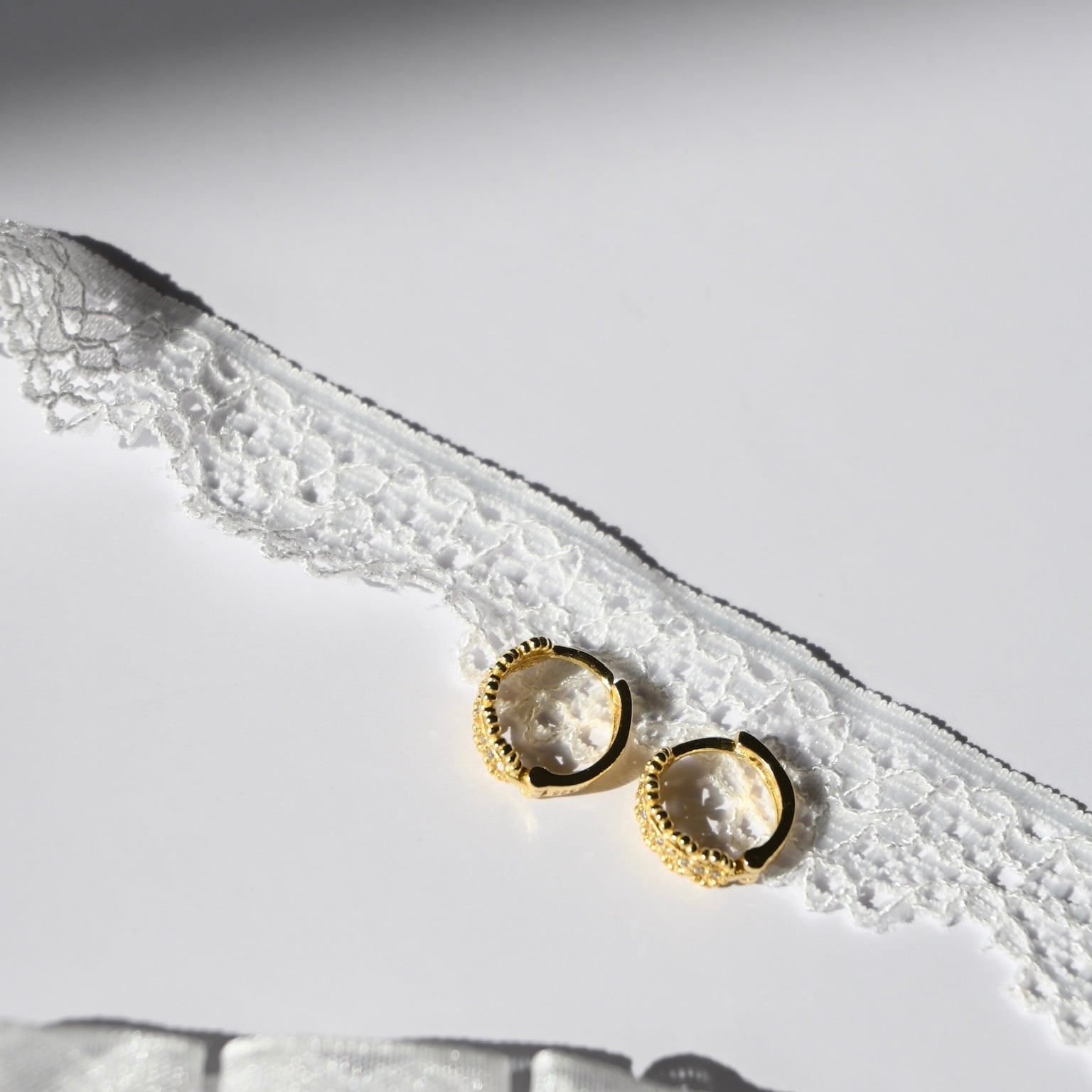 レースのように繊細なきらめきを纏わせたミニフープピアス。