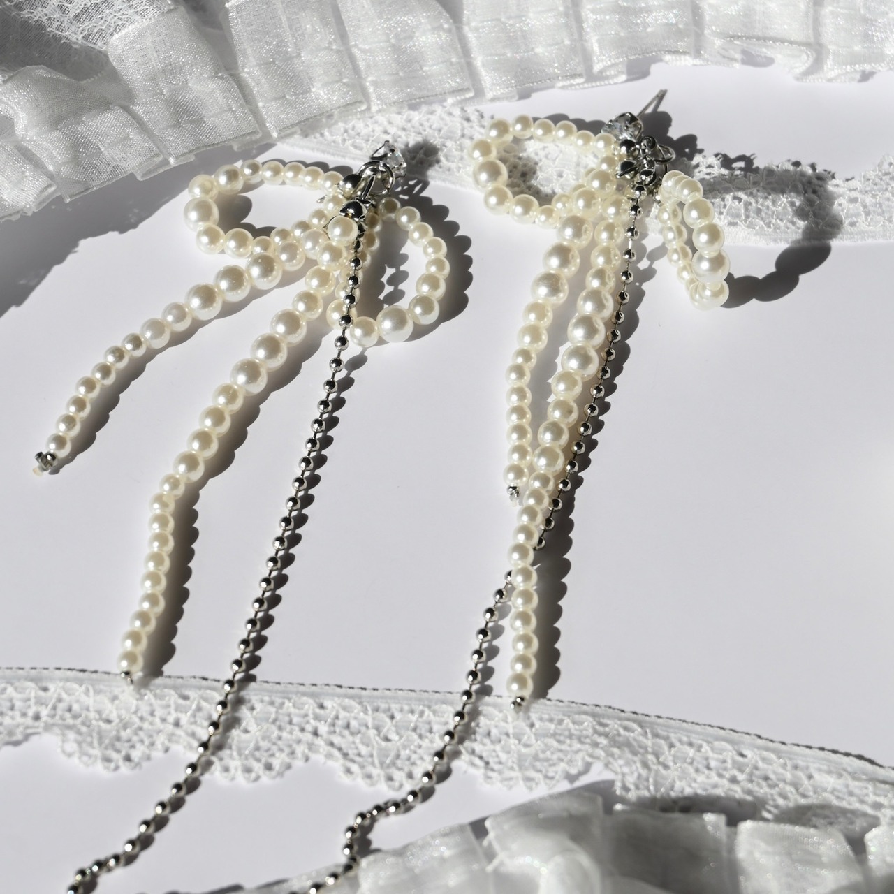 まるでレースがほどけるように連なるパールを贅沢にあしらった、立体的なカスケードデザイン。