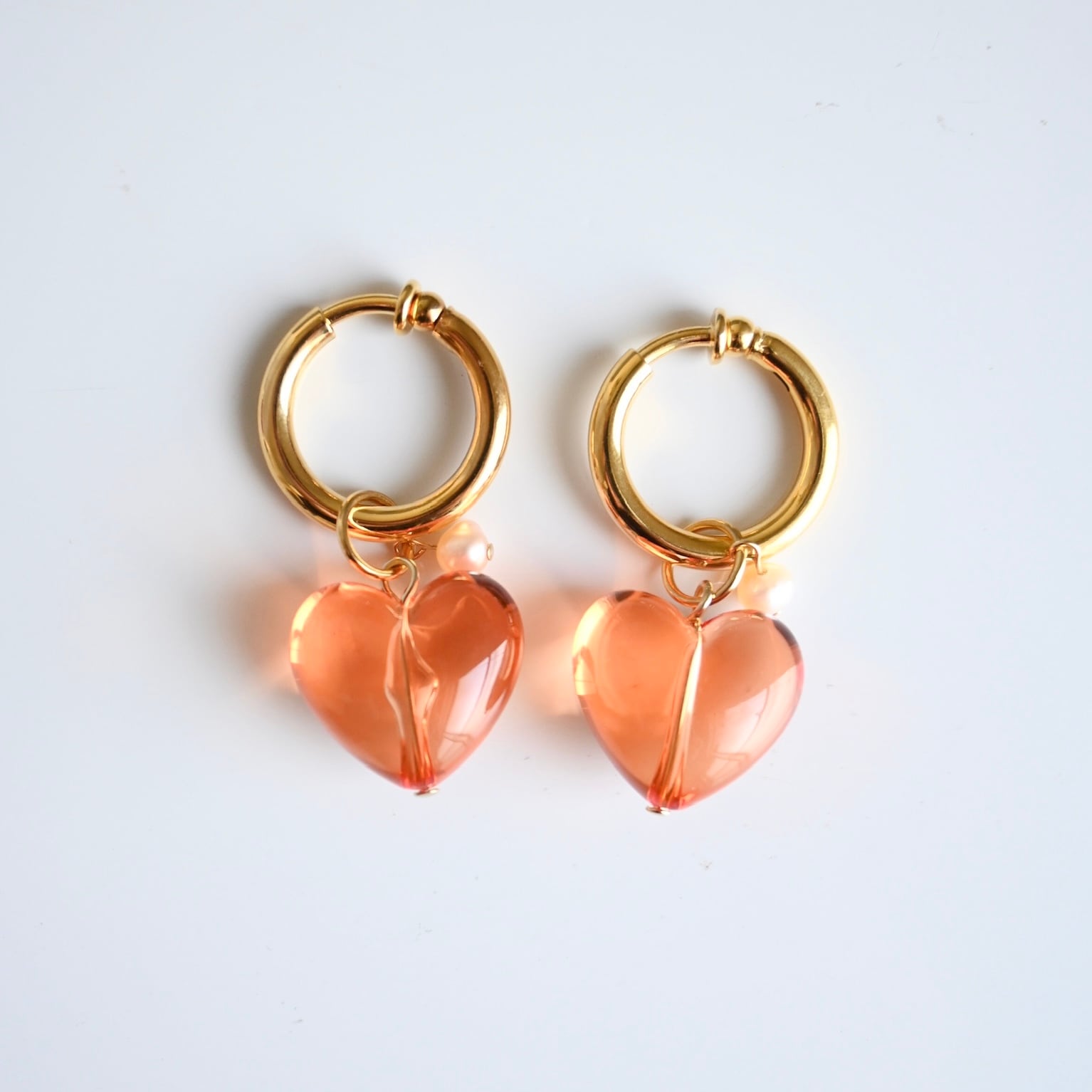 ぷっくりしたハートモチーフですが、透明感のあるカラーなので