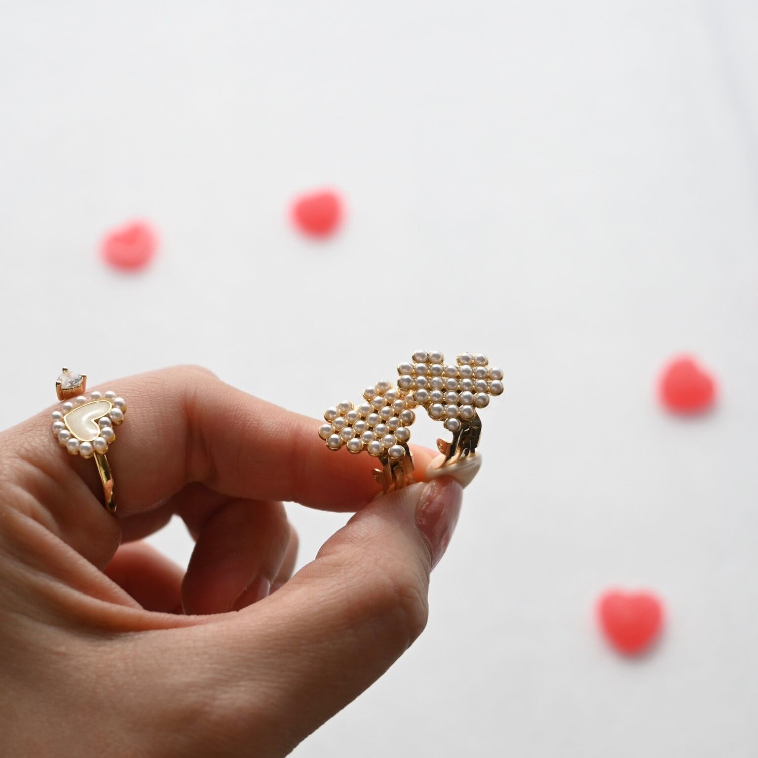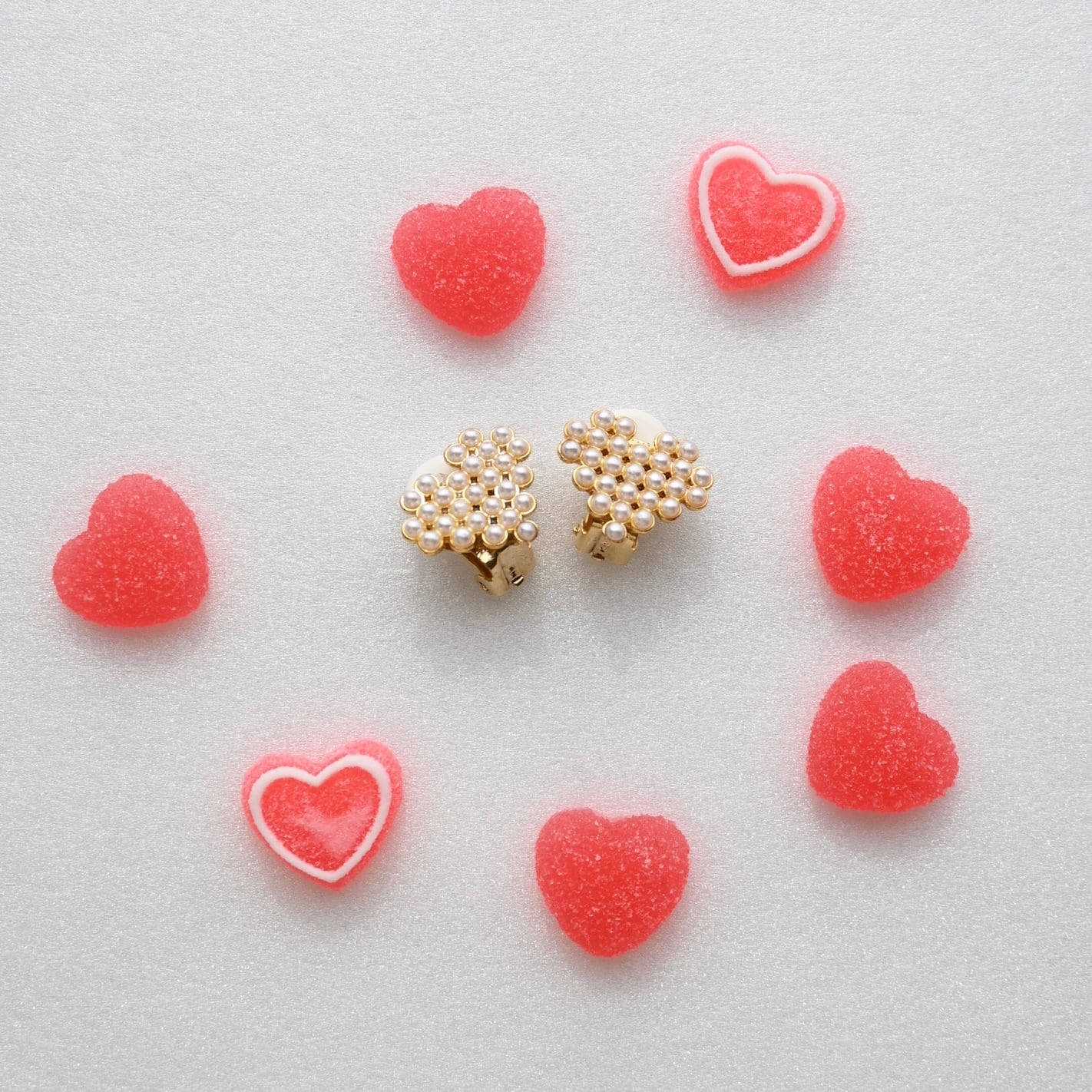 砂糖菓子のようにきらめくハートモチーフのピアス/イヤリングシリーズ。