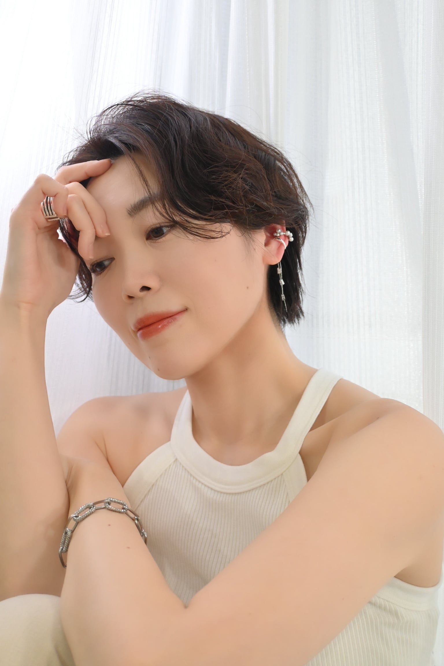 動くたびにやわらかな輝きをまとわせるイヤカフ。