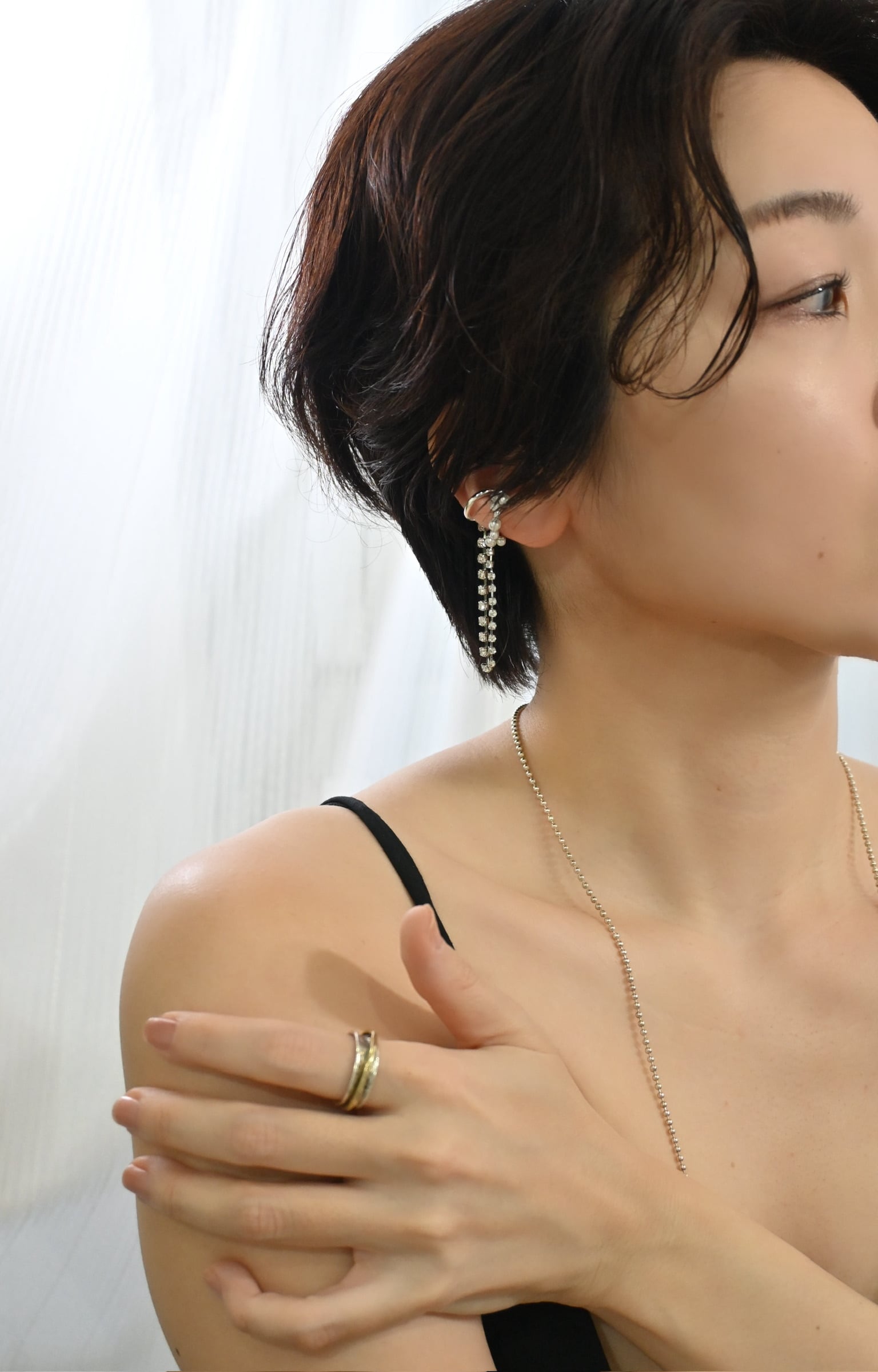 動くたびにやわらかな輝きをまとわせるイヤカフ。