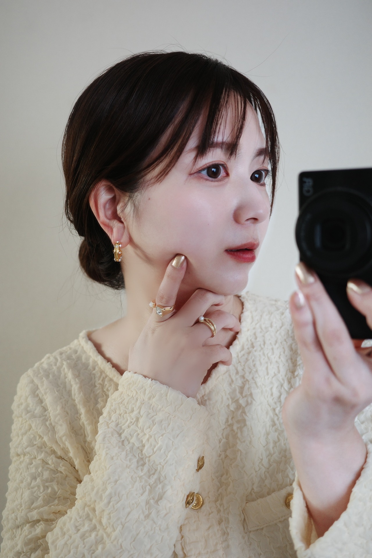 顔まわりに立体感と華やぎを添え、