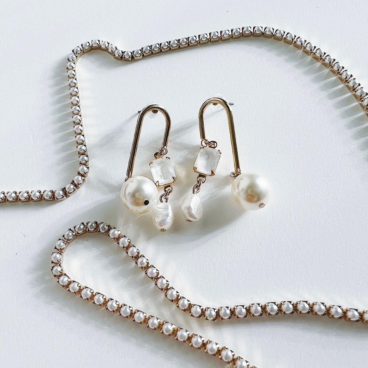 クリームカラーのスワロフスキーパール、柔らかいホワイトの淡水パールを使用。