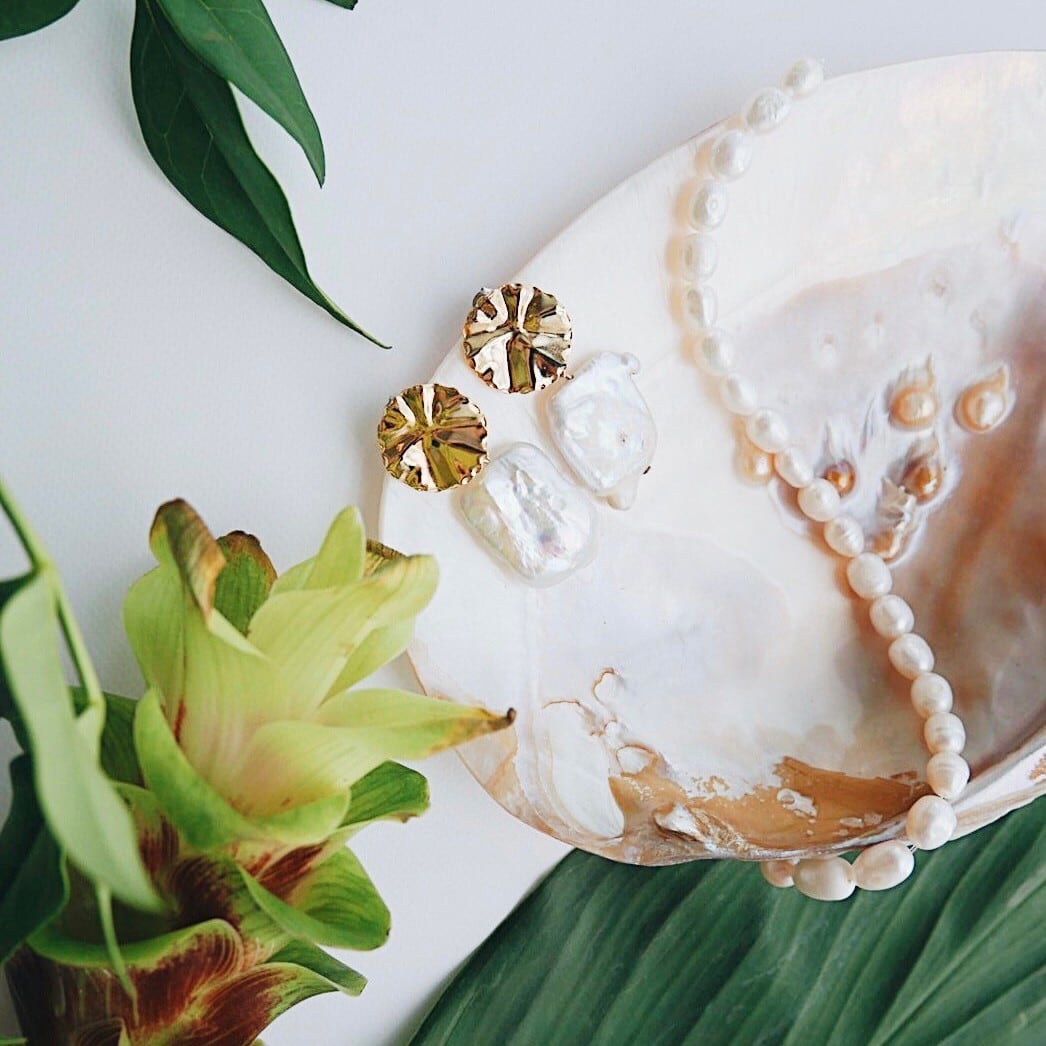 スクエア型の大粒淡水パールのピアスは身につけるだけでこなれ感、トレンド感を演出してくれます。