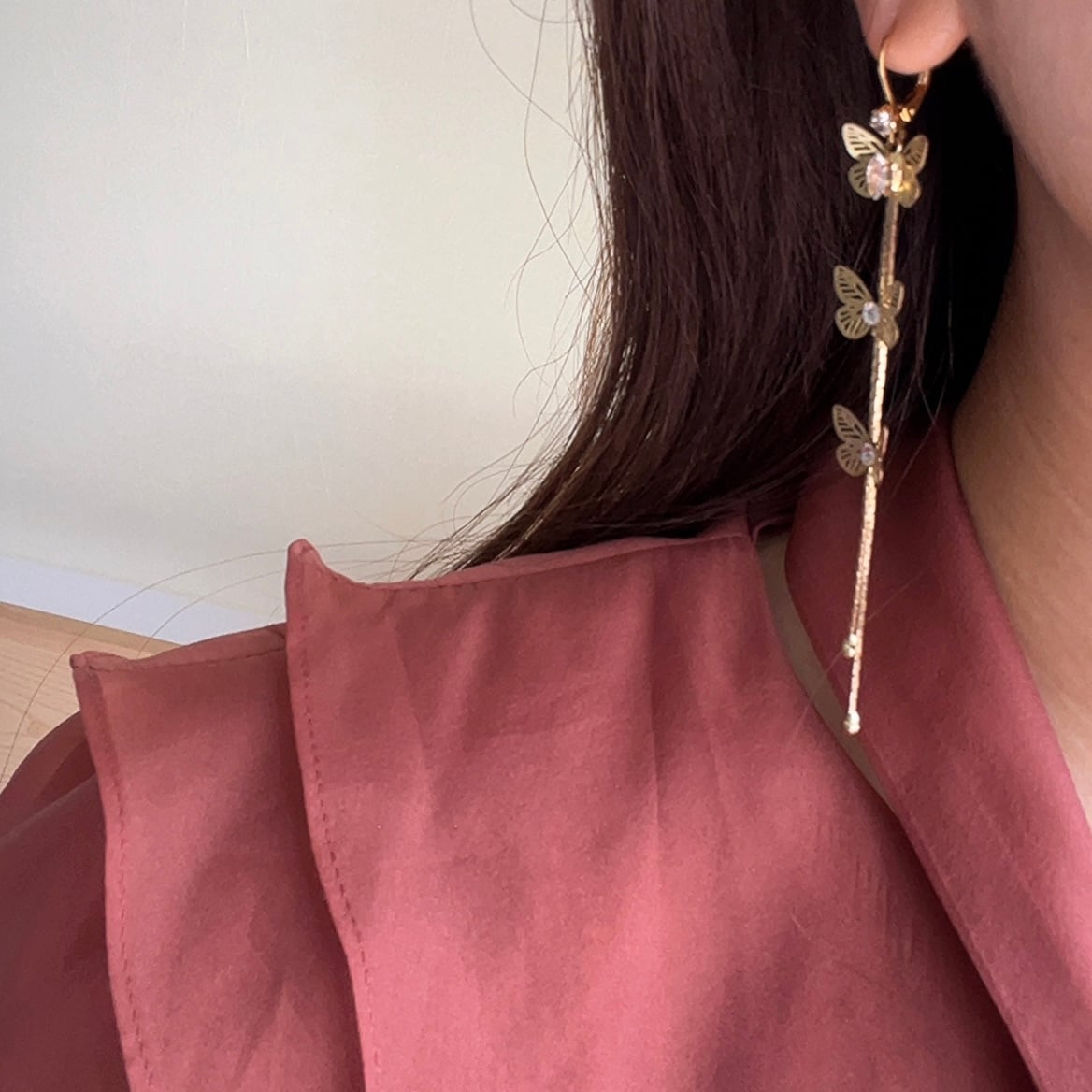 トレンド感のある蝶モチーフのイヤリングは、存在感がありつつも繊細なデザインなので、