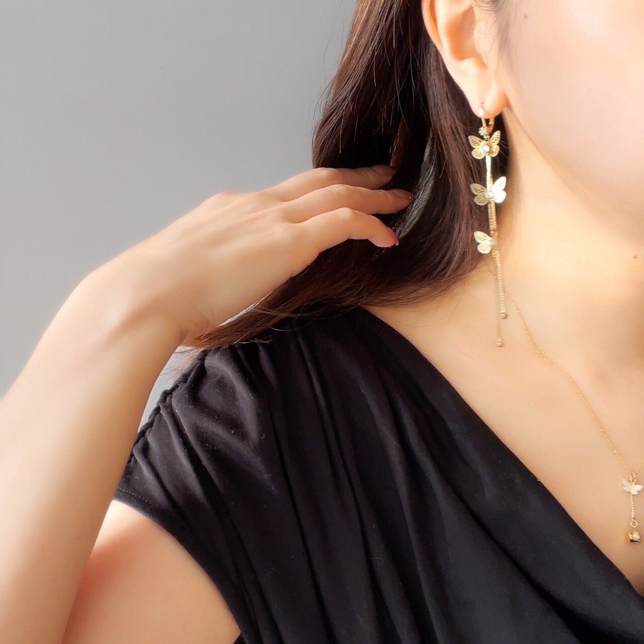 蝶がキラキラ舞うように揺れる、イヤリングピアスシリーズ。