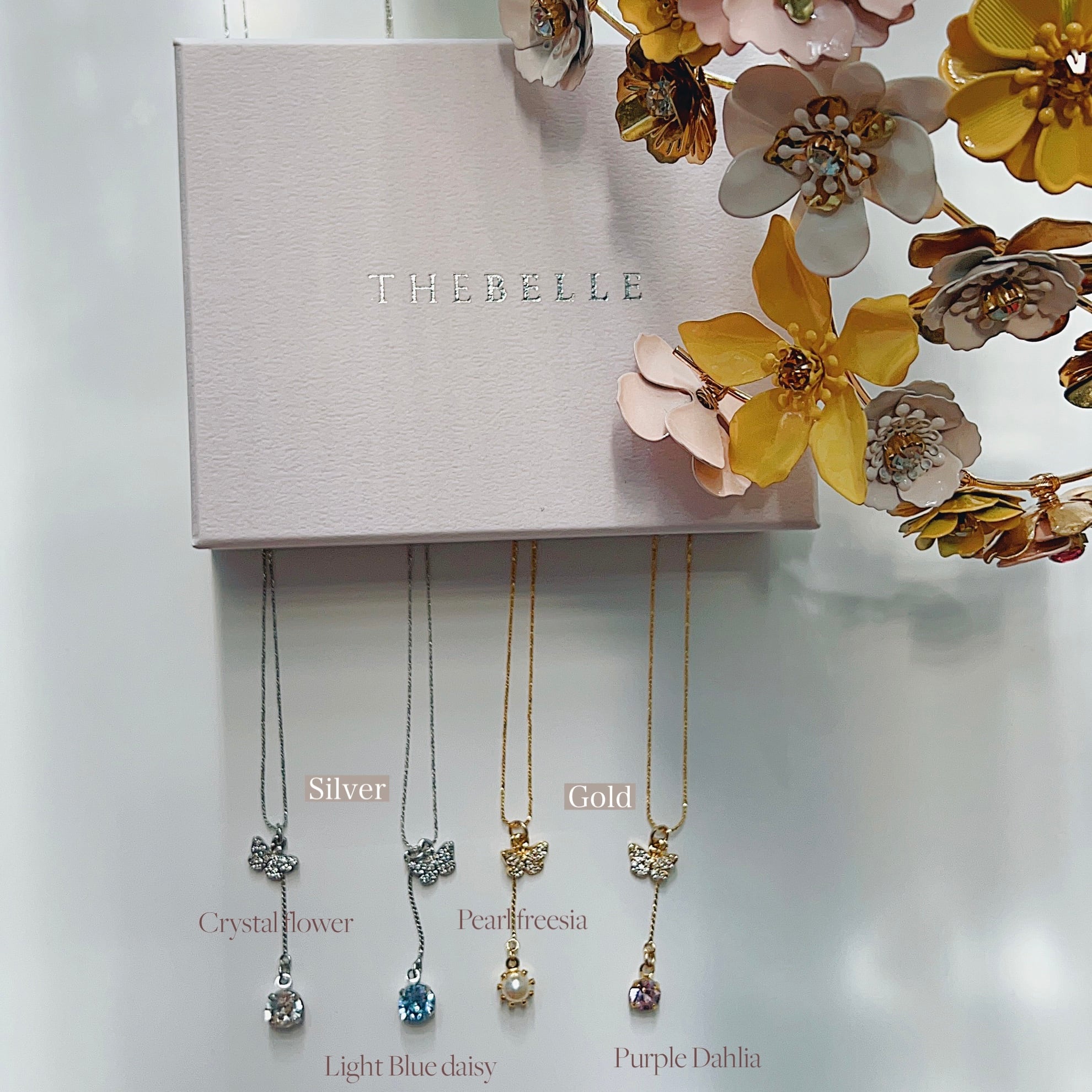 華奢な蝶とクリスタルが可憐な印象を与えてくれる、ネックレスシリーズです。