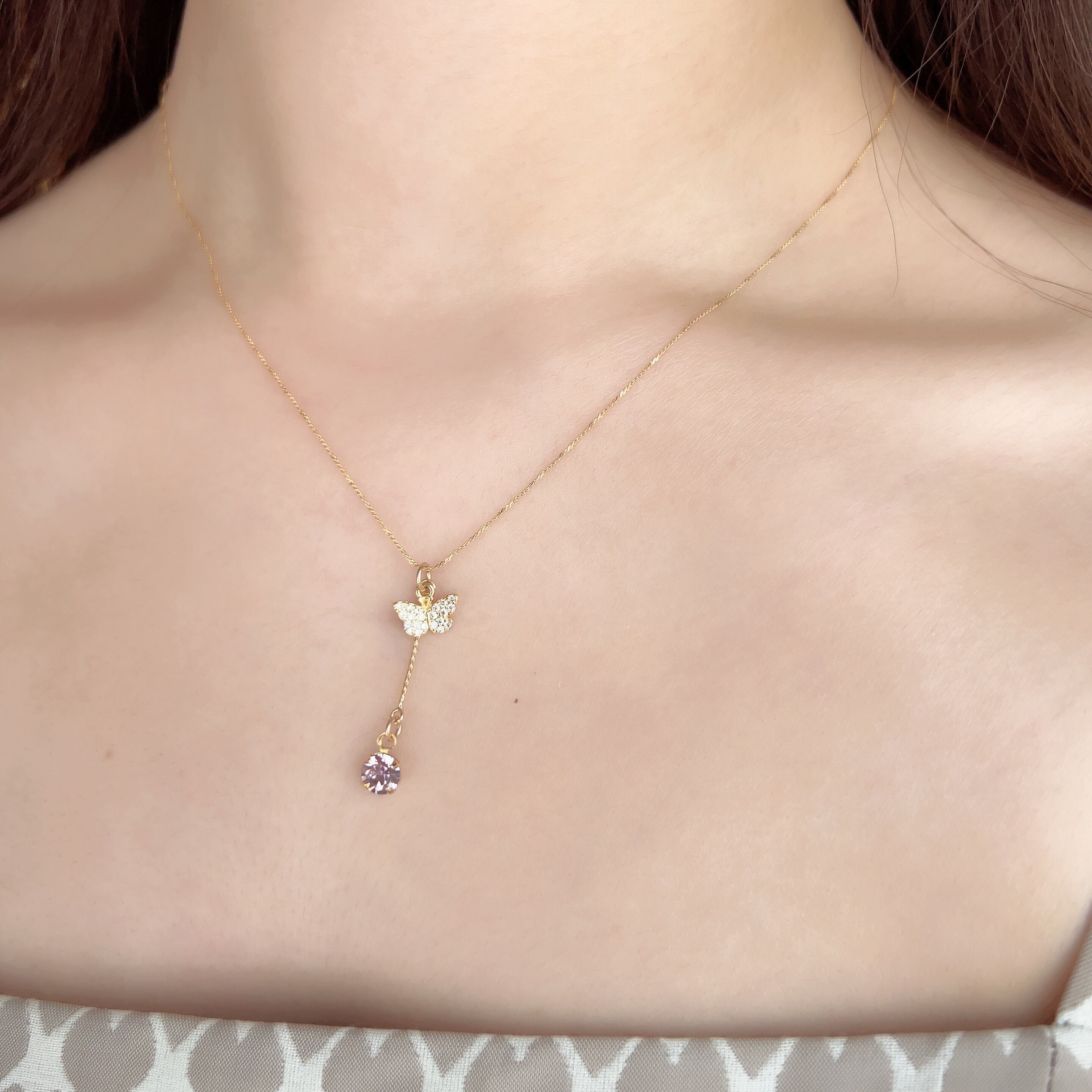 キュービックジルコニアの蝶チャームは、控えめながらも洗練されたものを選びました。