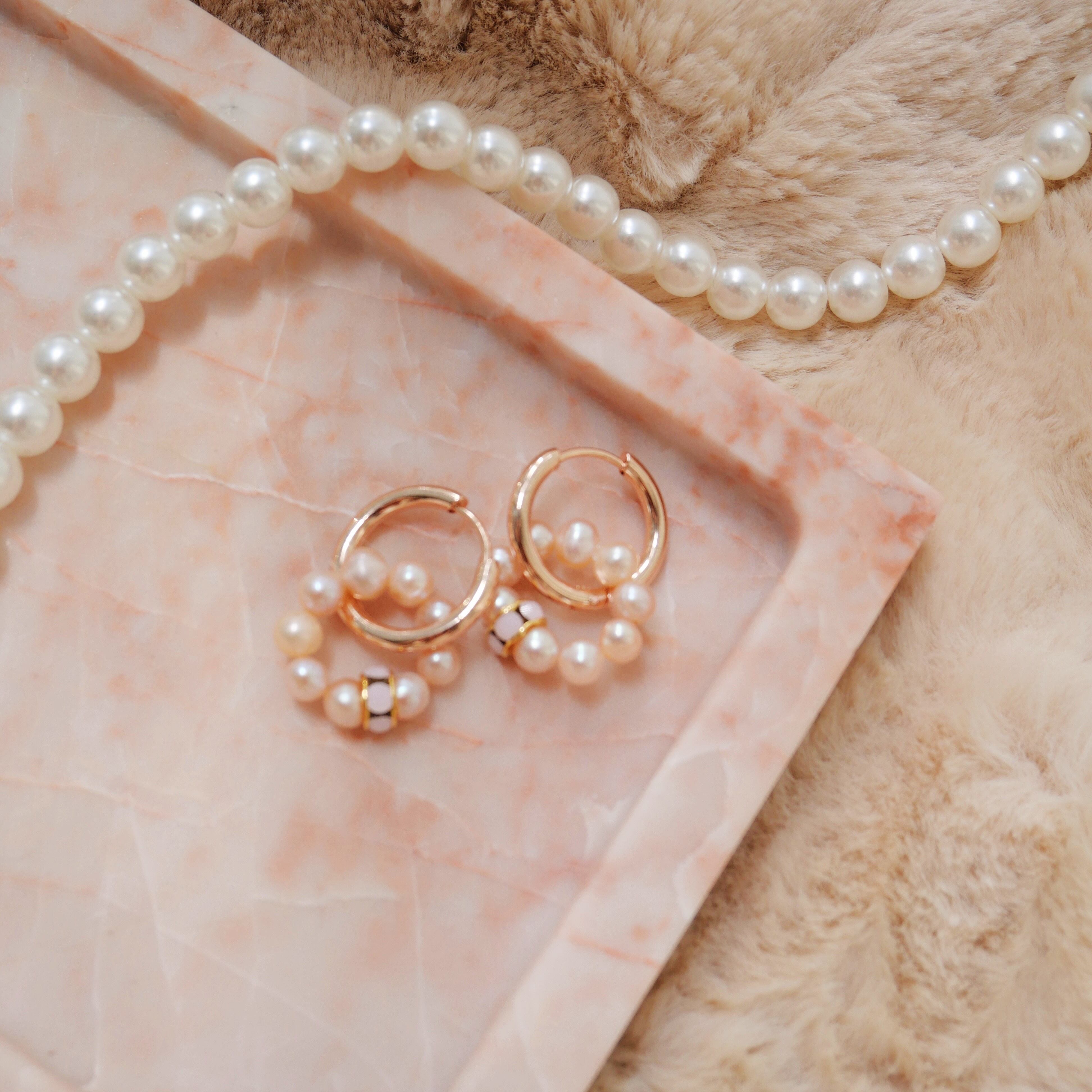 THE BELLE初のピンクゴールドのフープピアス/イヤリングと組み合わせました。