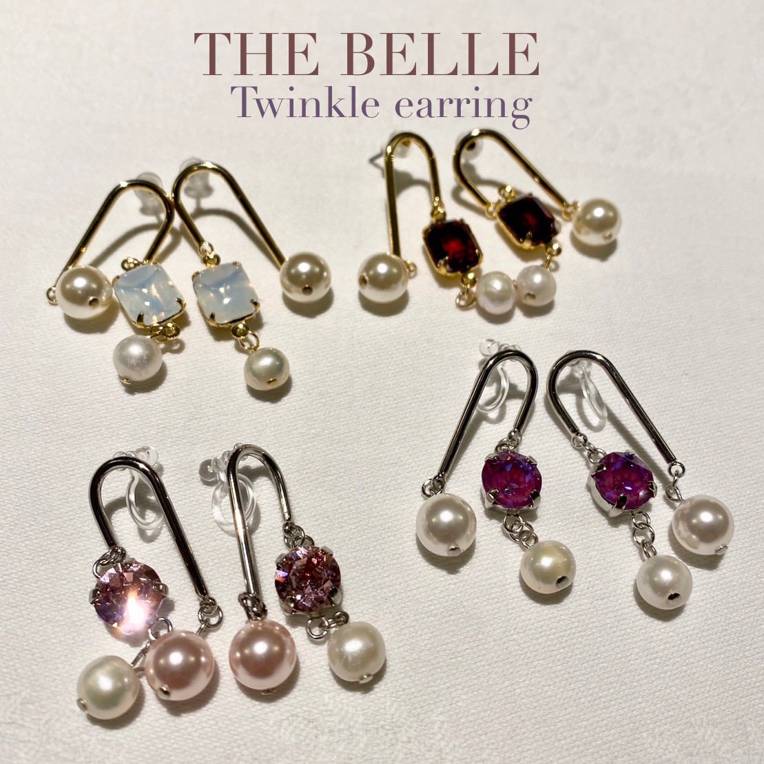 スワロフスキーのきらめきと、パールの上品な輝きが動くたびに揺れて視線を集めます。