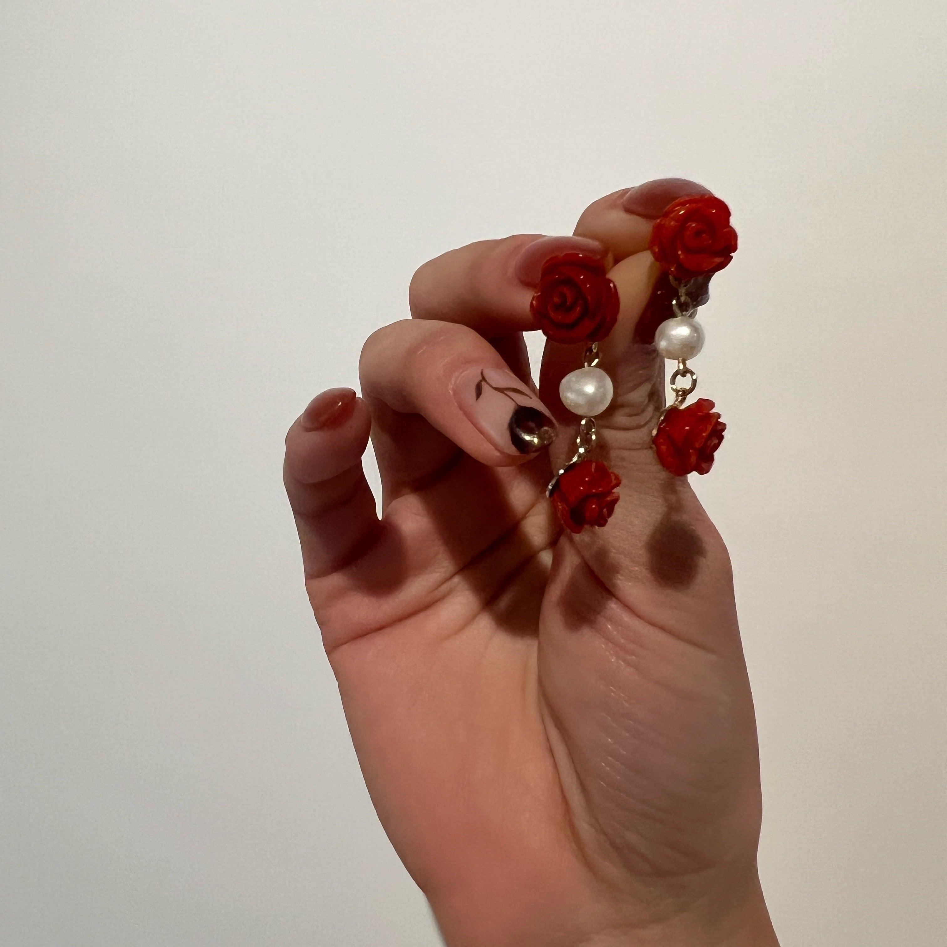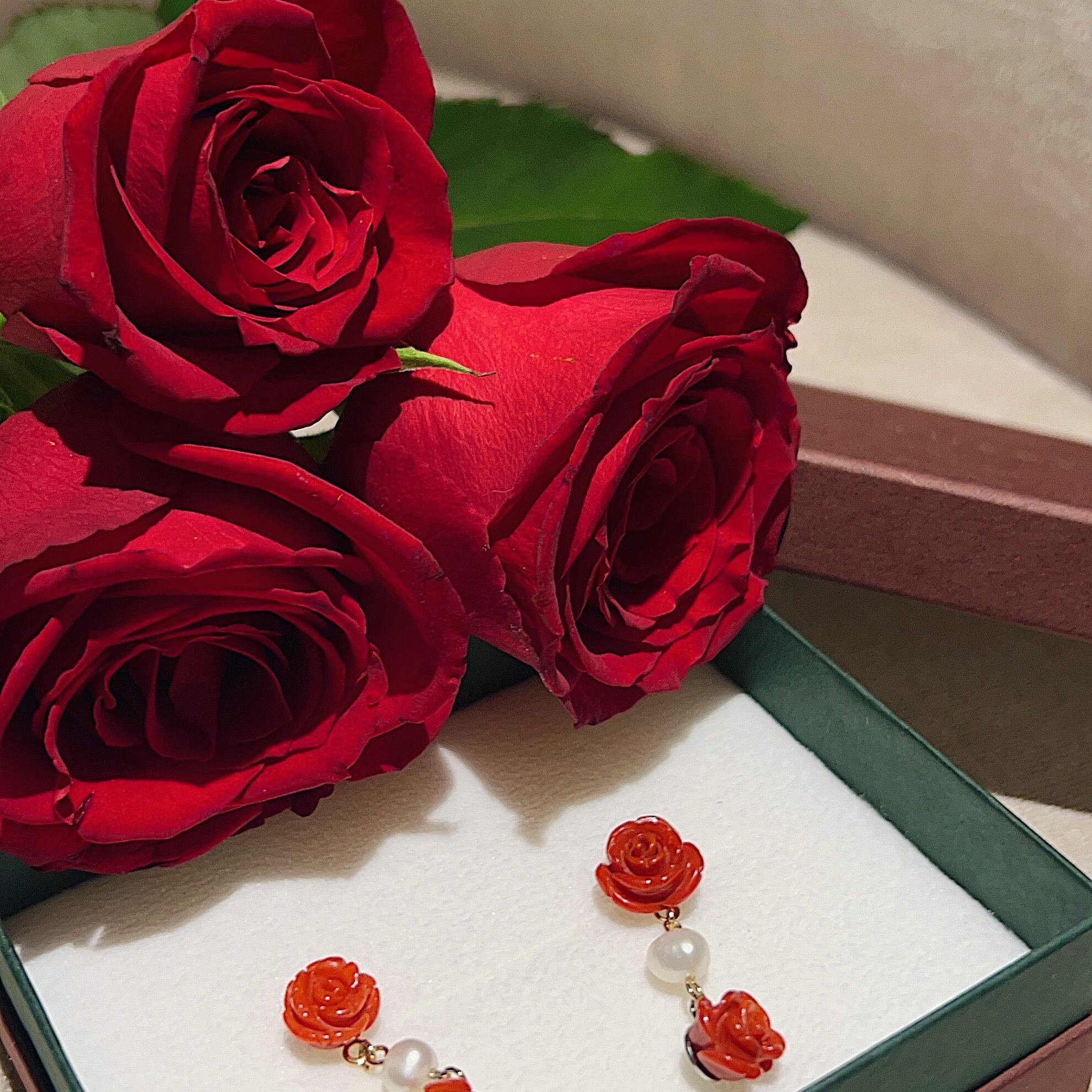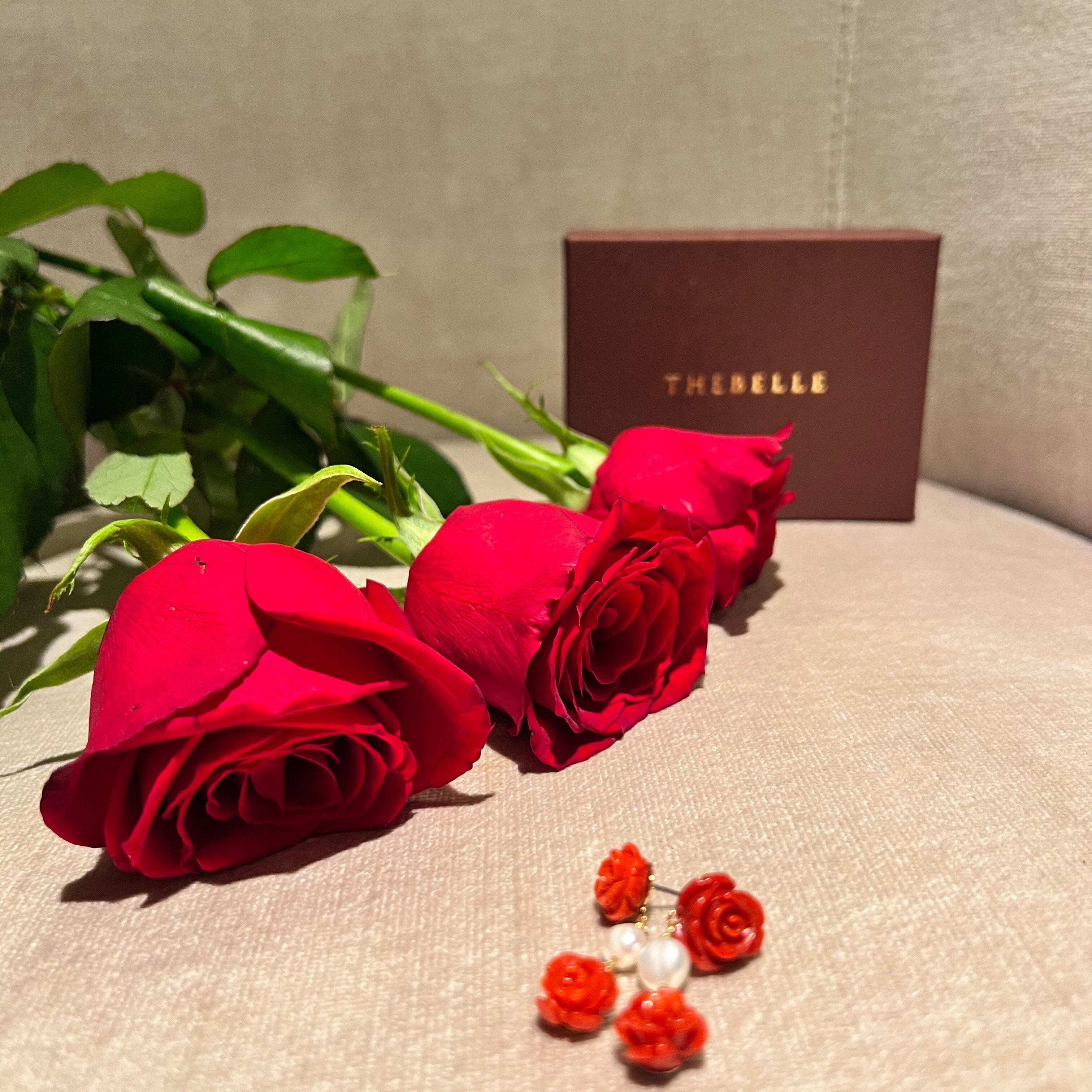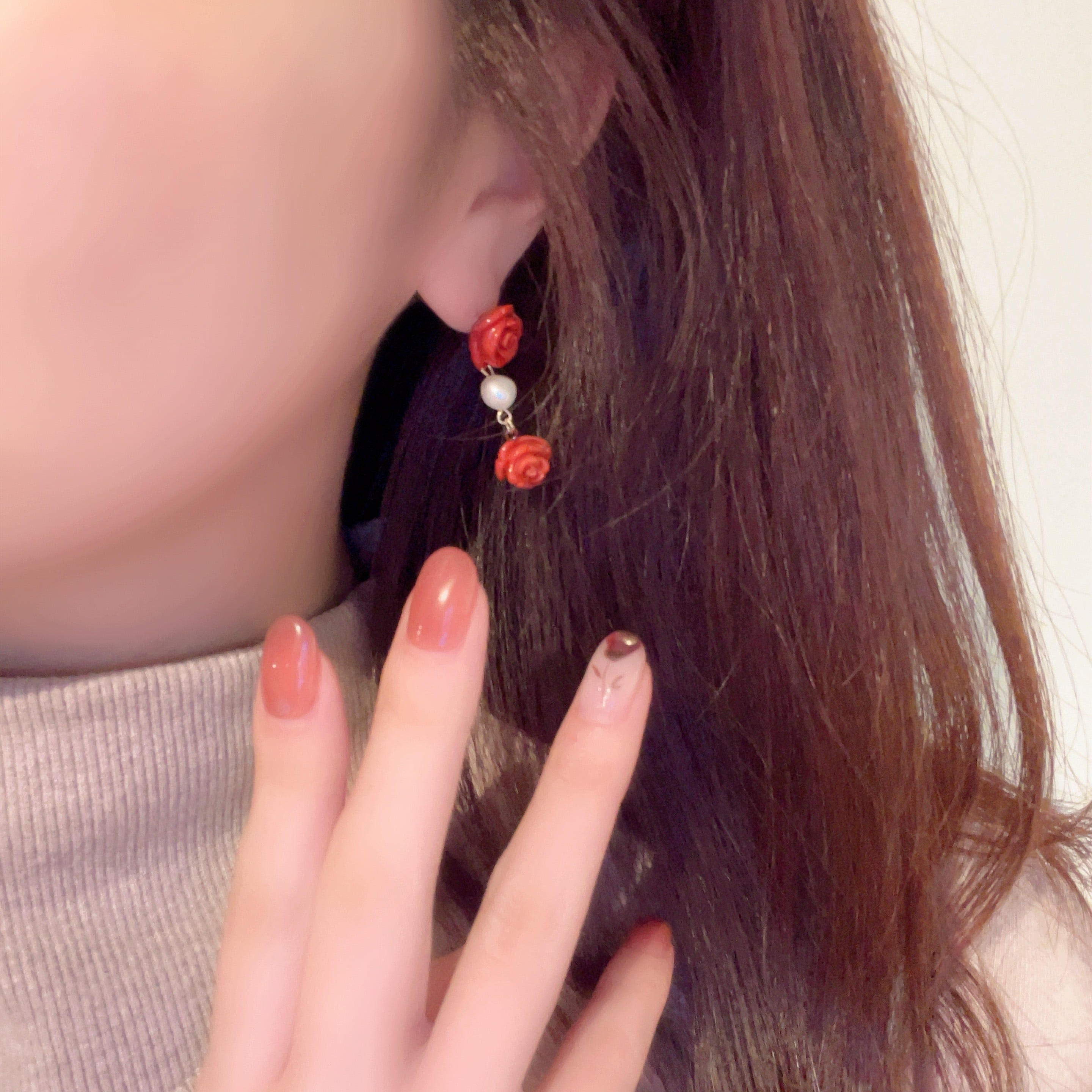 贅沢に天然石を使用した、華やかな薔薇モチーフのイヤリングピアスシリーズです。