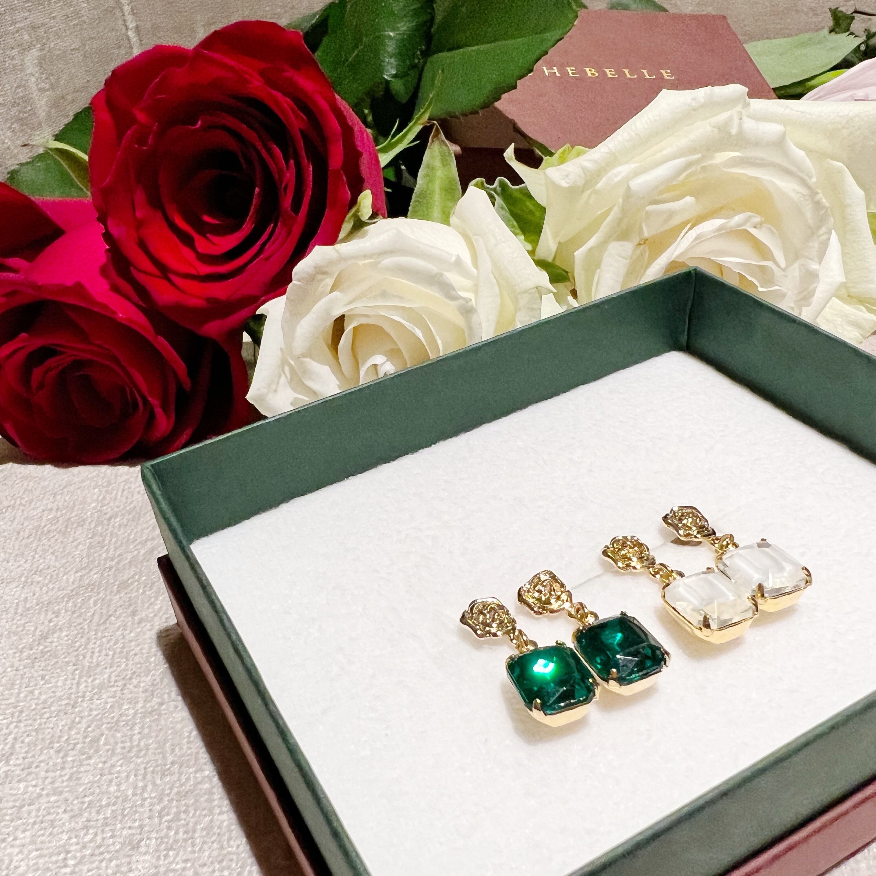 ミニバラのように可愛らしいモチーフですが、ストーンをスクエアかつあえて大人っぽいカラーにし、