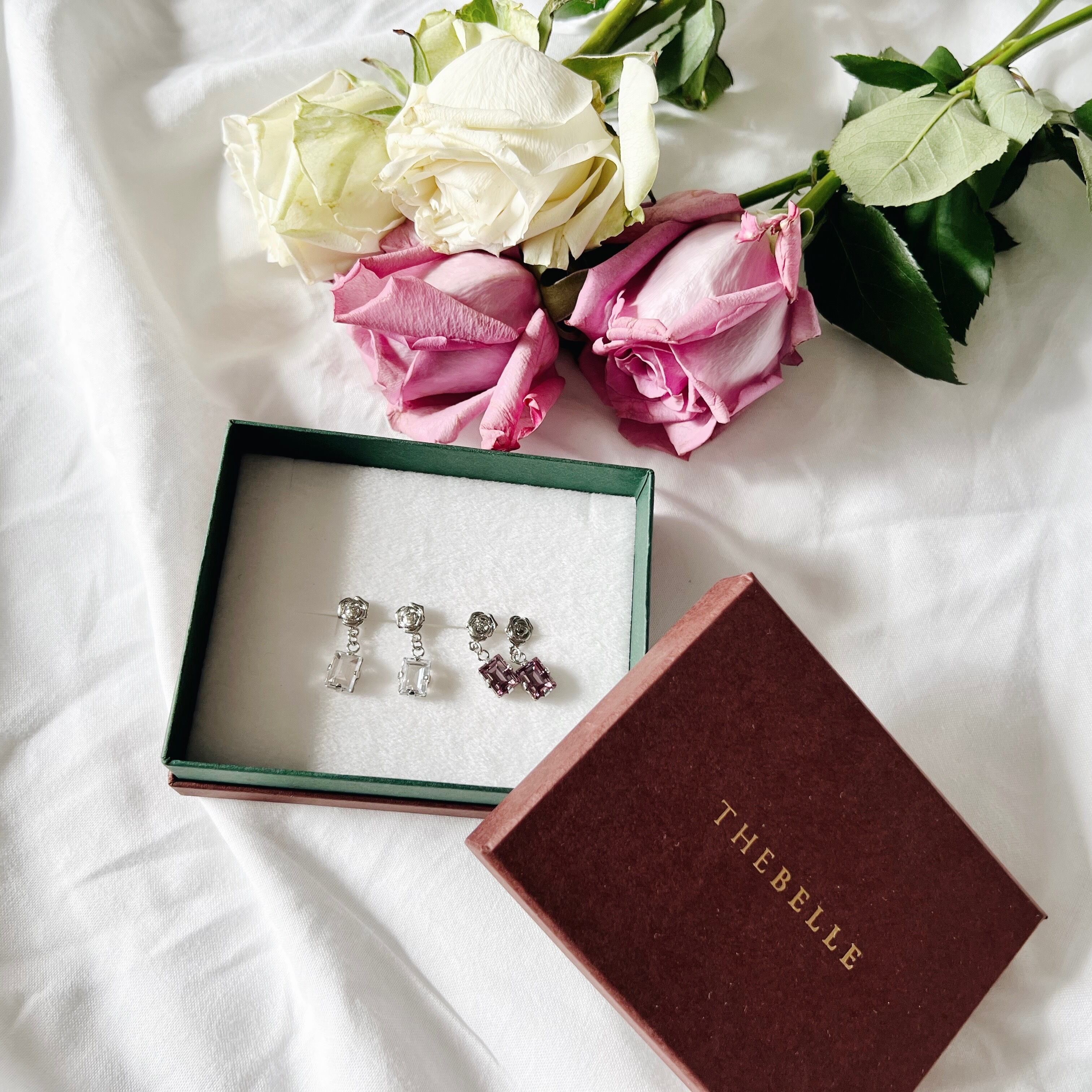ミニバラのように可愛らしいモチーフですが、ストーンをスクエアかつあえて大人っぽいカラーにし、
