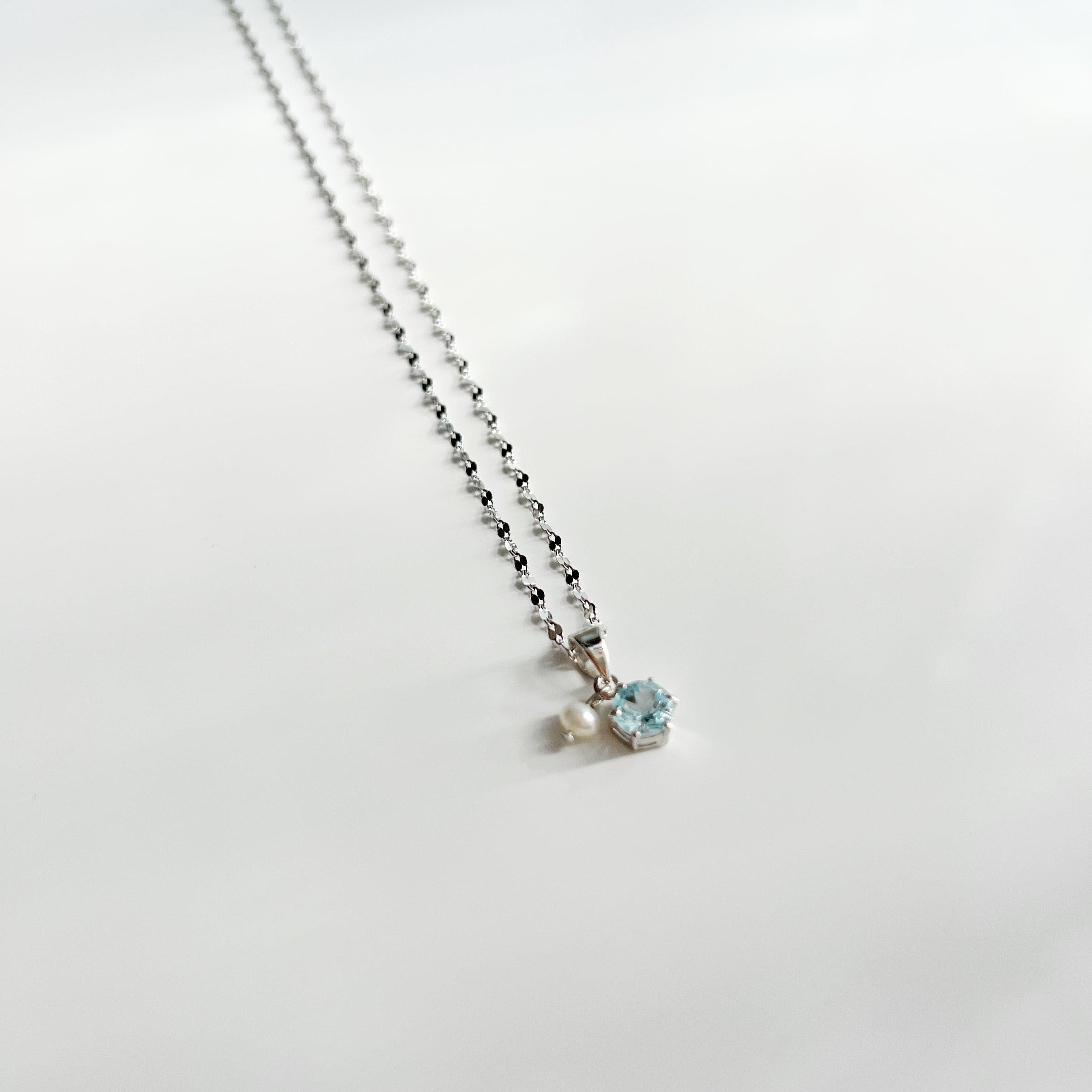 Amulet flower petal necklace<Silver/Sky blue topaz rose>