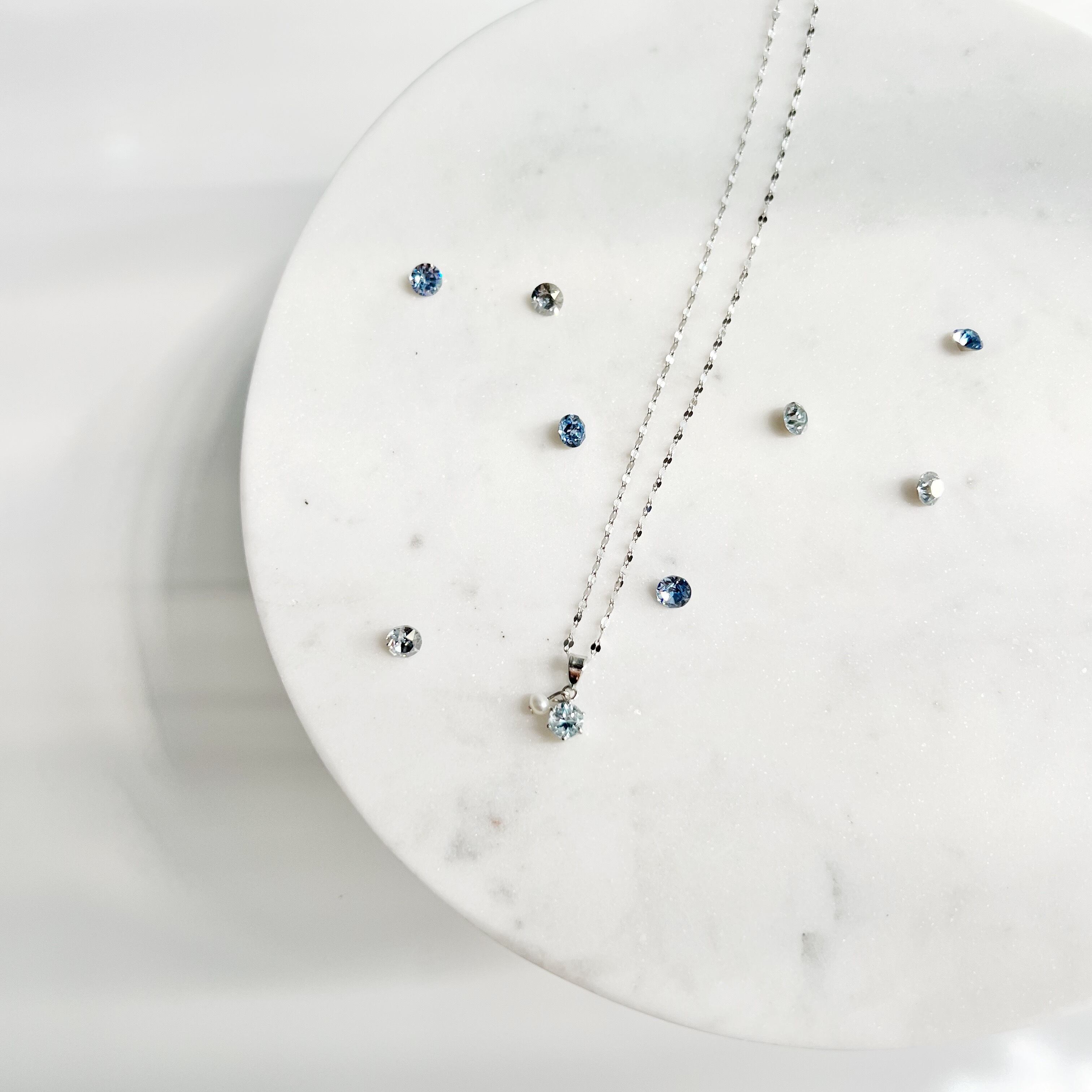 <Silver/Sky blue topaz rose>は、宝石質スカイブルートパーズを使用しました。