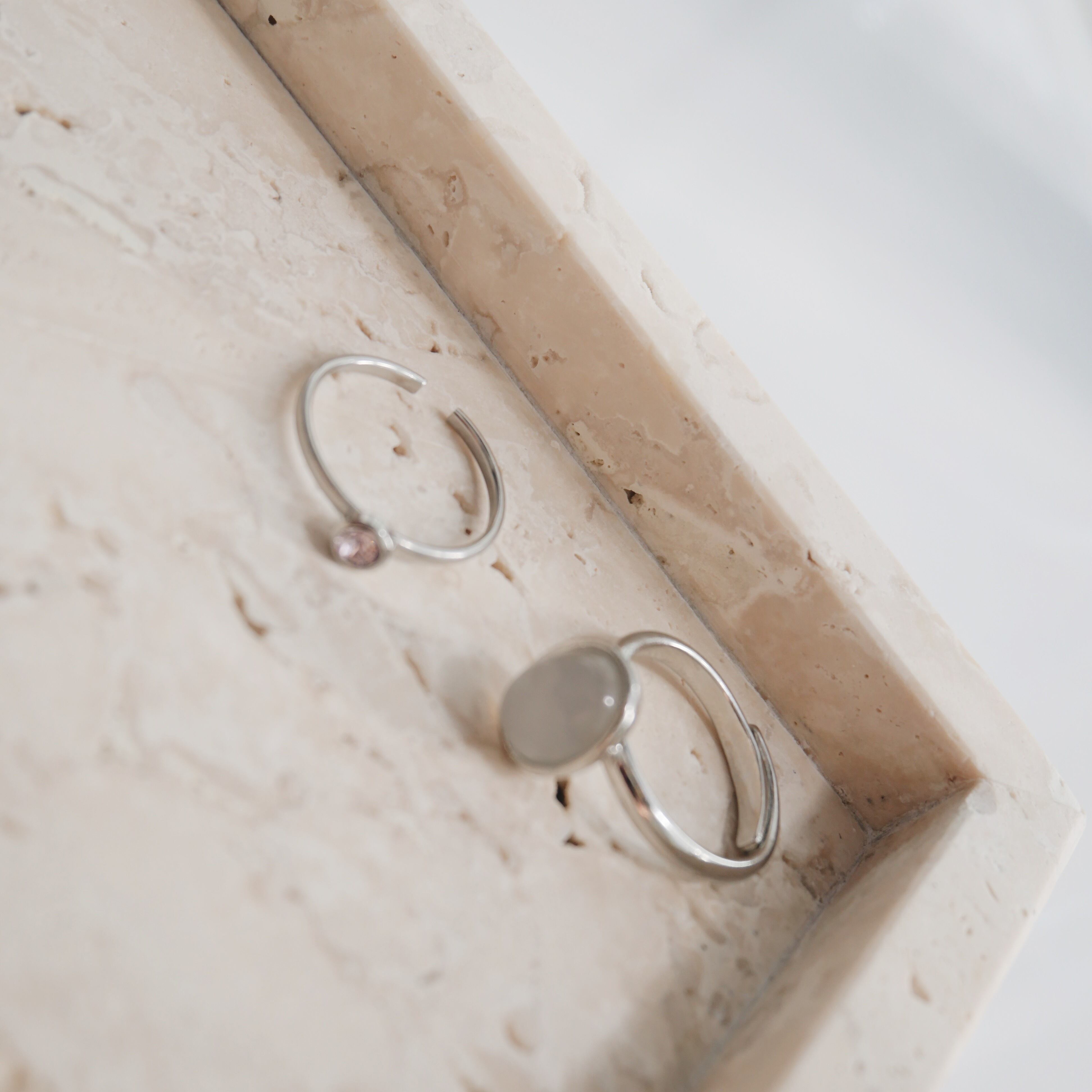 天然石のオーバルリングとサージカルステンレス製のリングに小さめのスワロフスキーストーンを合わせたリングは、