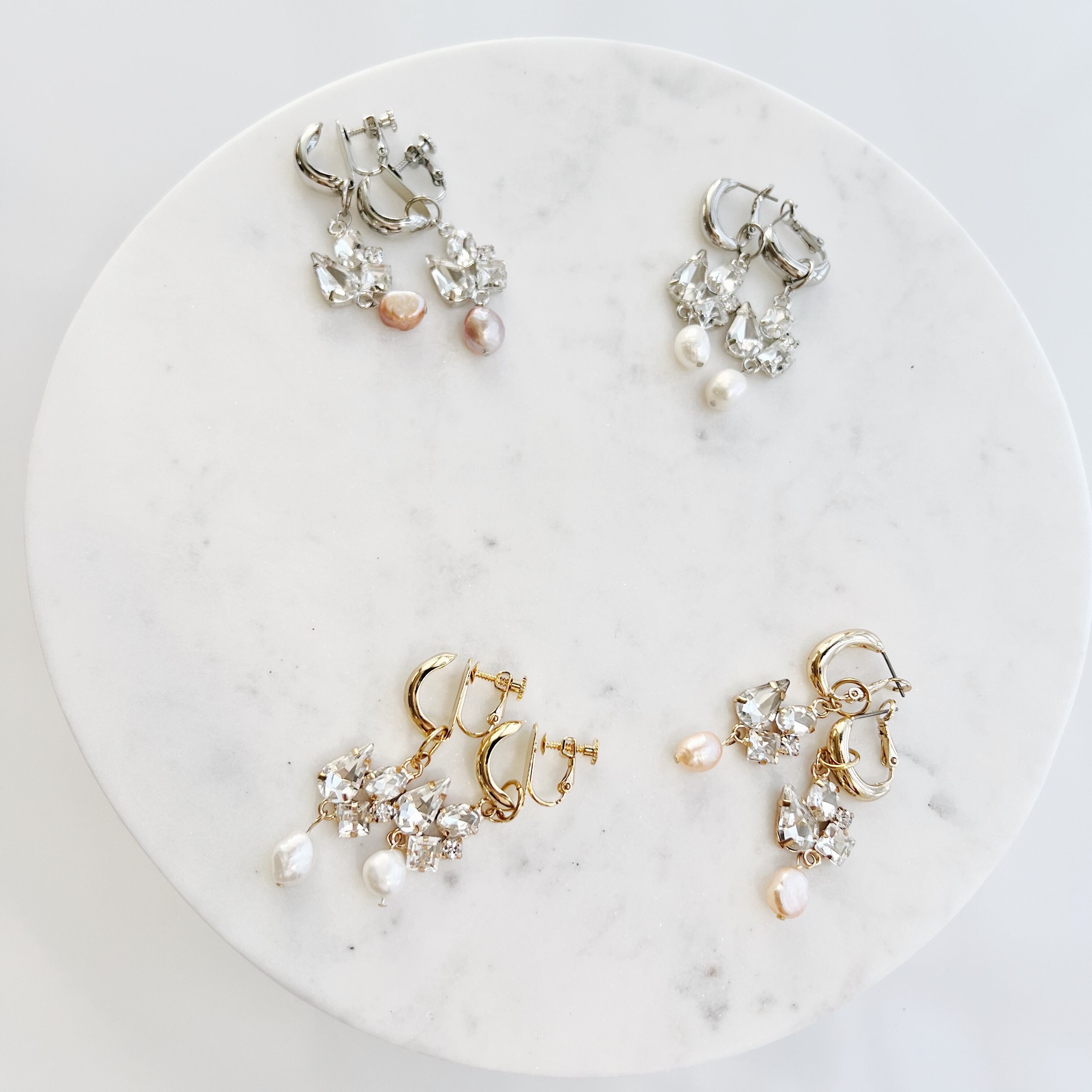 <GOLD,SILVER / White rose>は定番で合わせやすく、清楚な印象に。