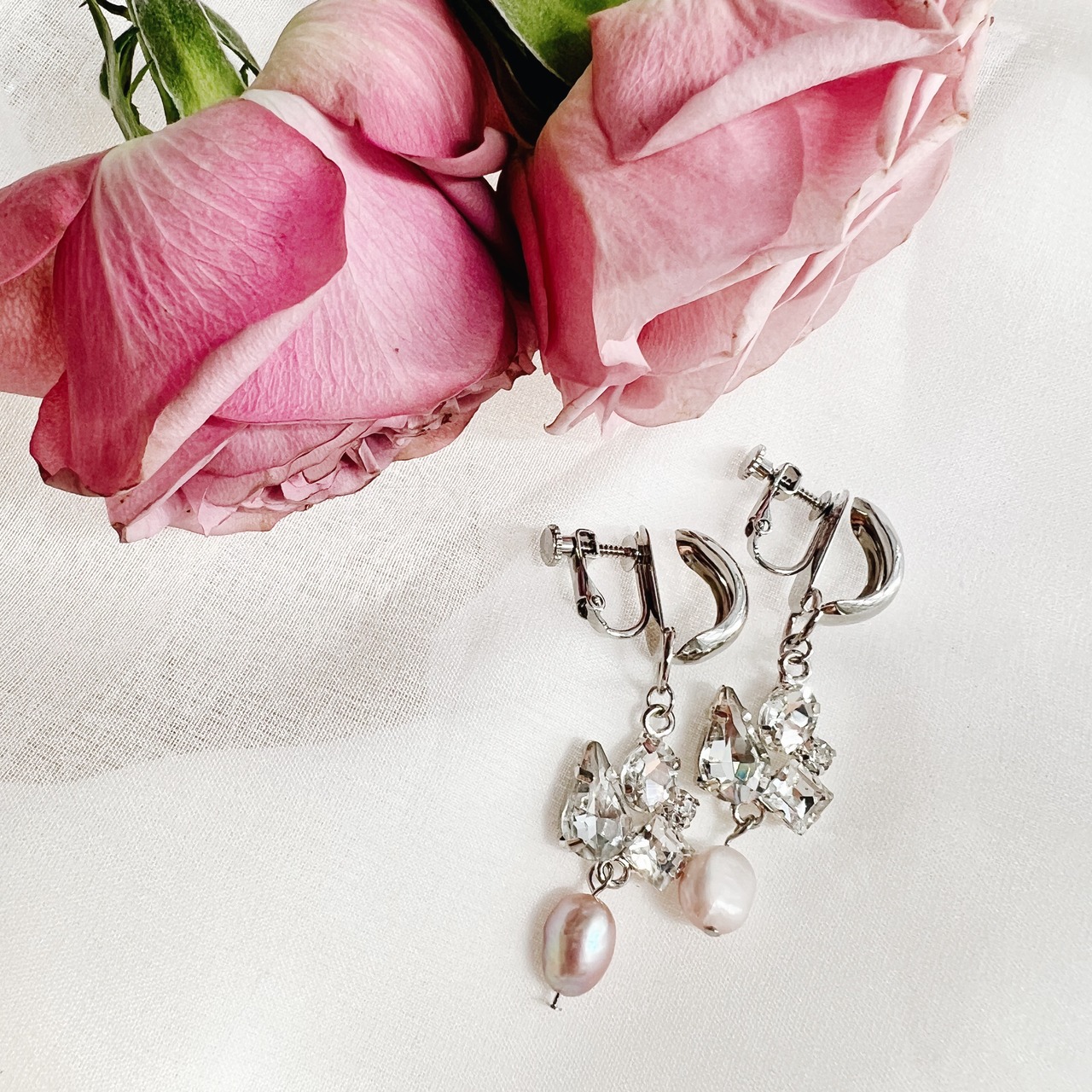 <GOLD,SILVER / White rose>は定番で合わせやすく、清楚な印象に。