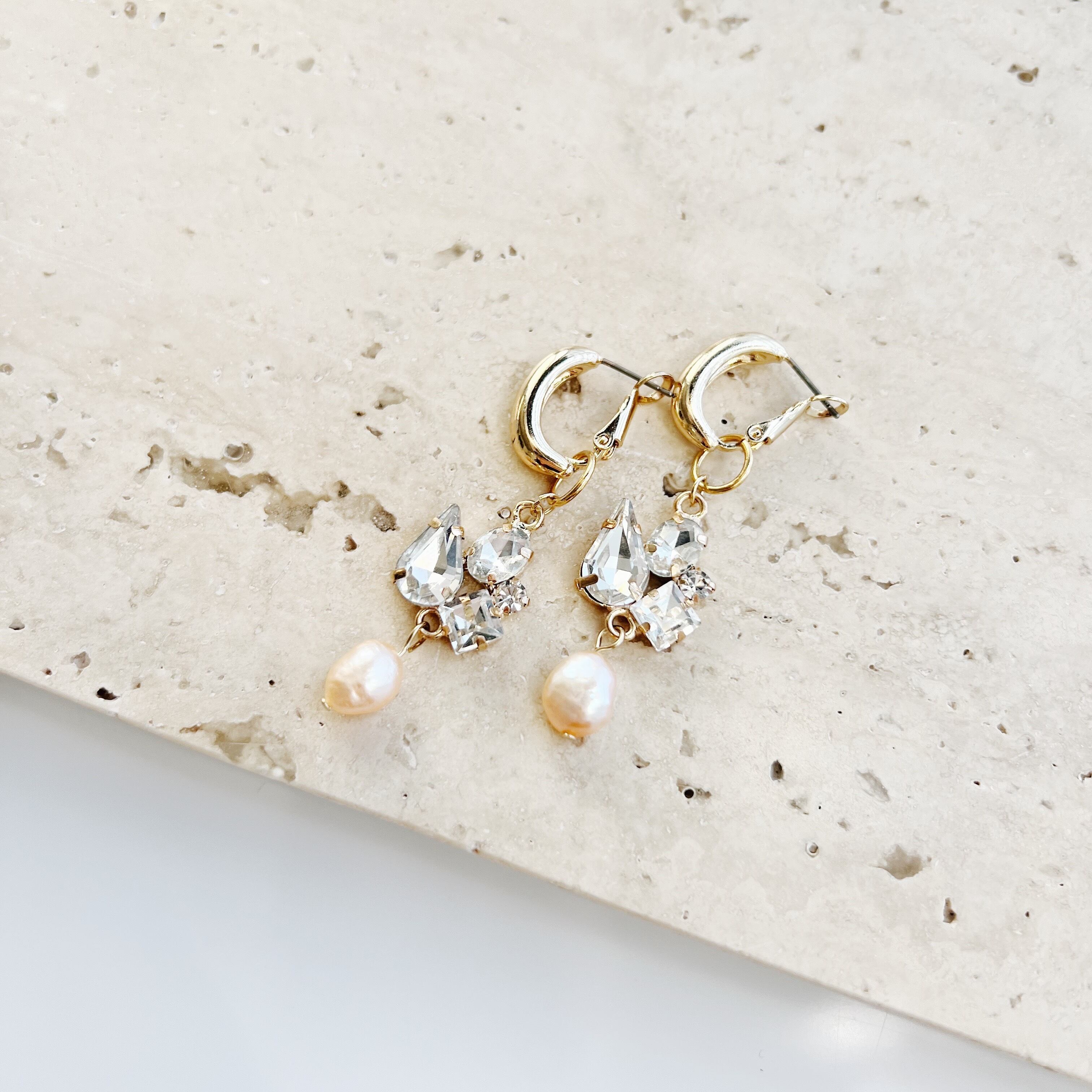 キラキラと輝くストーンが幸運を運んでくれるようなチャンキーフープ風のイヤリング・ピアスシリーズです。
