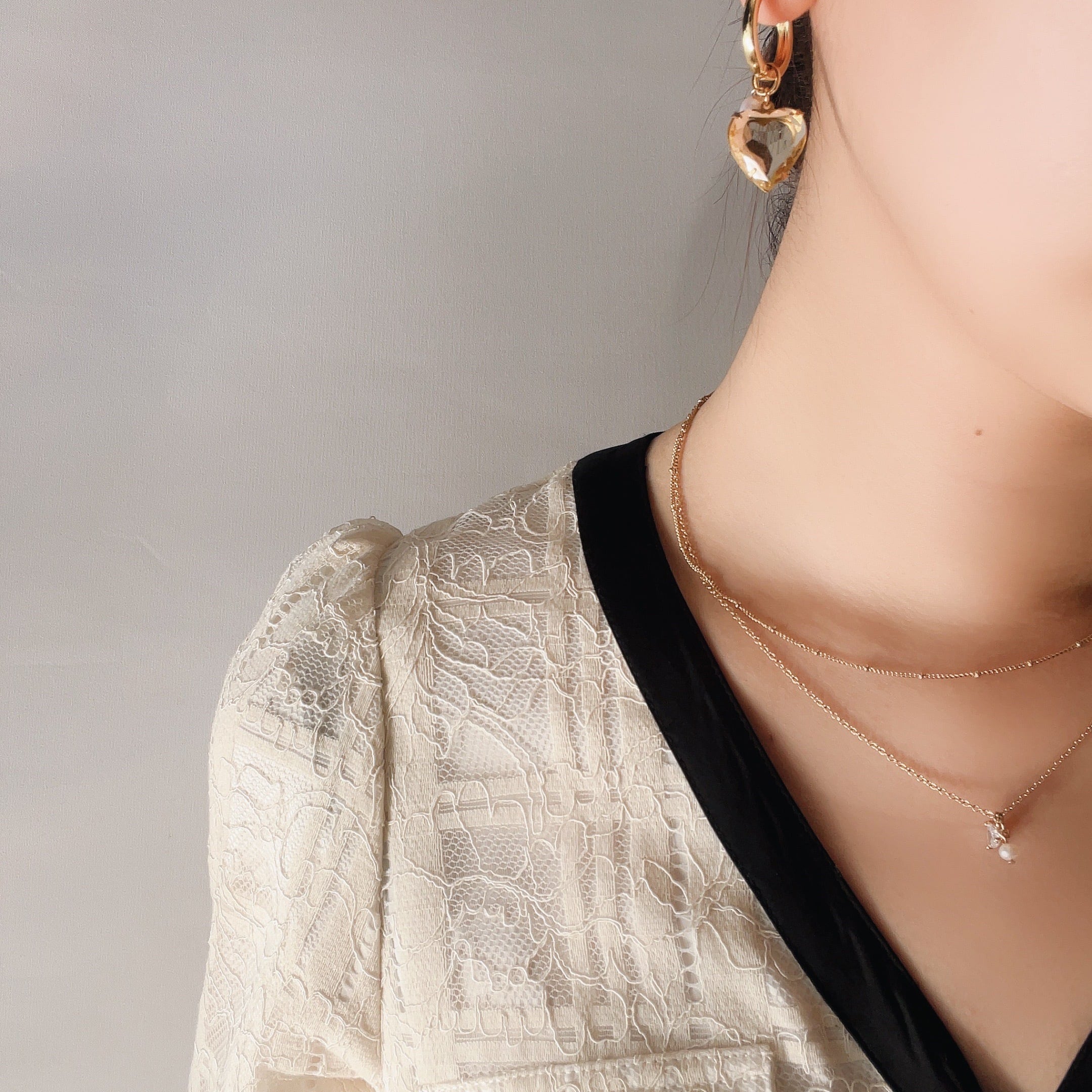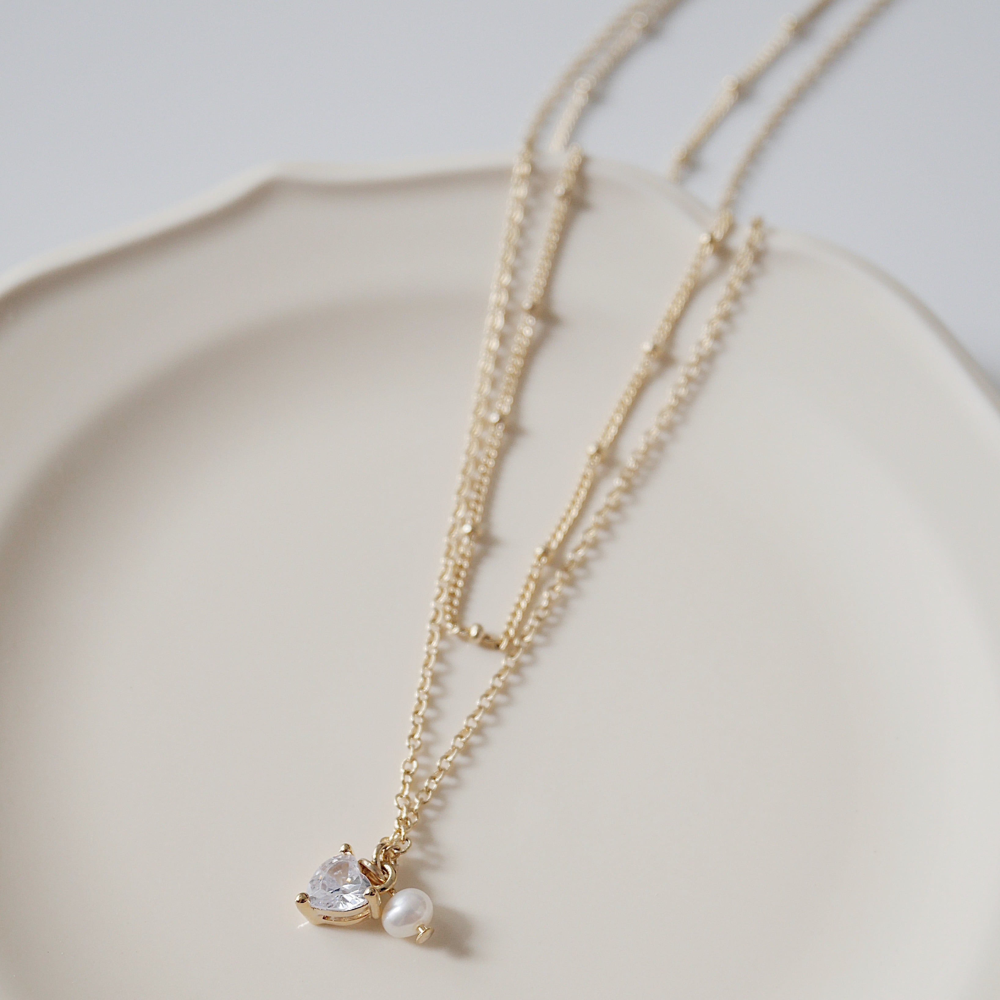 Double Chain Crystal necklace <Gold / Crystal heart rose>