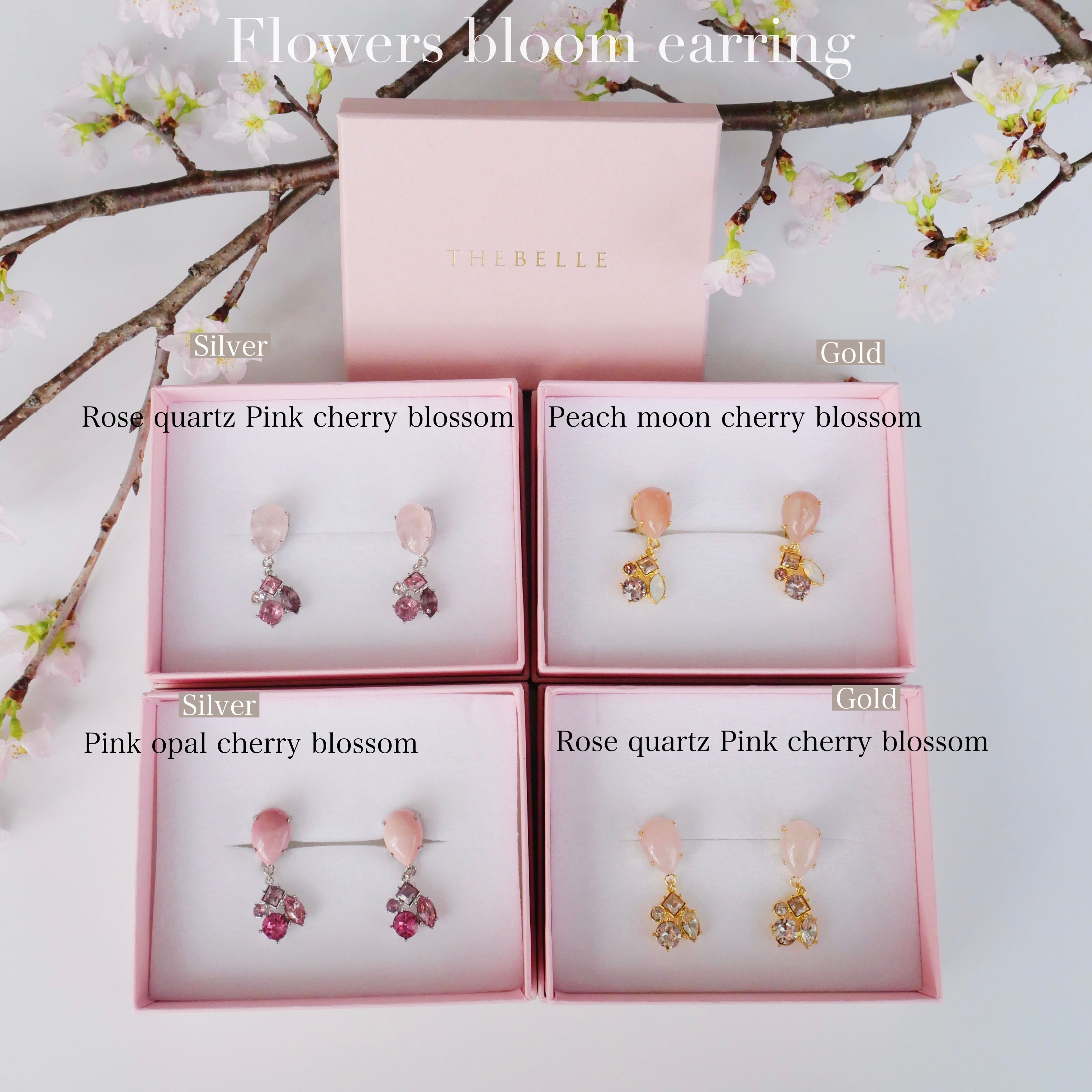 Flowers bloom earring <Silver/Rose quartz Pink cherry blossom>