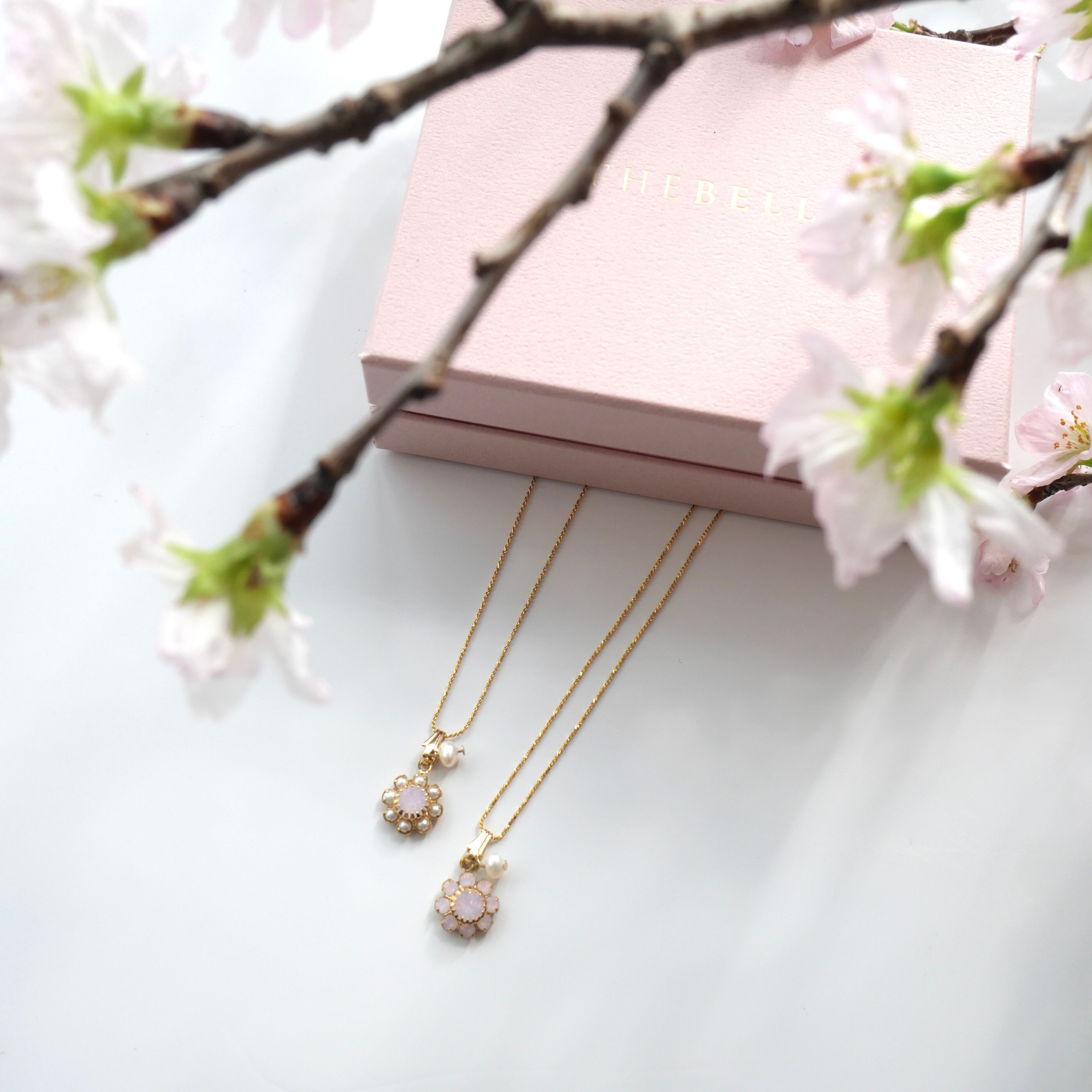 My little flower necklace <Gold/Pink Sweet cherry blossom>