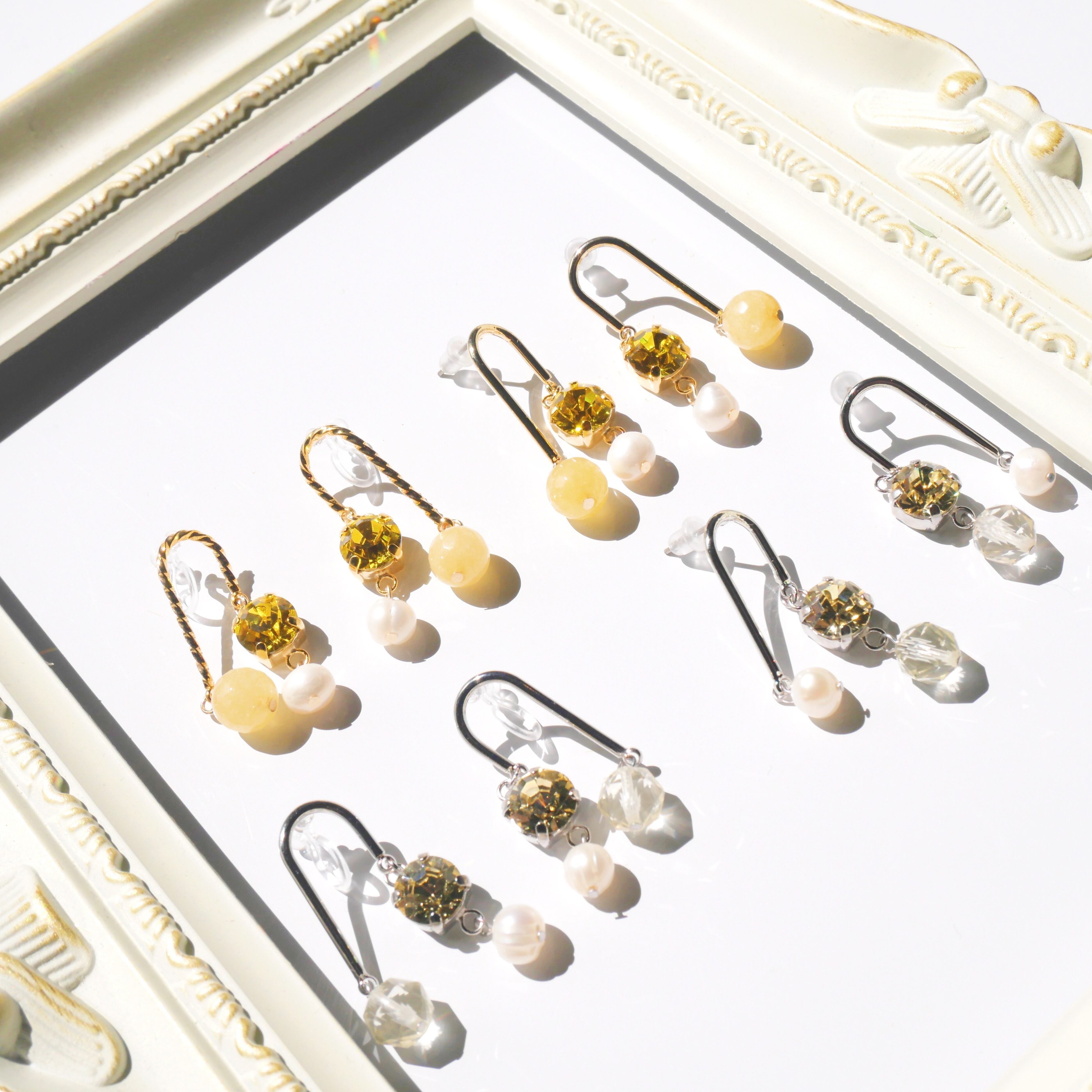 透明感のあるイエローのクリスタルとレモンクォーツの組み合わせにより、爽やかでクリーンな印象になります。