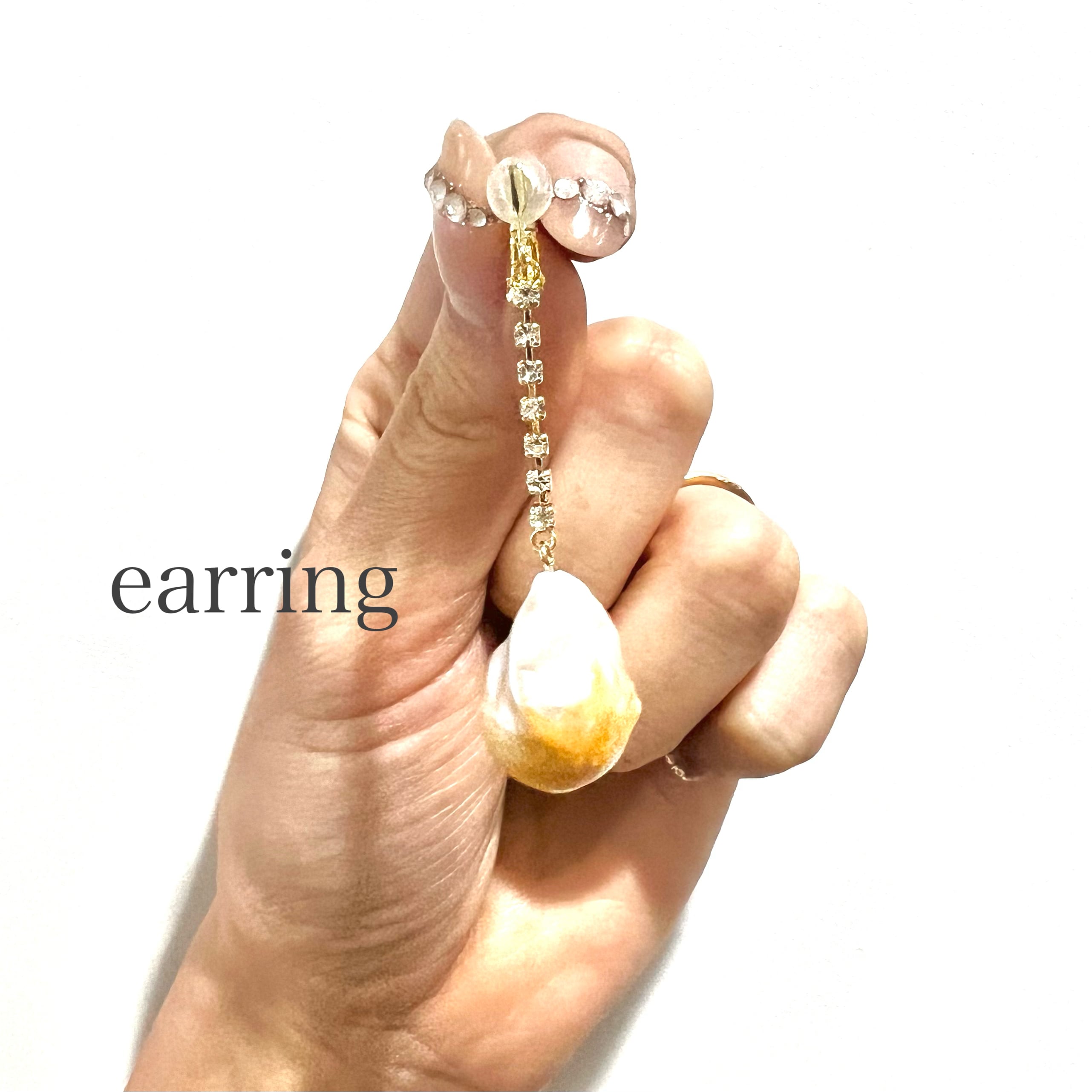 キラキラ輝くクリスタルのチェーンに贅沢な一粒パールが揺れる特別感あふれるピアス・イヤリングシリーズです。