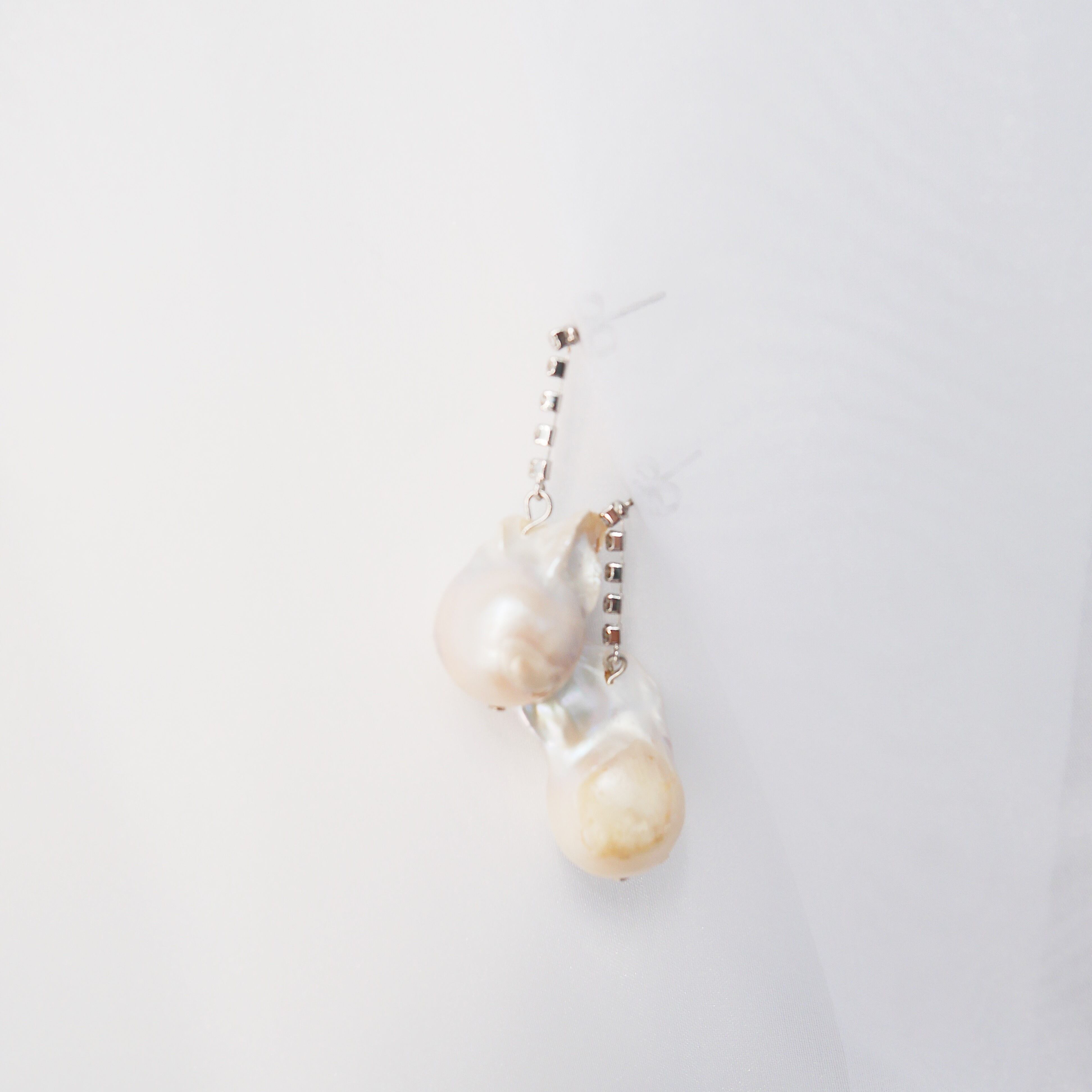 淡水パールの存在感と、華奢なクリスタルチェーンのコントラストが絶妙に仕上がっており、