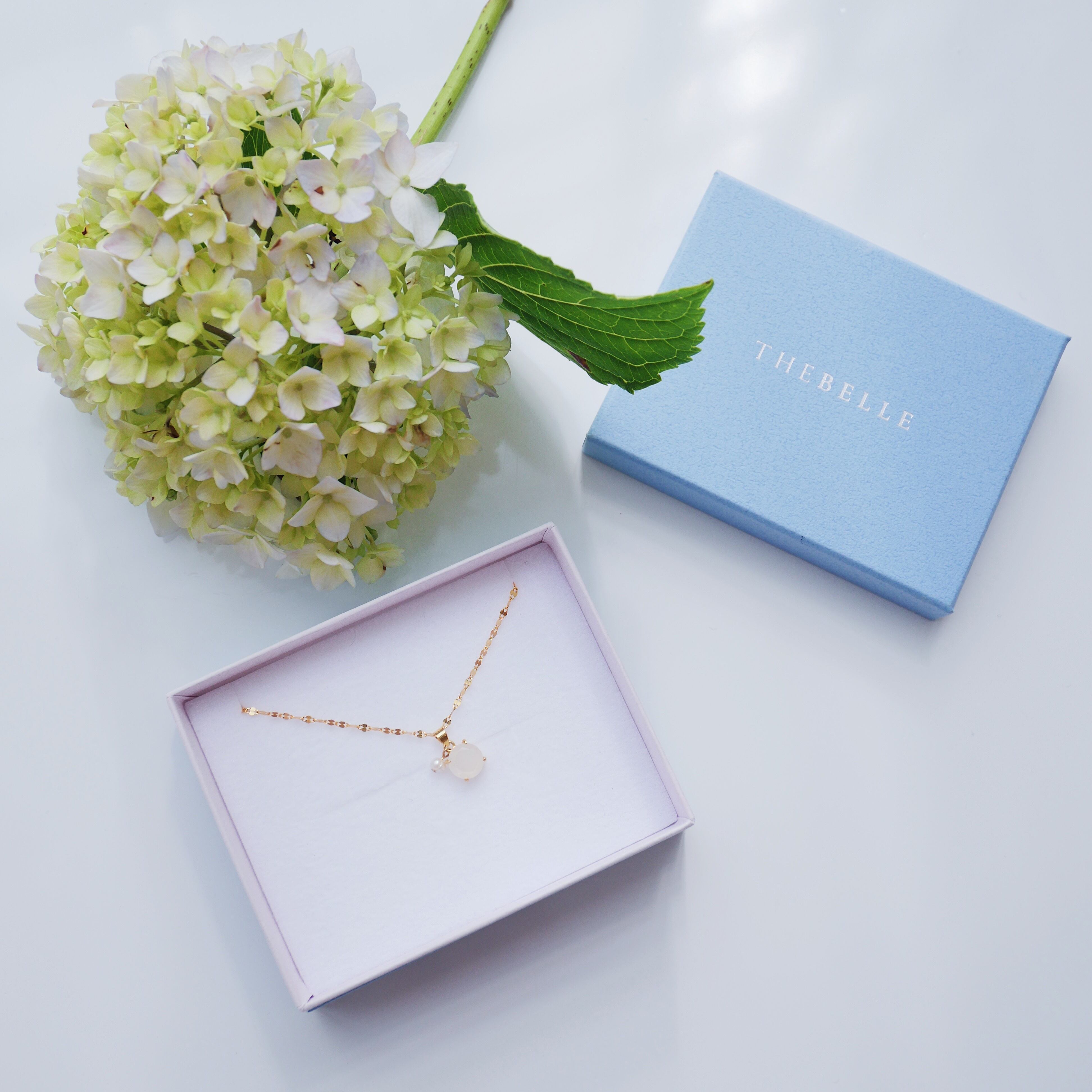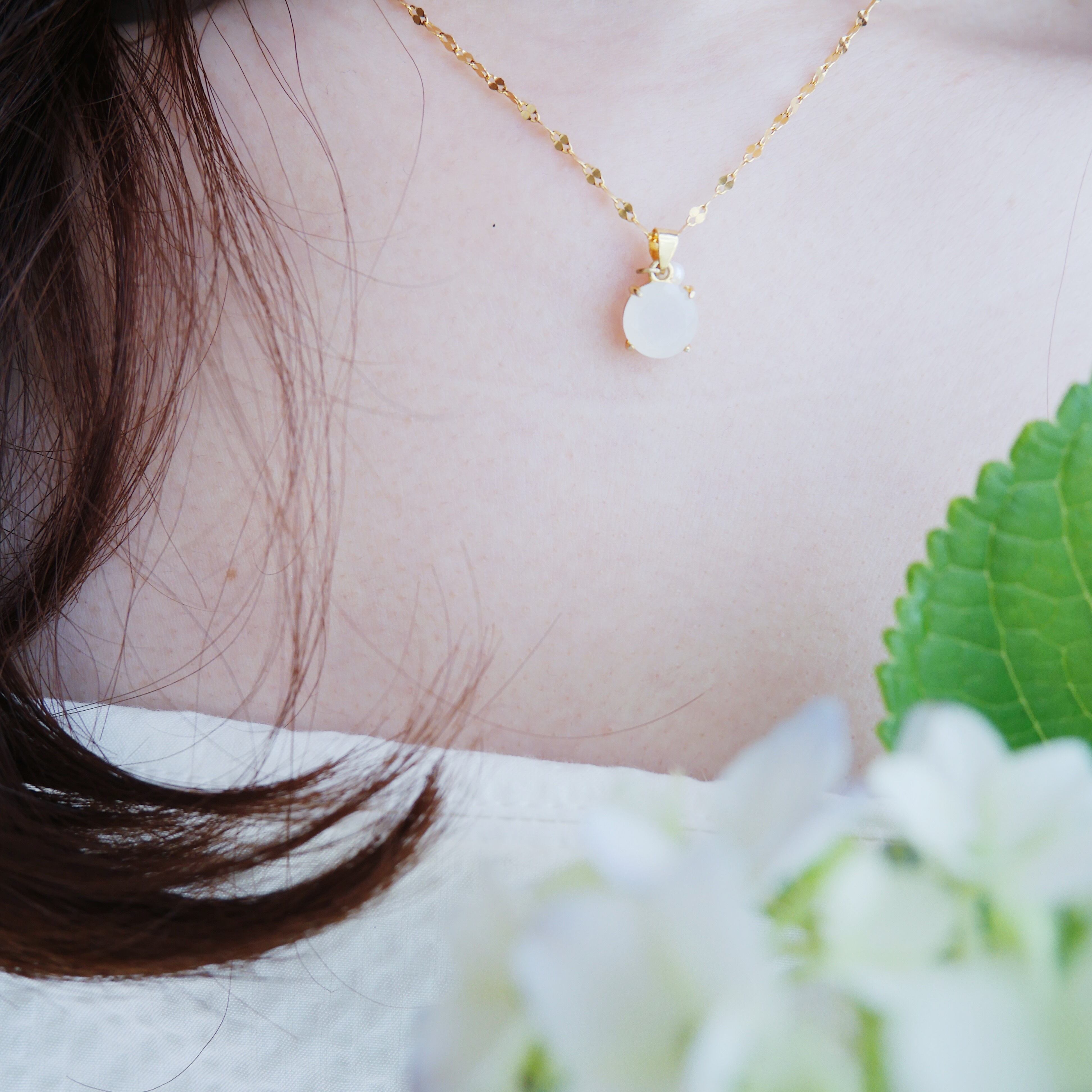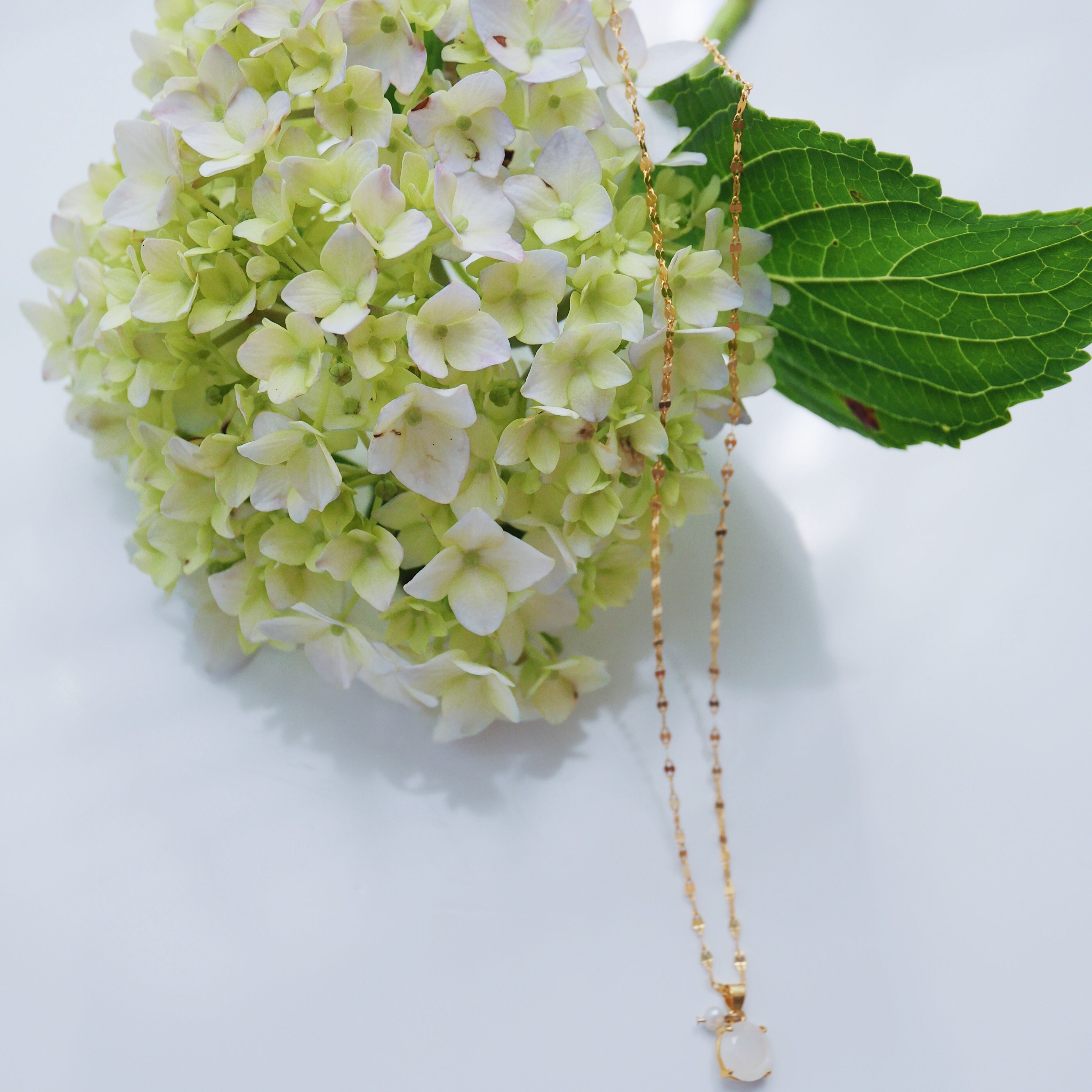 Amulet flower petal necklace <Gold/ White moon Hydrangea>