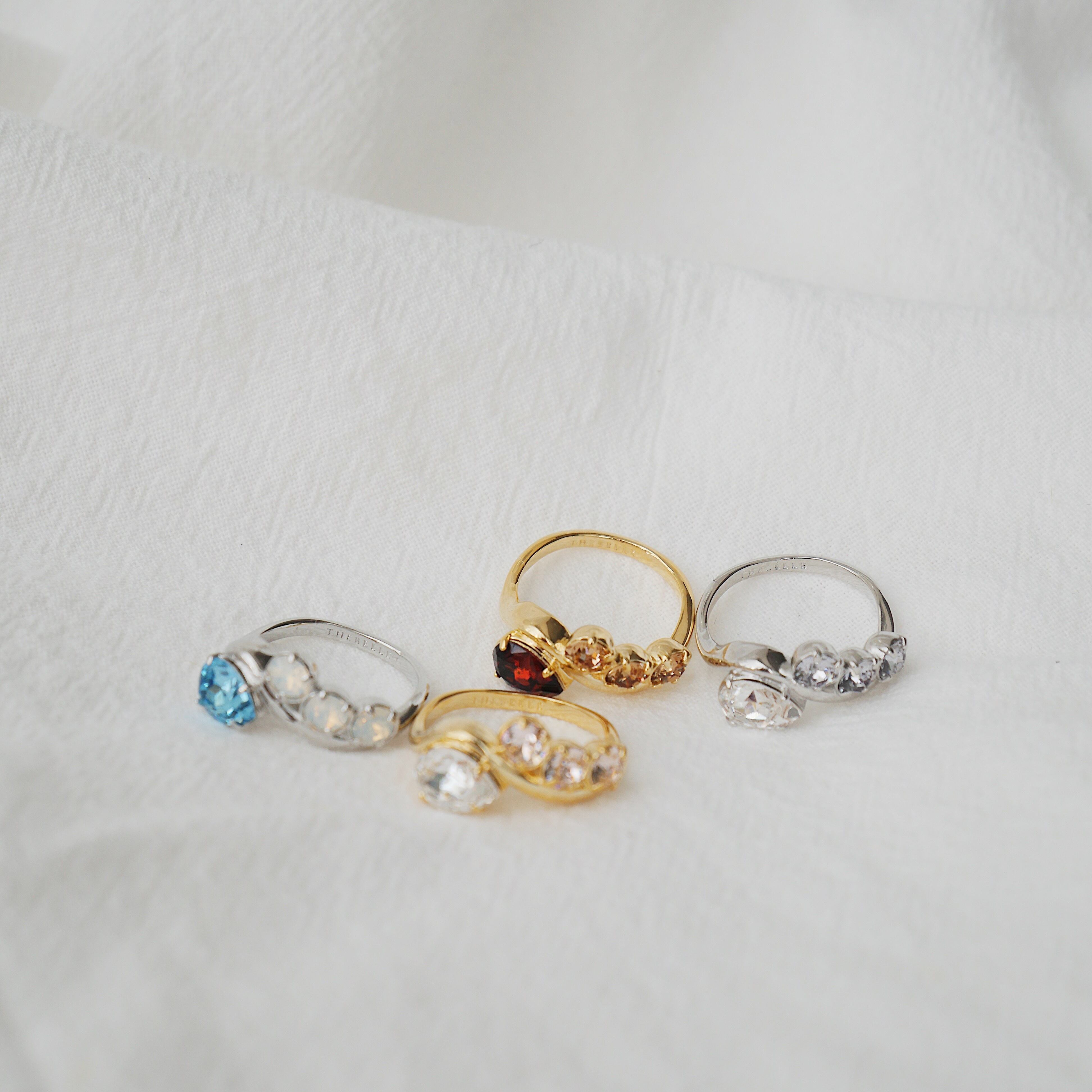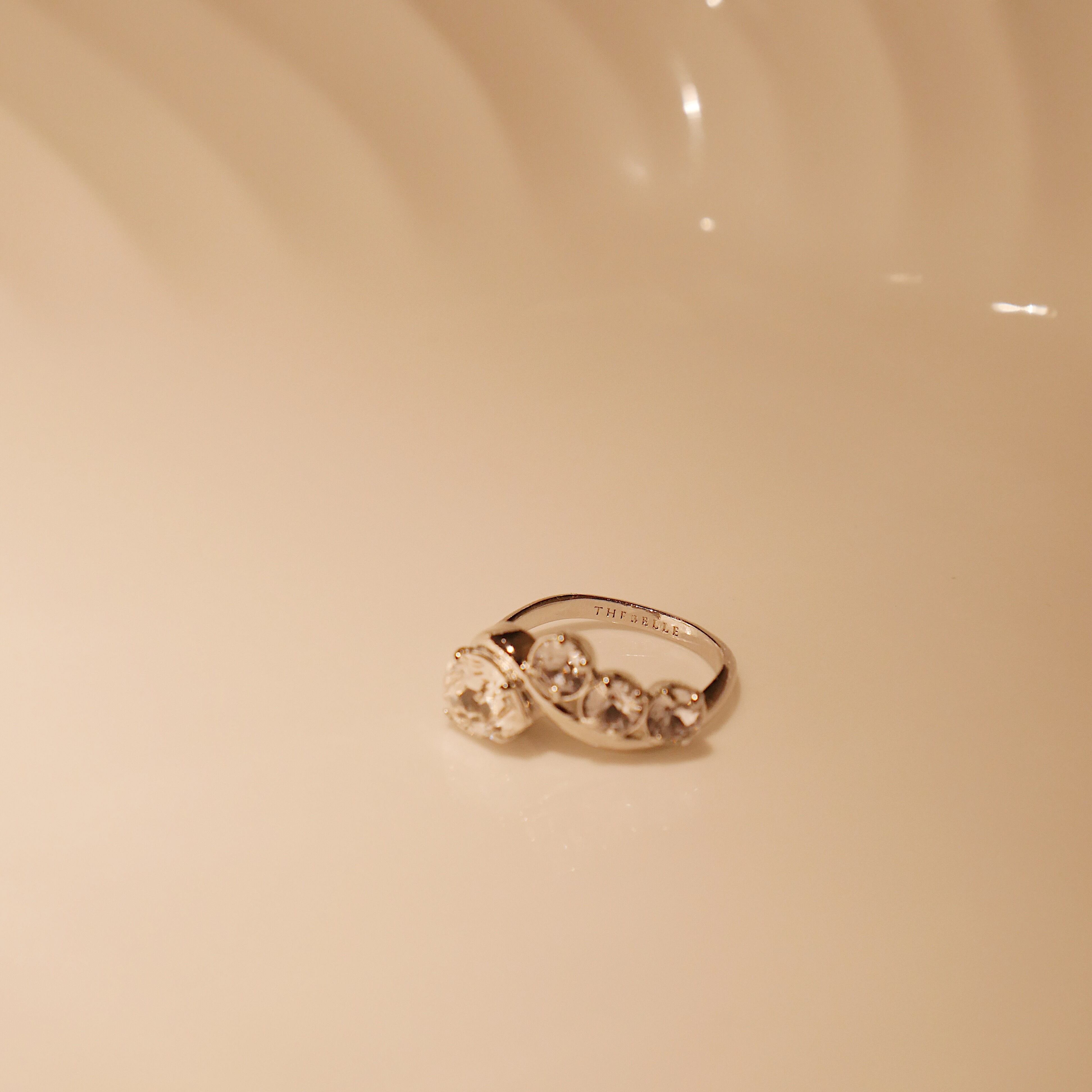 デザインは何度も修正を重ね、異なる大きさのクリスタルが曲線を描く優美なリングが完成しました。