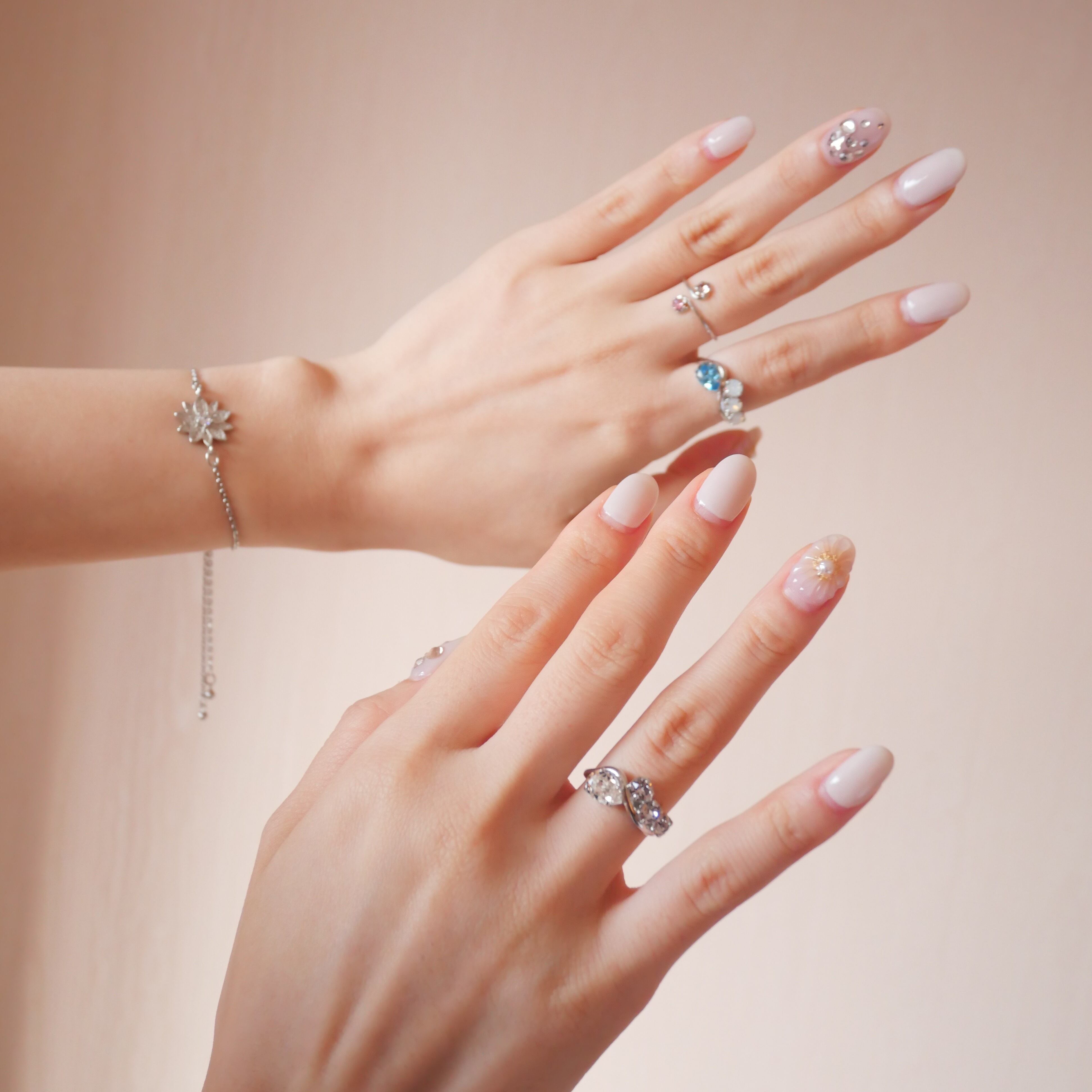 一見ワントーンなのですが、ほんのりモーヴのストーンを使用しているのがポイントです。