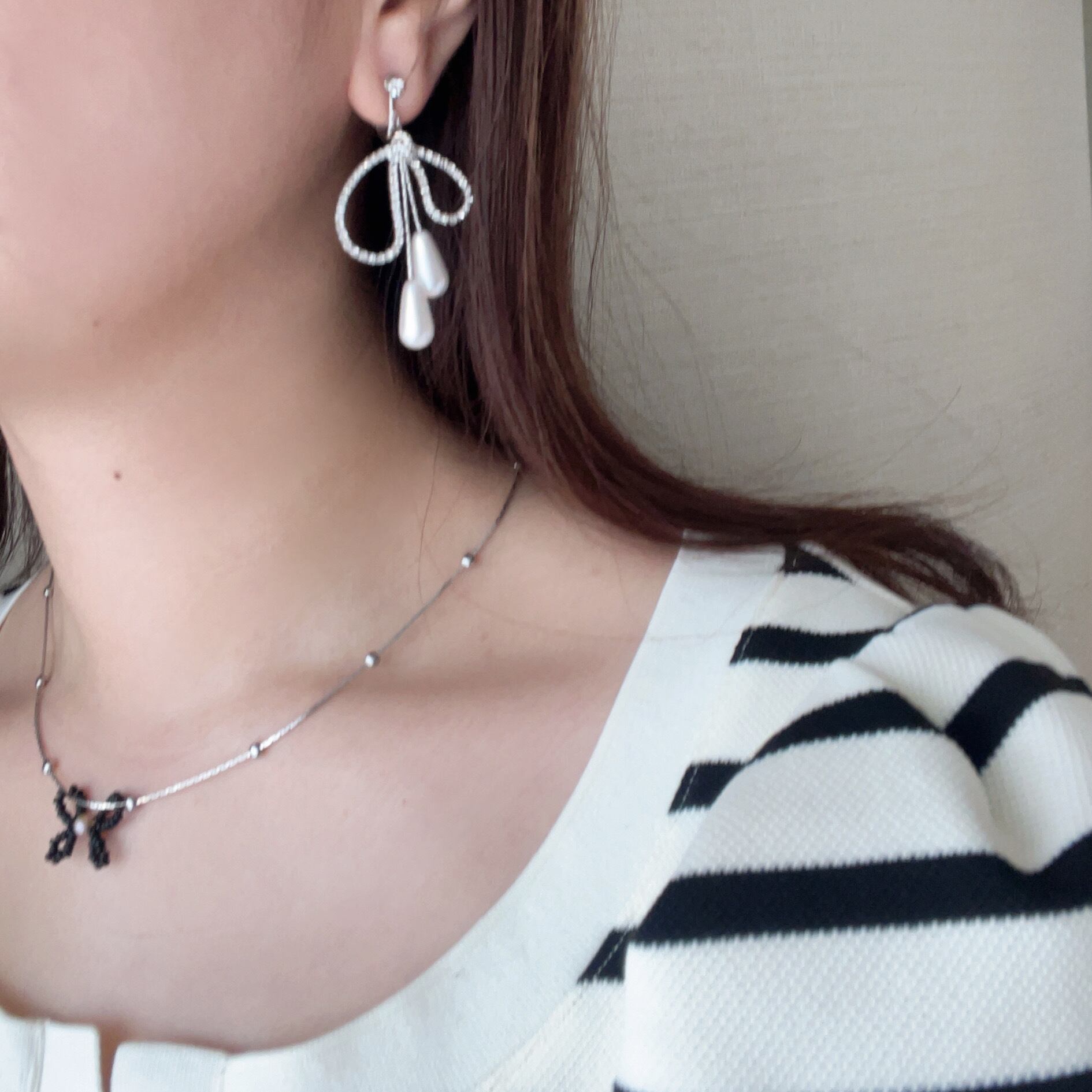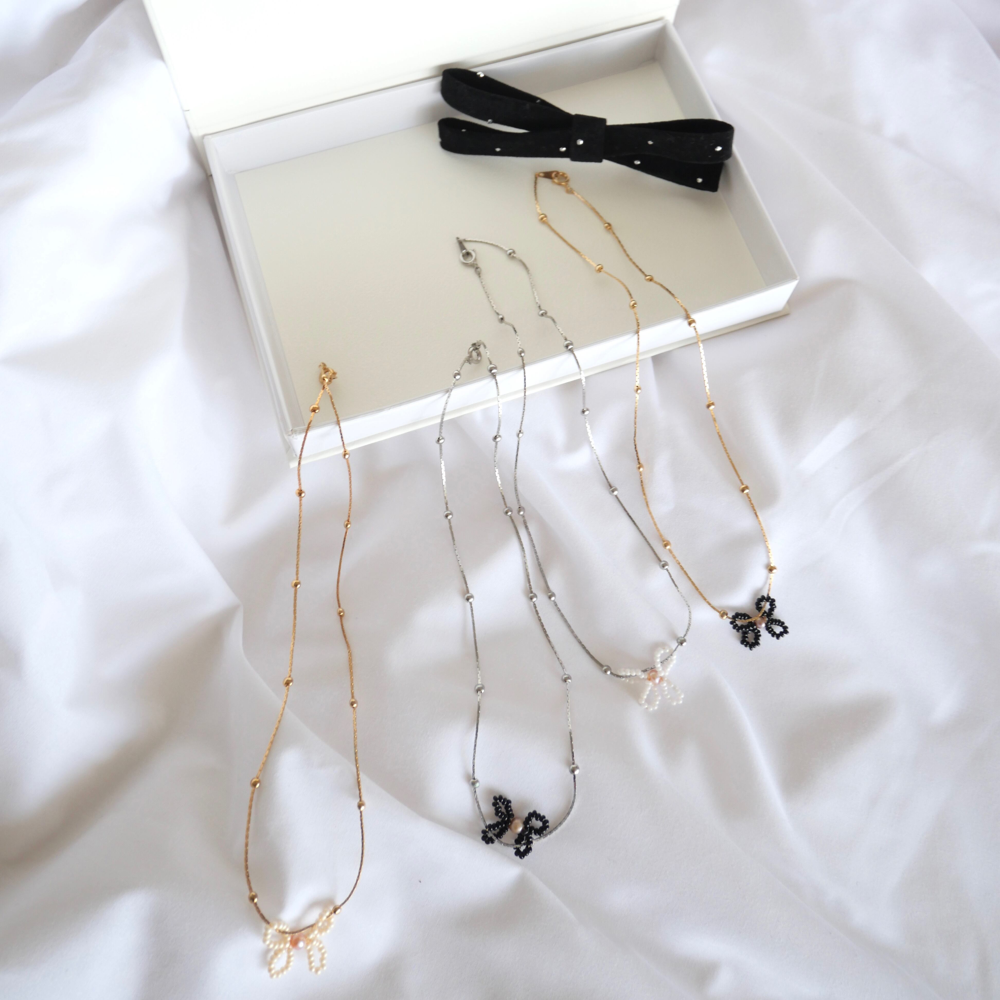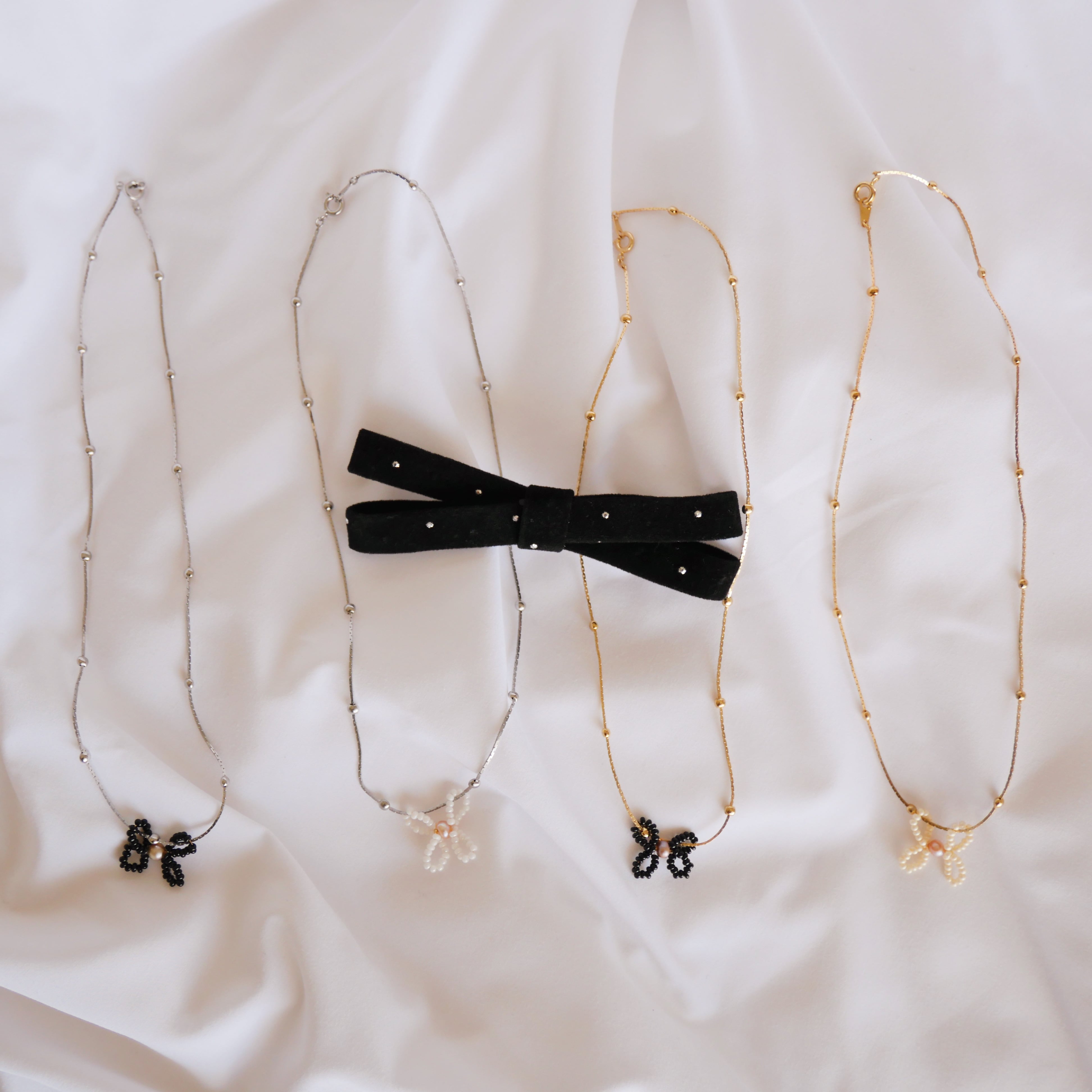 トレンド感あふれるリボンのビーズチャームがポイントの