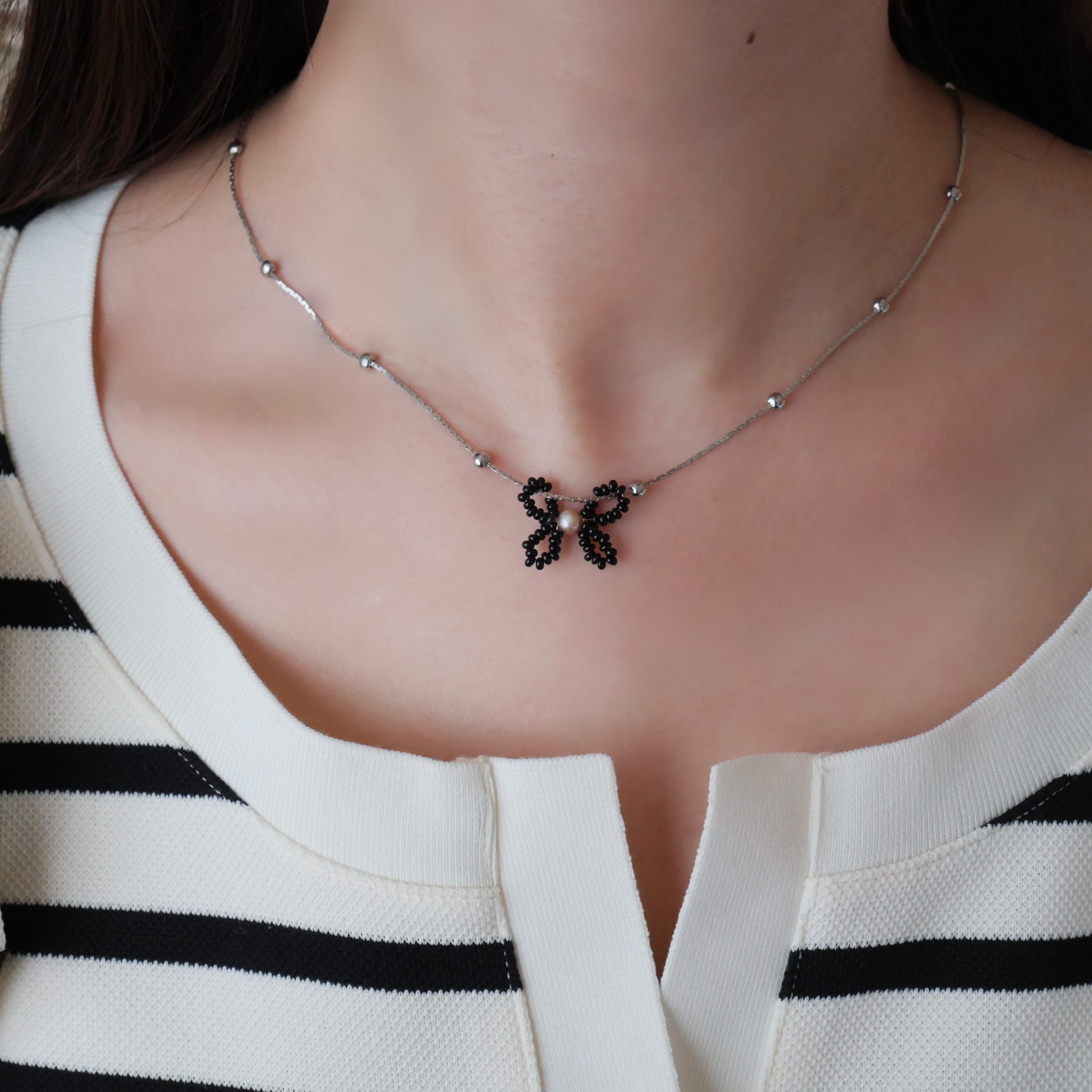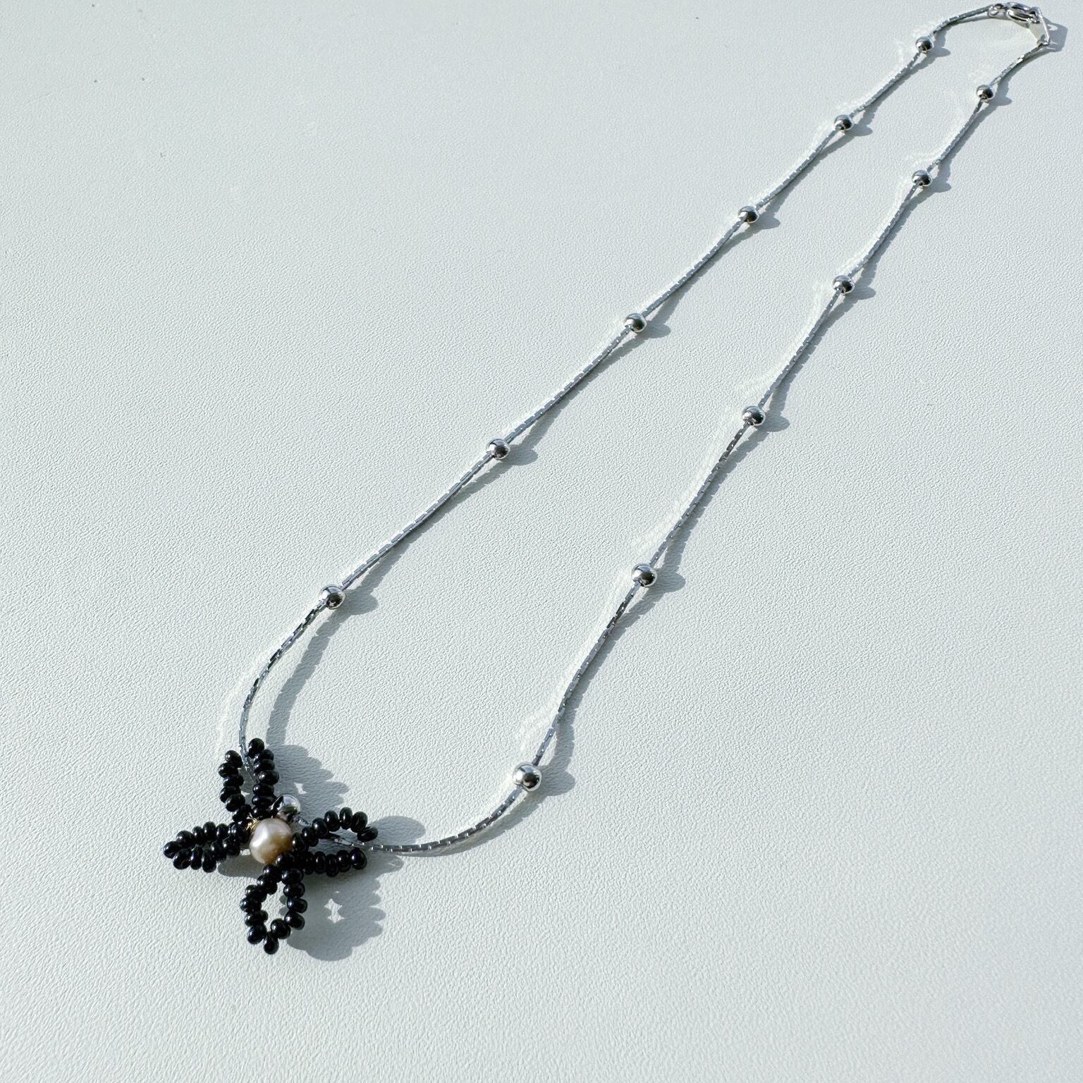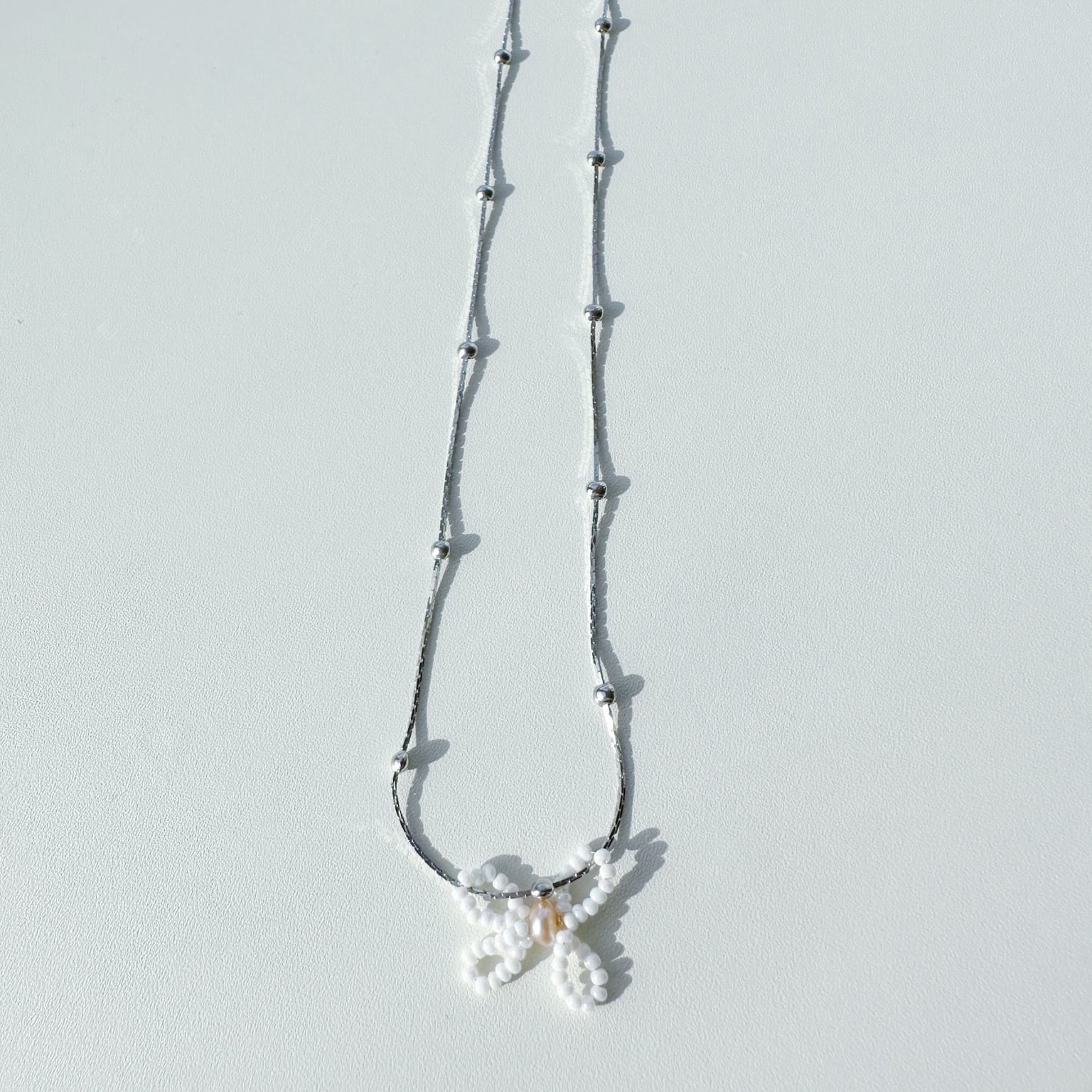 トレンド感あふれるリボンのビーズチャームがポイントの