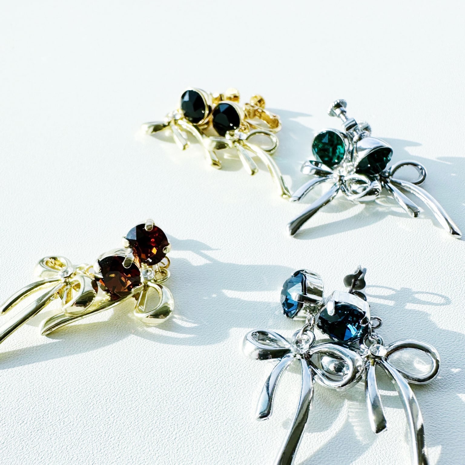 カラーバリエーション豊富でクラシカルな雰囲気漂う、リボンイヤリング/ピアスシリーズ。