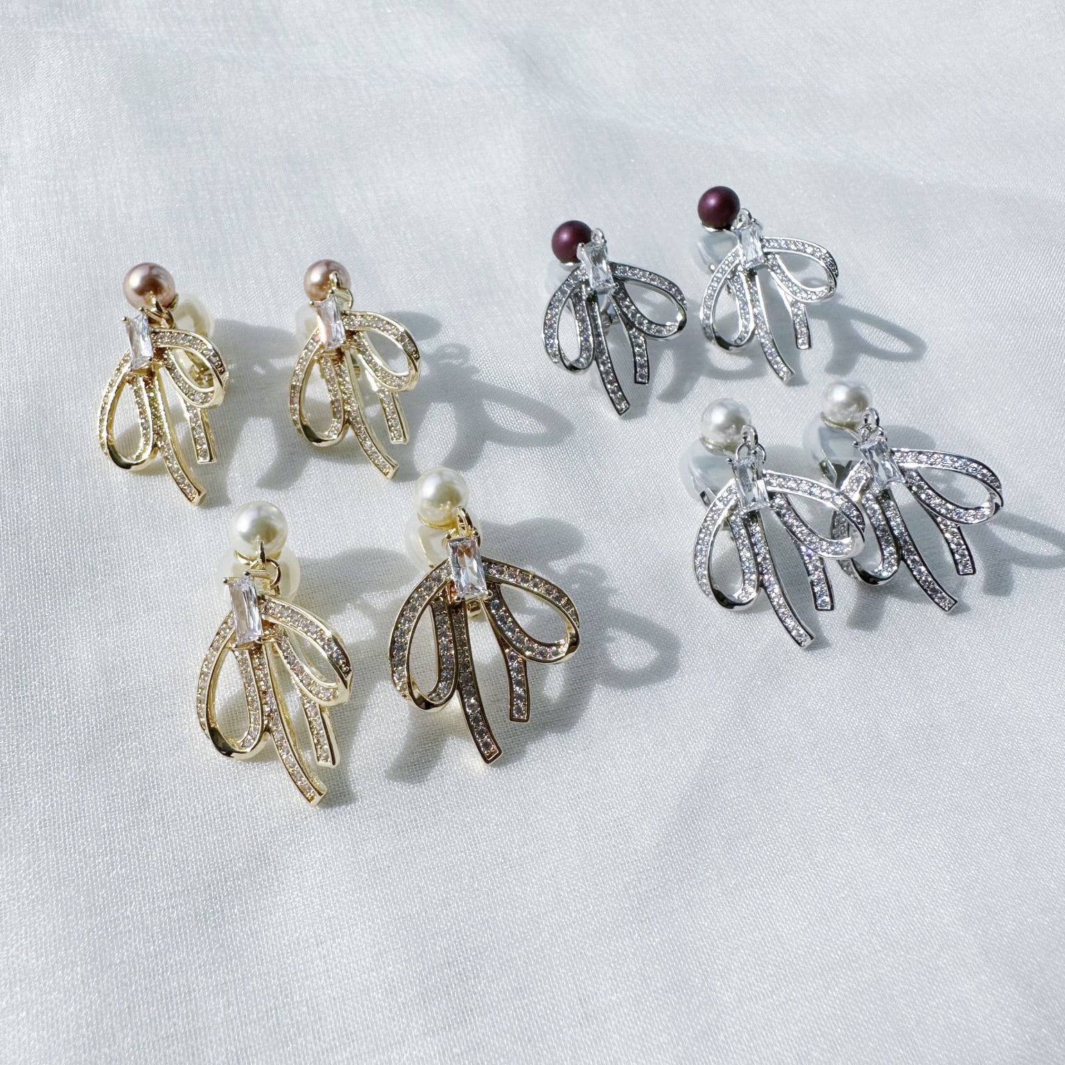 リボンモチーフのピアス /イヤリングシリーズです。