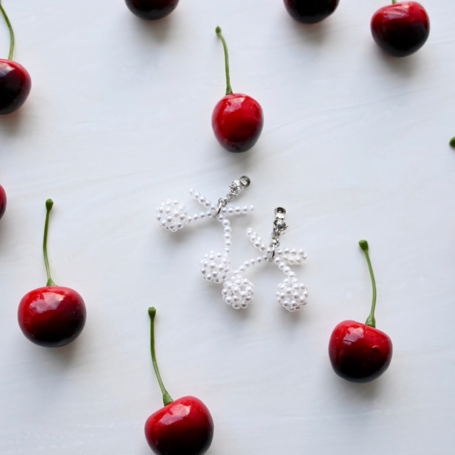 遊び心のあるビーズのチェリーピアス&イヤリングシリーズ。