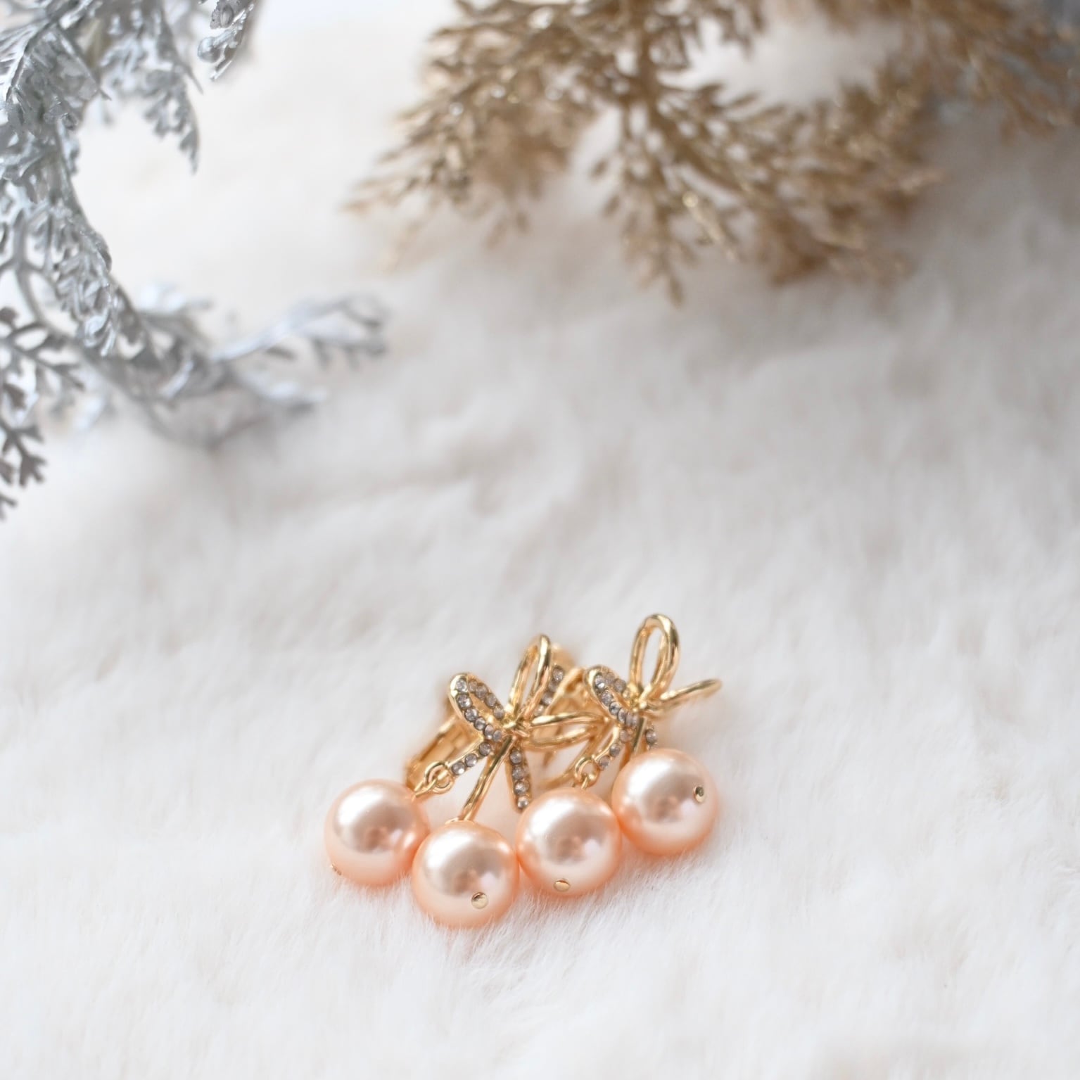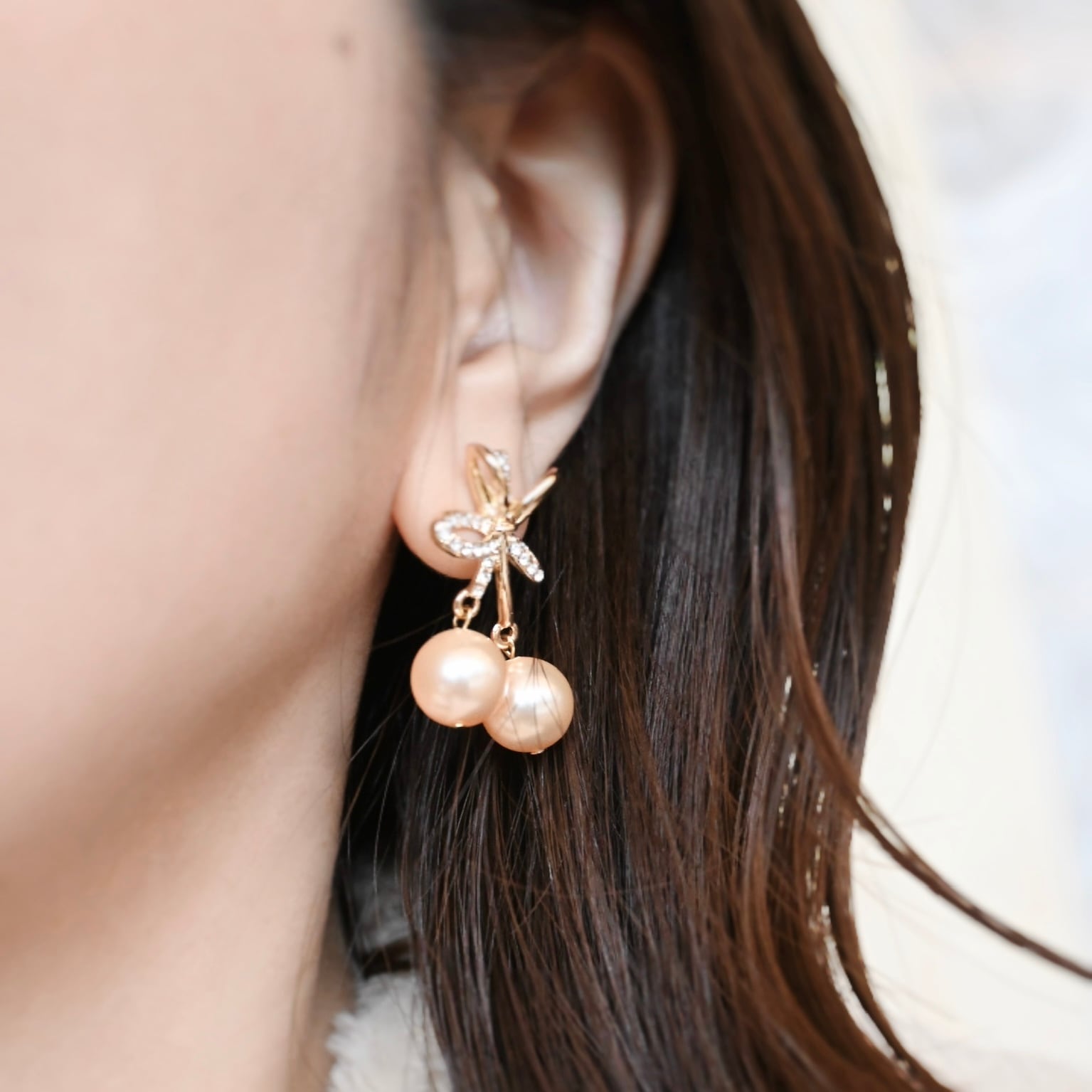 チェリーモチーフでありながらパールの揺れ感や輝くクリスタルが上品で、