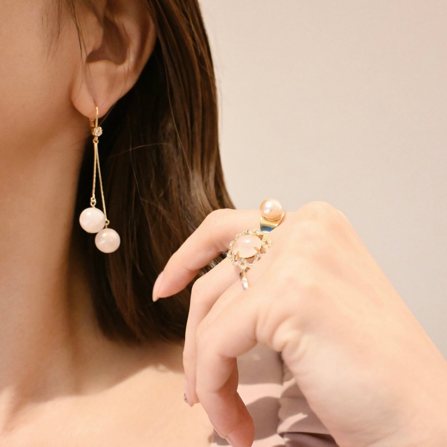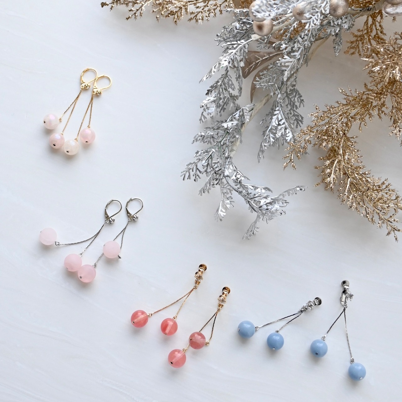 天然石がチェリーのように揺れるイヤリング/ピアスシリーズ。